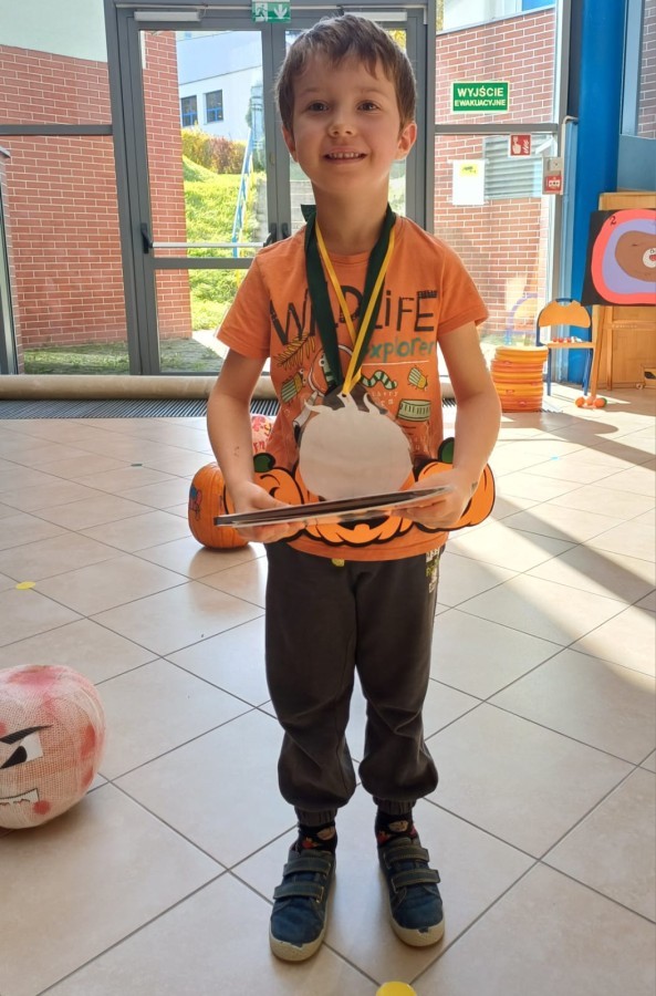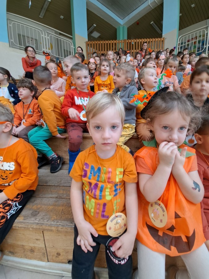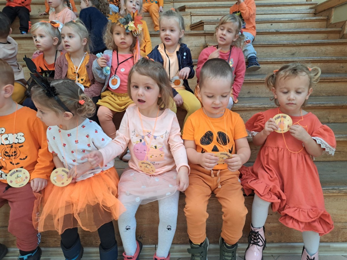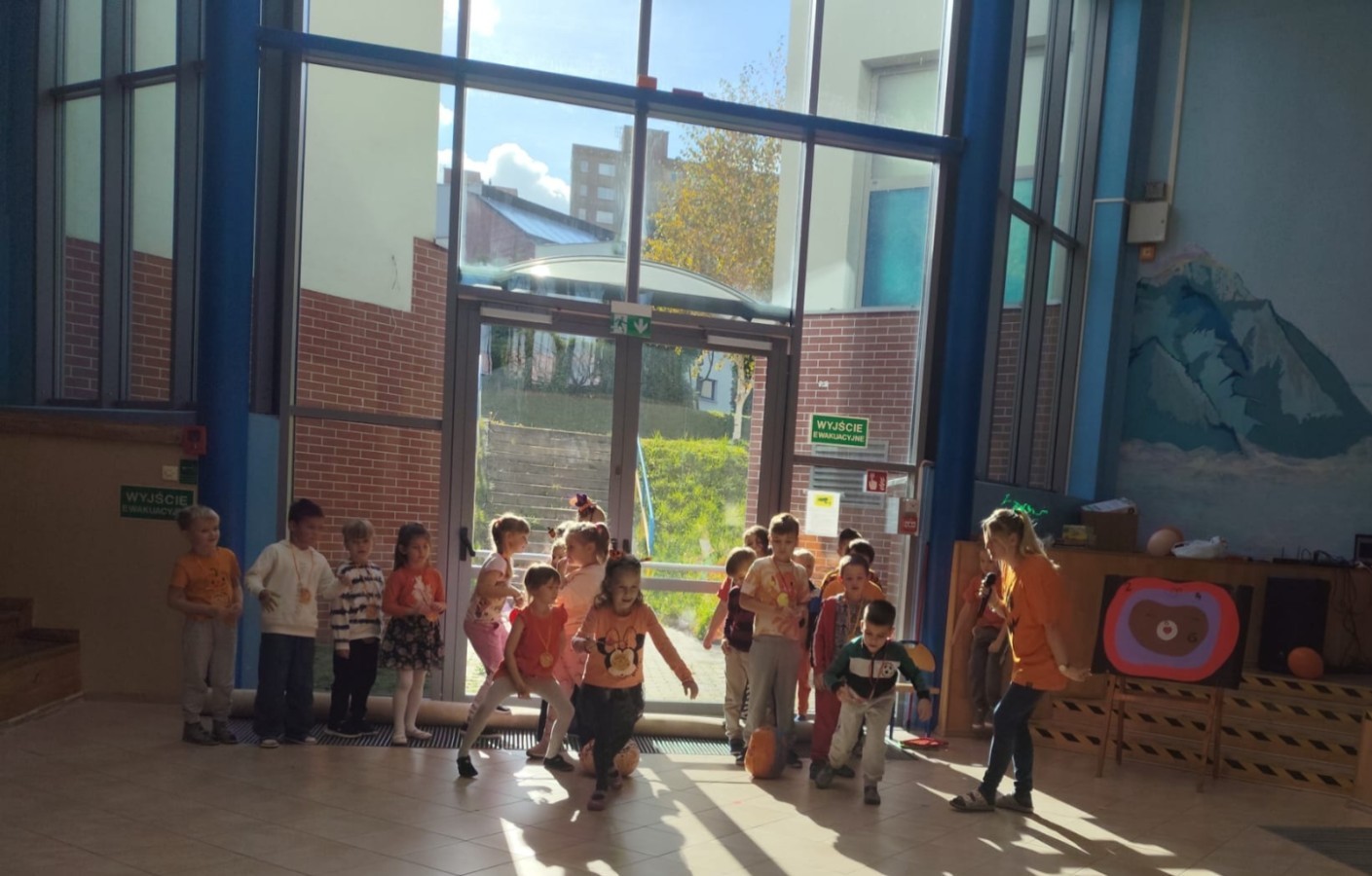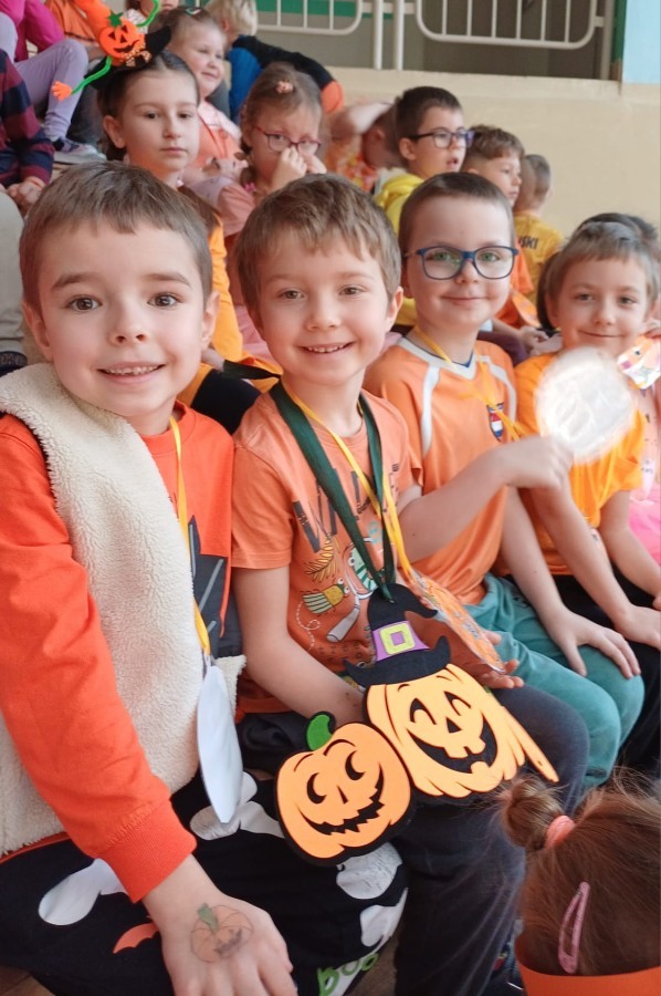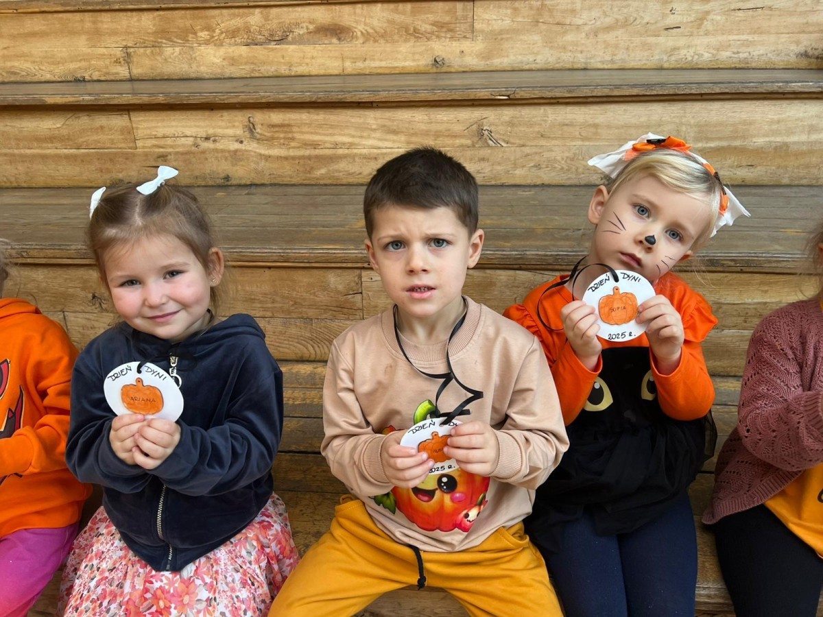 Wilki - wzięły udział w biegu z łyżką, na której znajdowała się mała dynia, wykazując się świetną koordynacją ruchową. Na zakończenie dnia na dzieci czekała niespodzianka – fotobudka dyniowa, w której każdy mógł zrobić sobie pamiątkowe, zabawne zdjęcie. To był pełen emocji, śmiechu i jesiennych kolorów dzień!