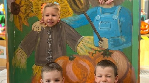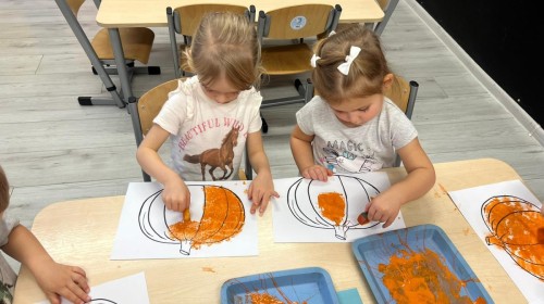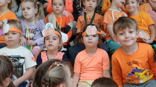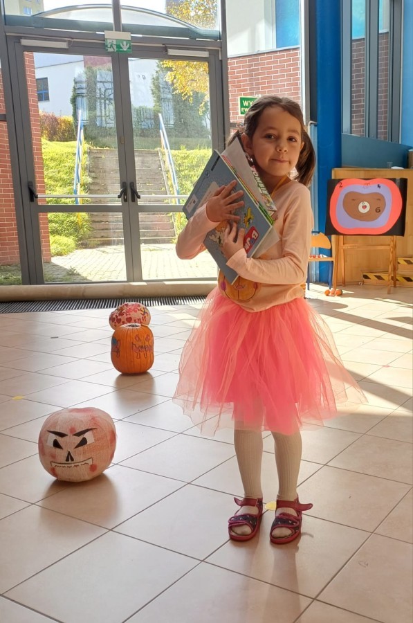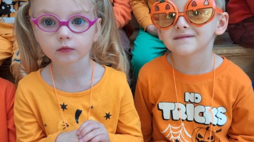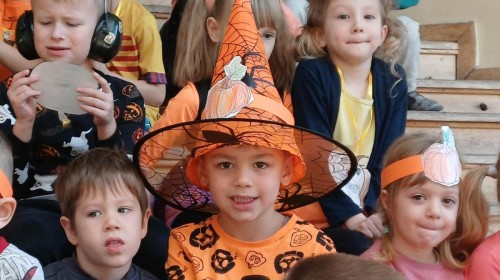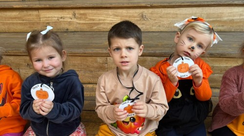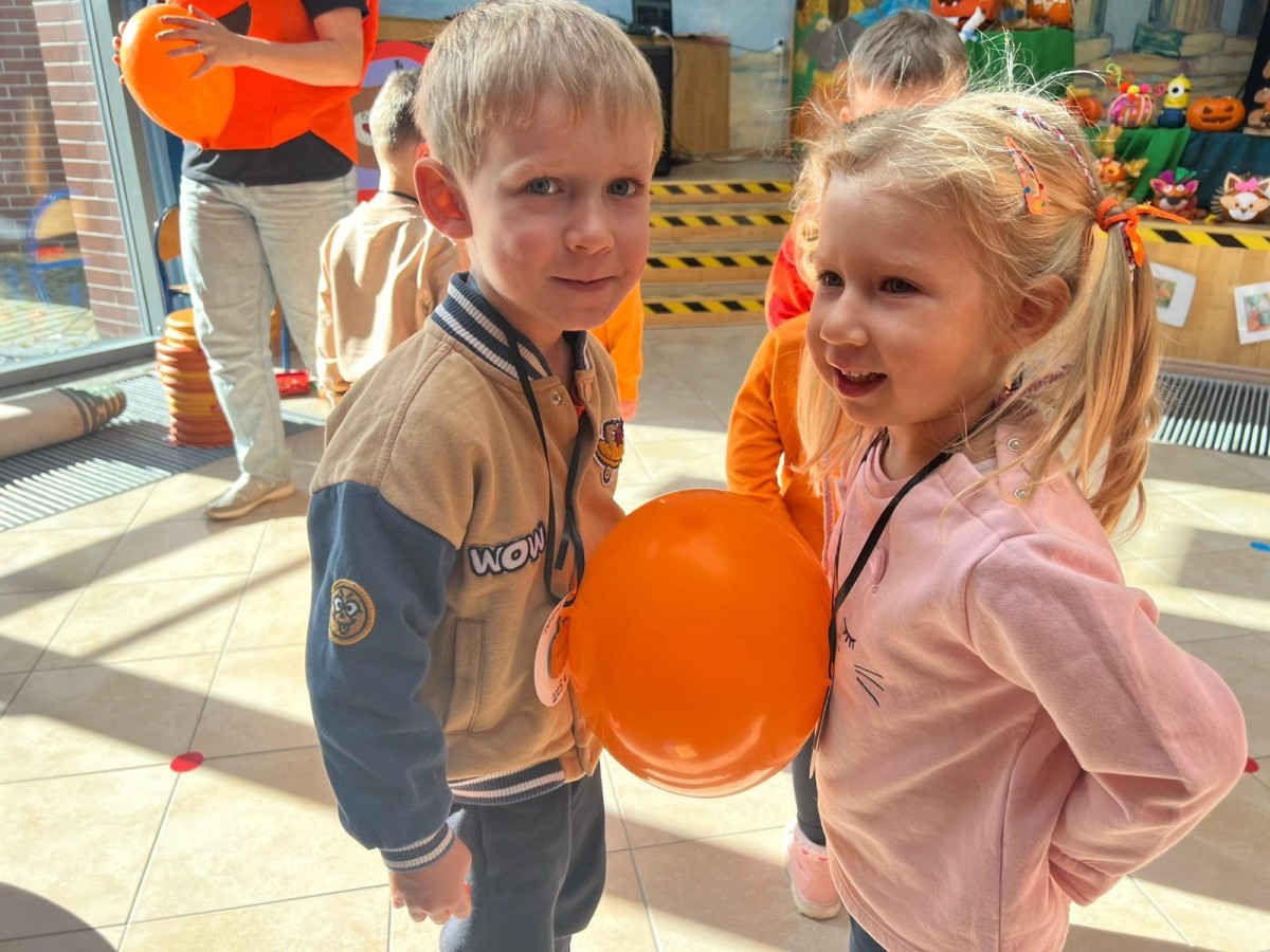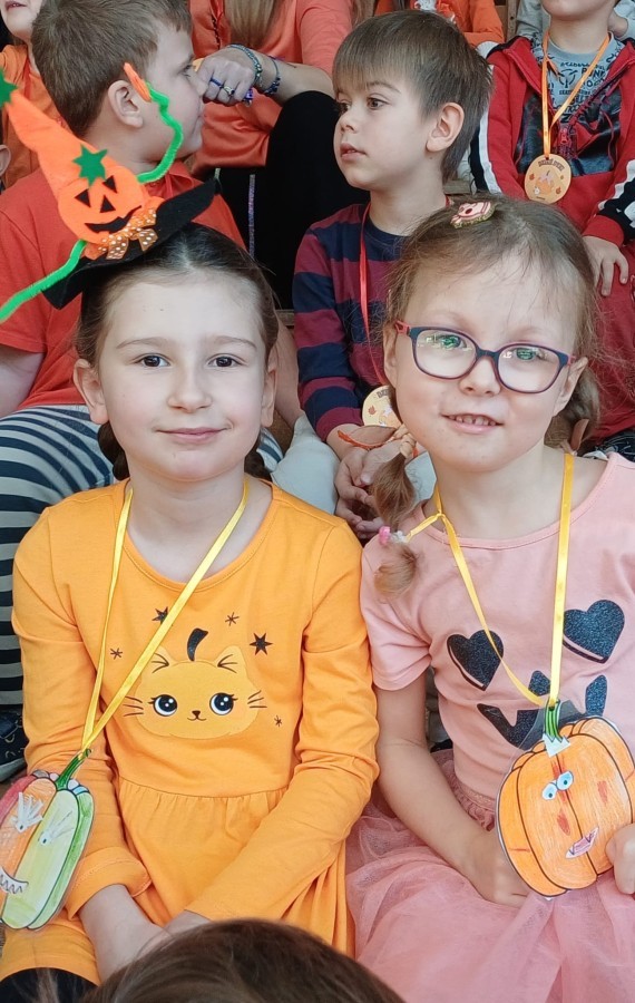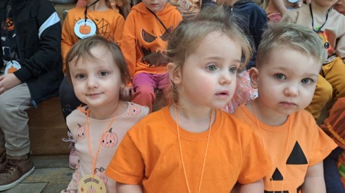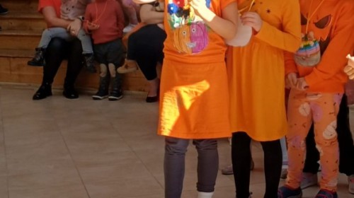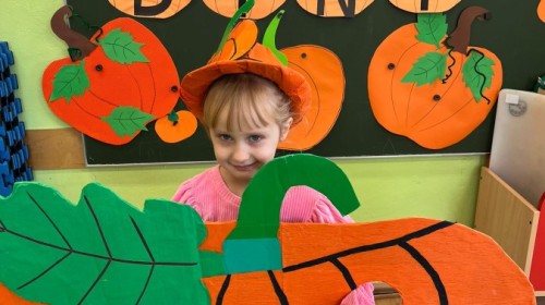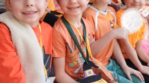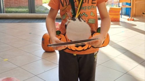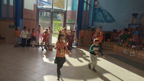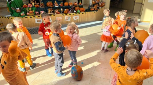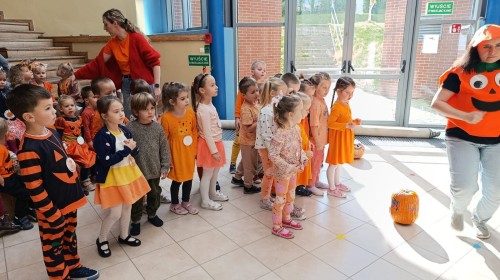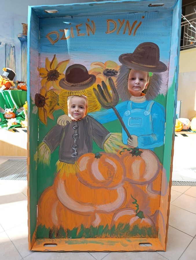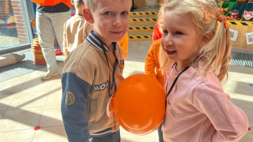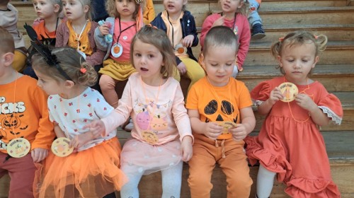Wilki - wzięły udział w biegu z łyżką, na której znajdowała się mała dynia, wykazując się świetną koordynacją ruchową. Na zakończenie dnia na dzieci czekała niespodzianka – fotobudka dyniowa, w której każdy mógł zrobić sobie pamiątkowe, zabawne zdjęcie. To był pełen emocji, śmiechu i jesiennych kolorów dzień!