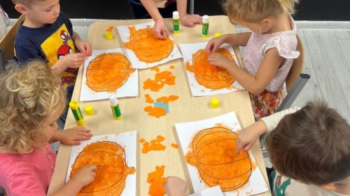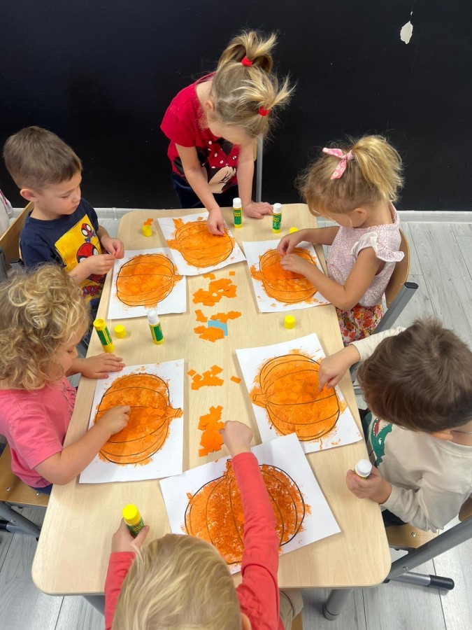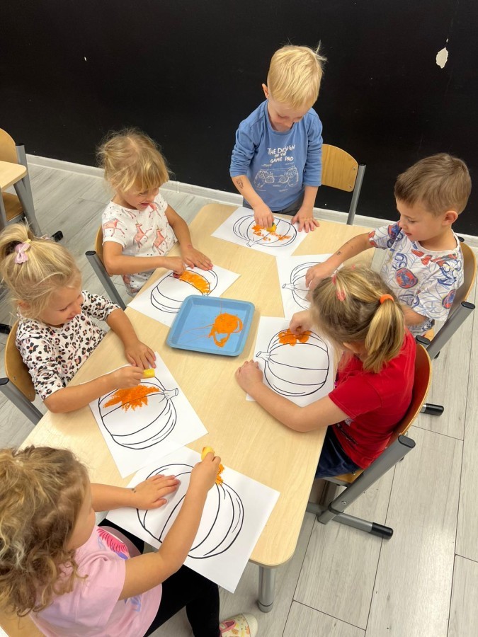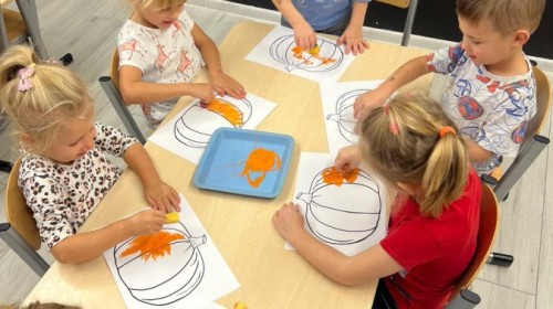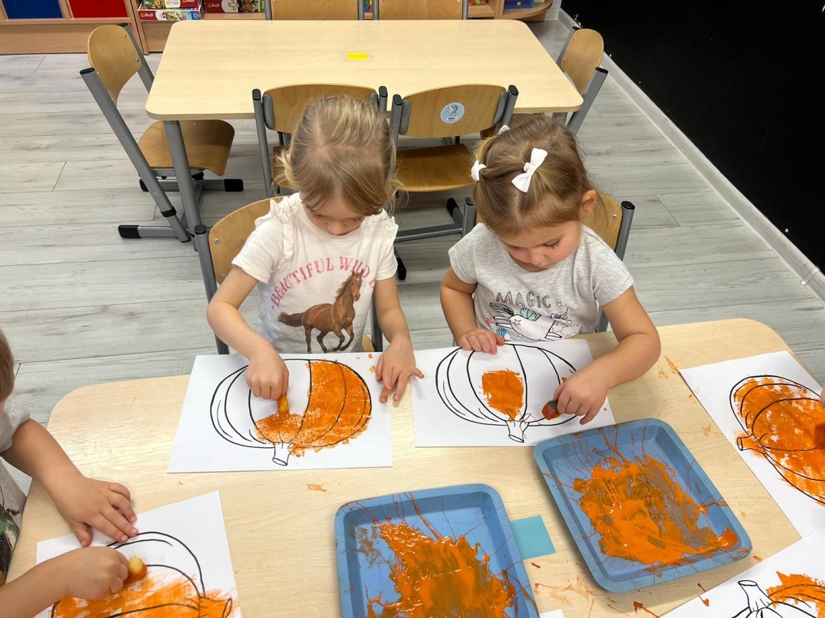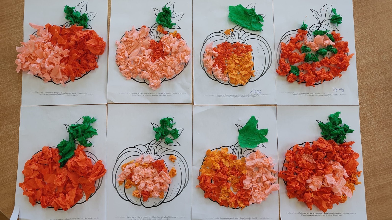 Liski - podzielone na cztery zespoły kolorowały dużą dynię na czas, wykazując się współpracą i precyzją,