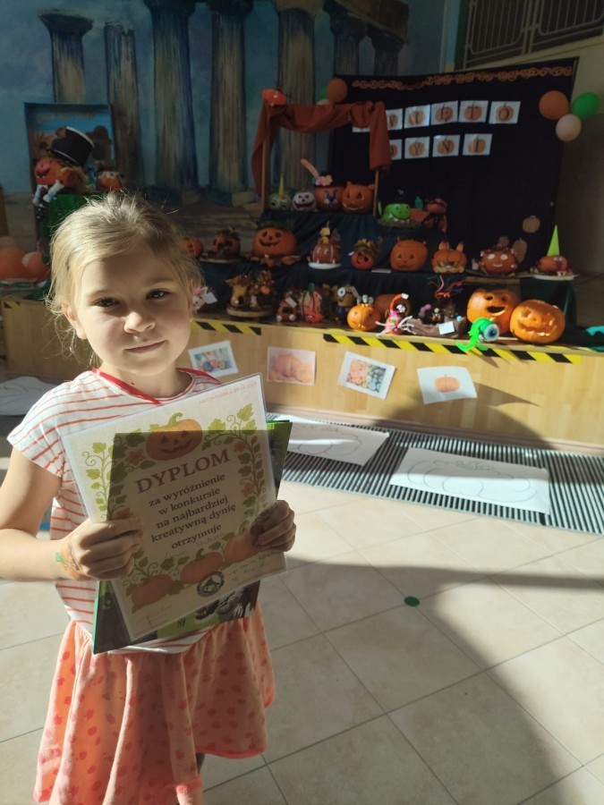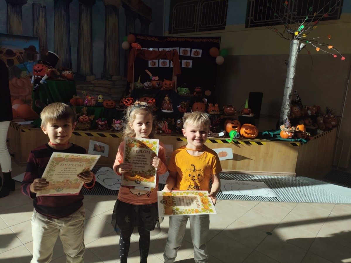 Dzień Dyni w naszym przedszkolu rozpoczął się od uroczystego wręczenia nagród za konkurs na najbardziej kreatywną dynię. Z każdej grupy wyłoniono laureatów – przyznano miejsca I, II i III oraz wyróżnienia. Wszystkie dzieci biorące udział w konkursie otrzymały drobne upominki i gromkie brawa za swoje pomysłowe