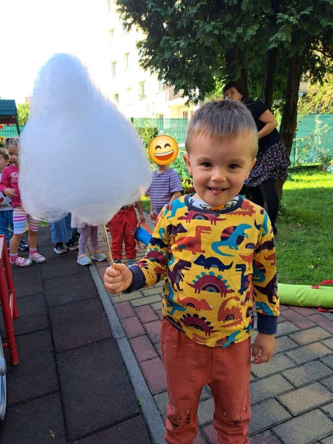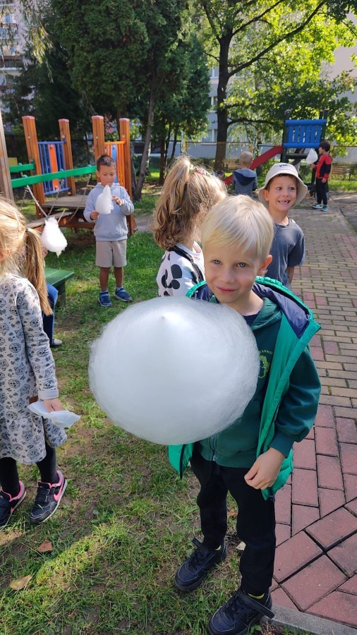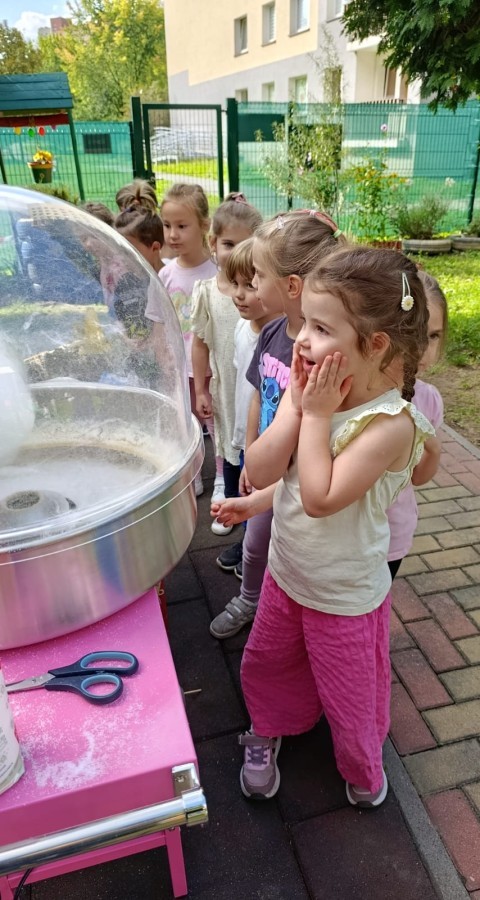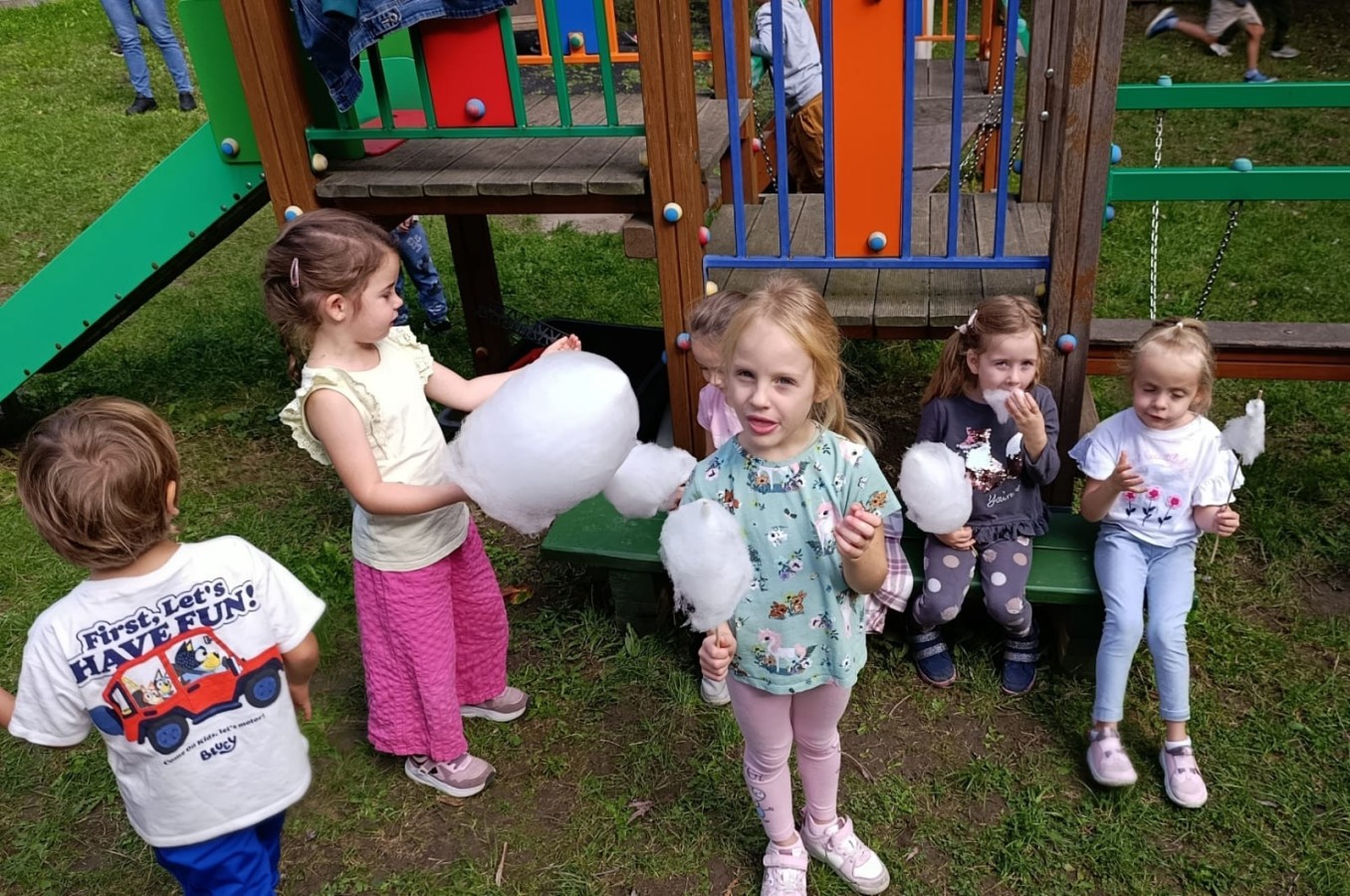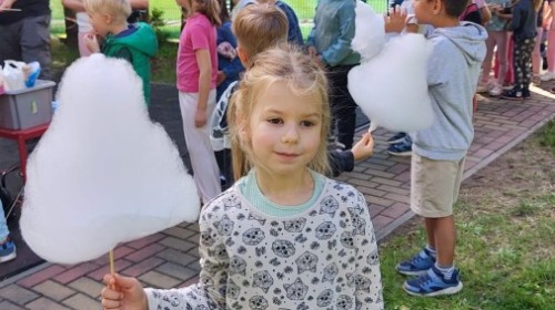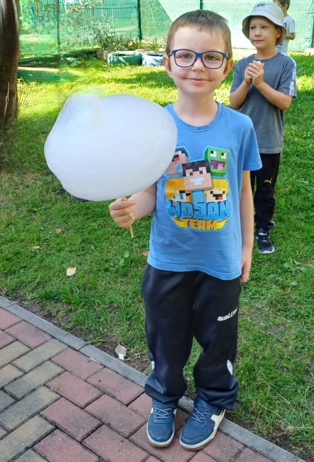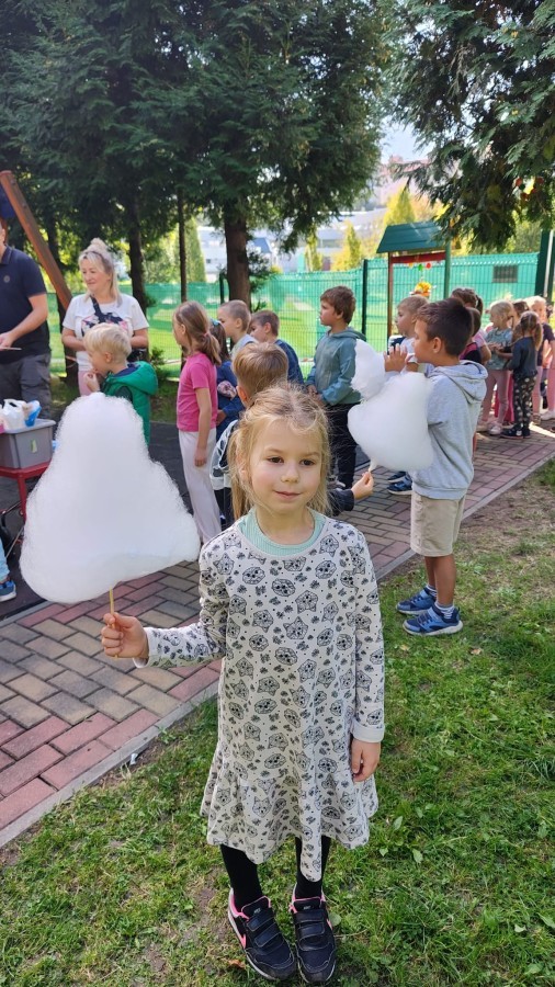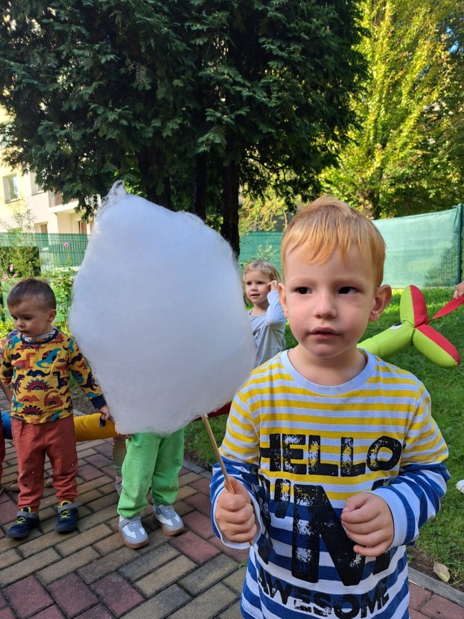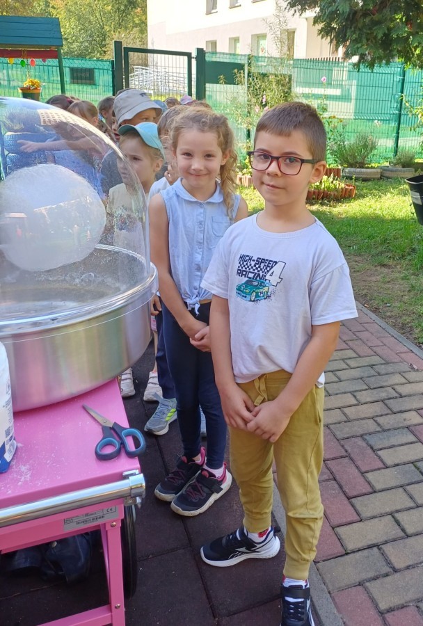 Nie zabrakło również kolorowej fotobudki, w której dzieci mogły zrobić sobie pamiątkowe zdjęcia. Największą niespodzianką okazała się jednak wata cukrowa, która wywołała prawdziwy zachwyt i słodki uśmiech na twarzach naszych Przedszkolaków. To był dzień pełen radości, który na długo pozostanie w naszej pamięci!