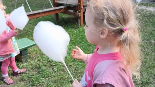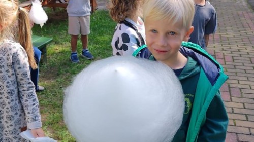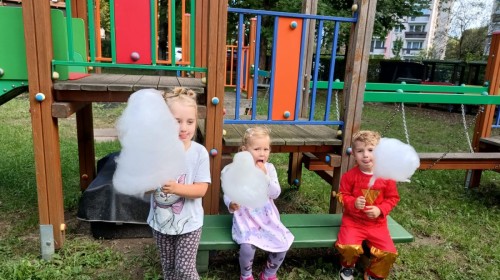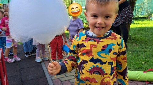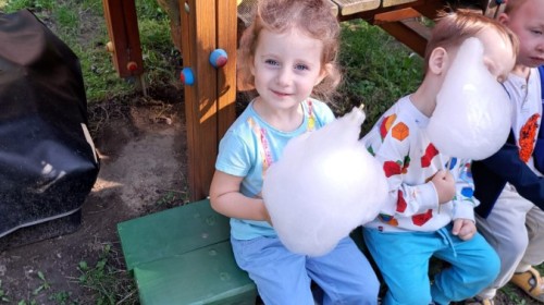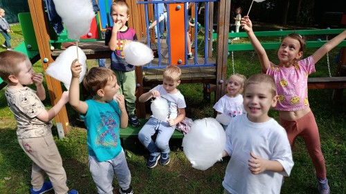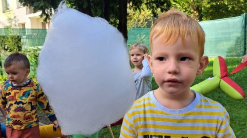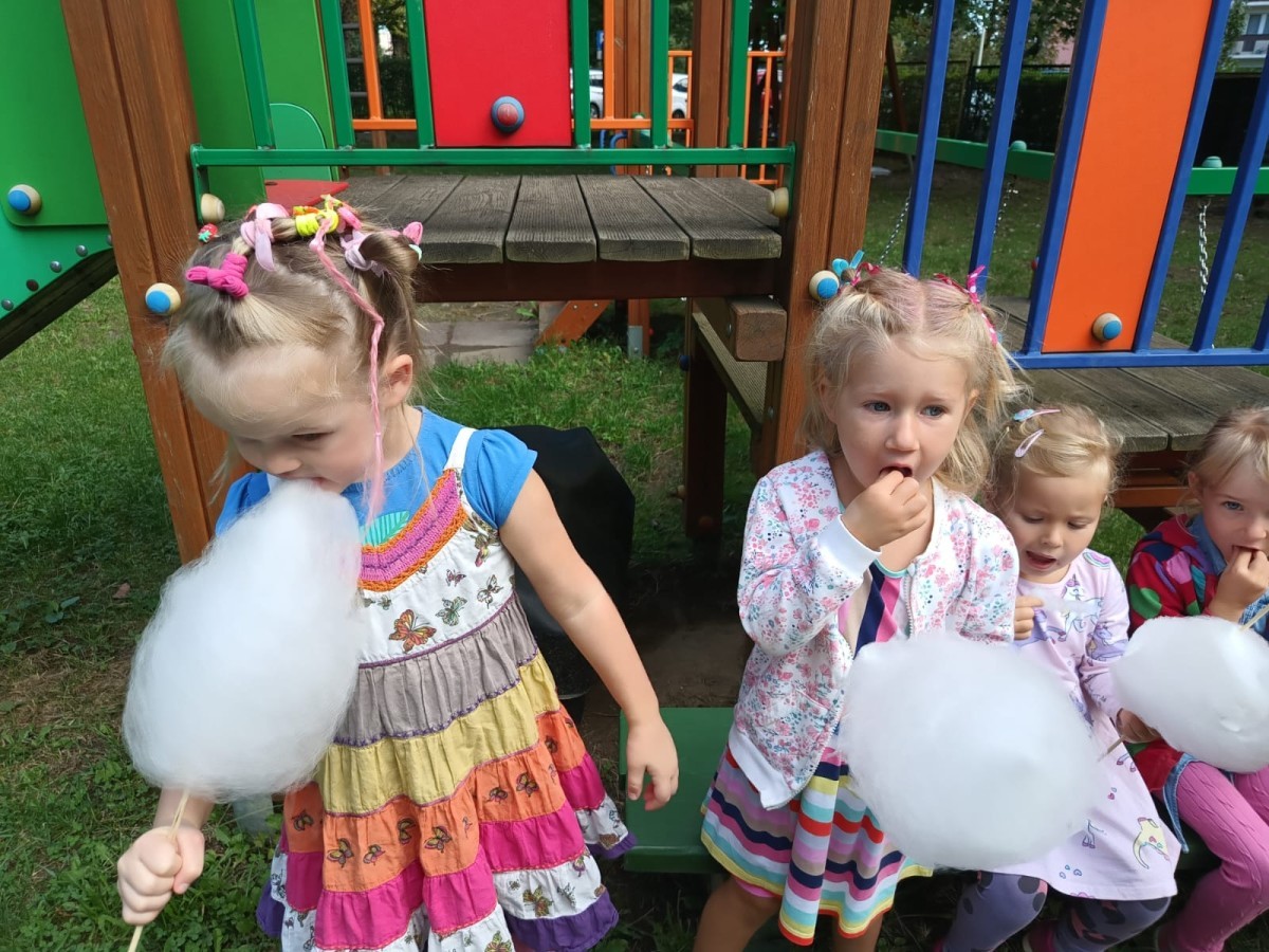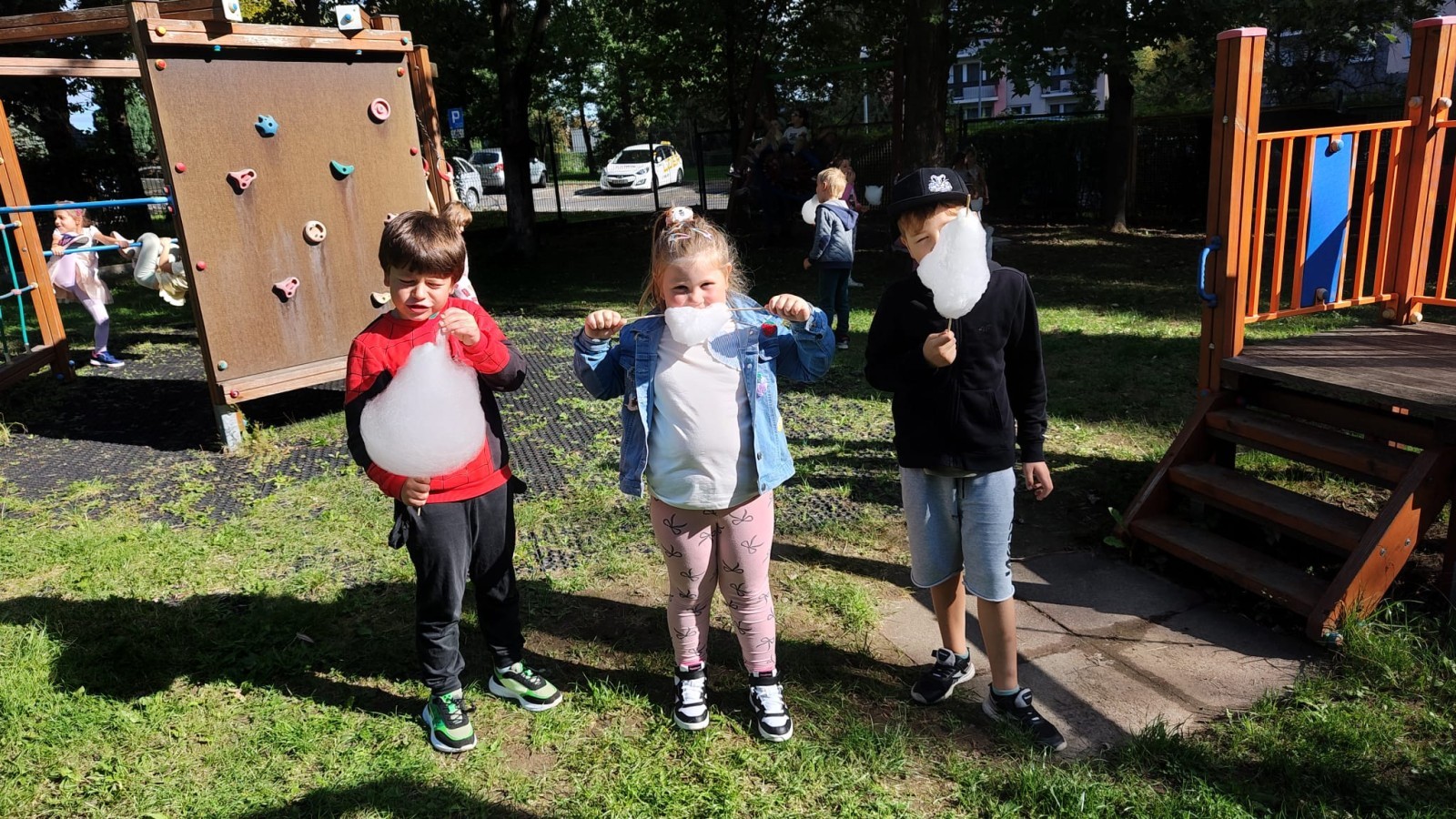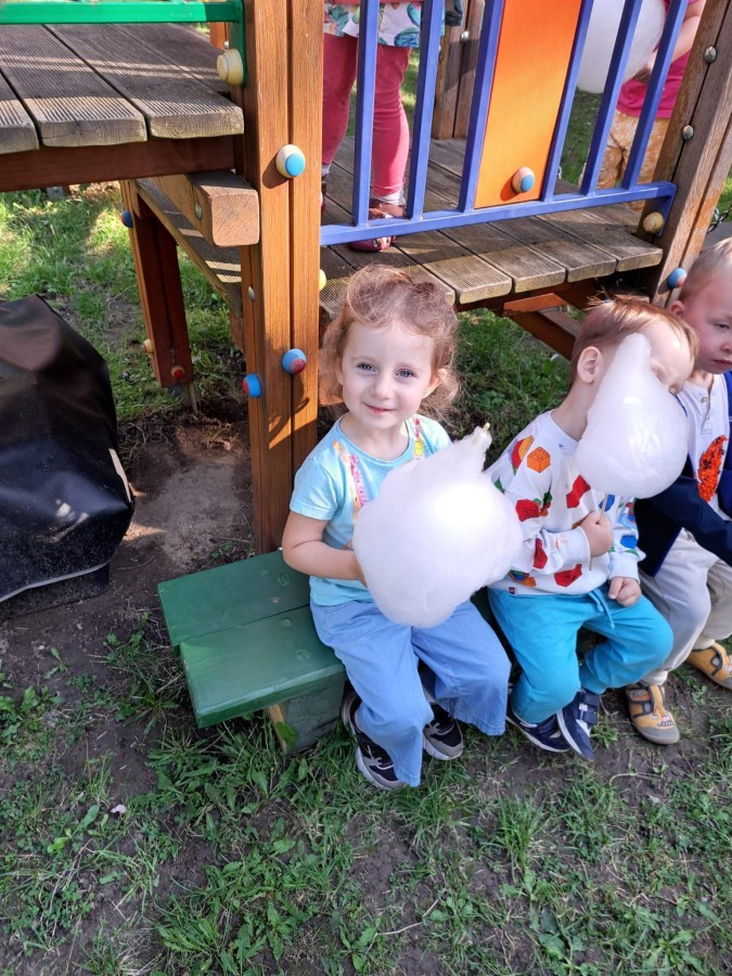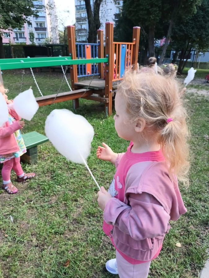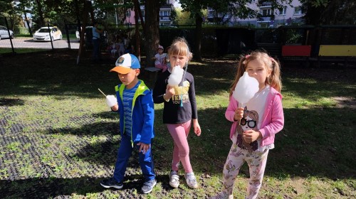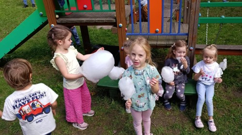 Nie zabrakło również kolorowej fotobudki, w której dzieci mogły zrobić sobie pamiątkowe zdjęcia. Największą niespodzianką okazała się jednak wata cukrowa, która wywołała prawdziwy zachwyt i słodki uśmiech na twarzach naszych Przedszkolaków. To był dzień pełen radości, który na długo pozostanie w naszej pamięci!