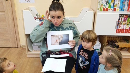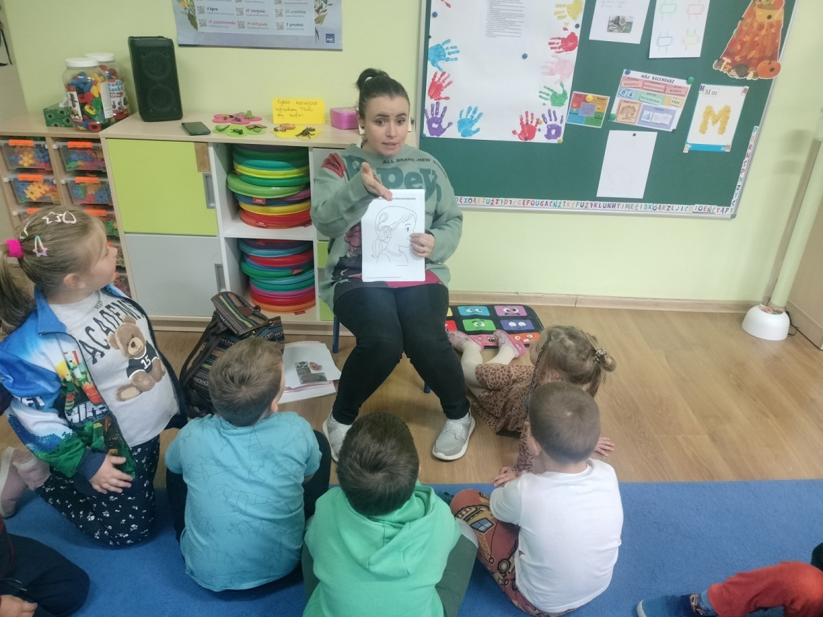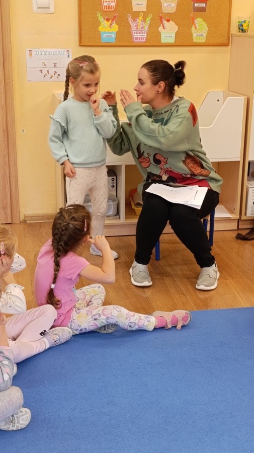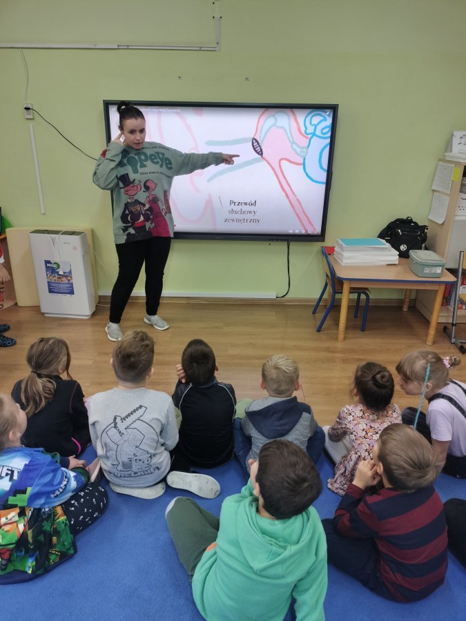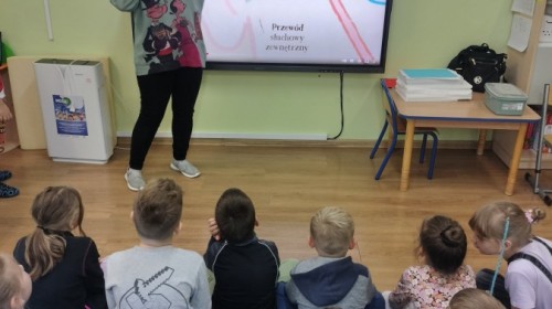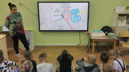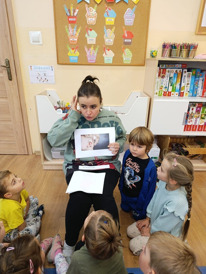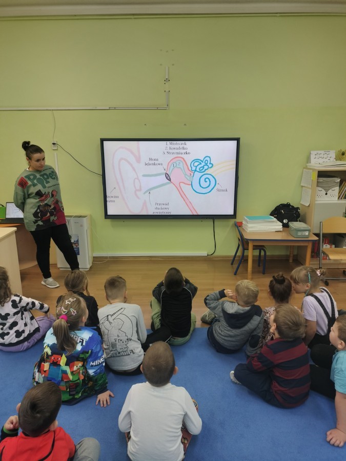 w codziennym życiu oraz jak o niego dbać. Przedszkolaki poznały zasady higieny uszu, dowiedziały się, czego należy unikać, by chronić swój słuch, a także wzięły udział w ciekawych zabawach dźwiękowych, które rozwijały ich wrażliwość słuchową. Zajęcia miały na celu uwrażliwienie dzieci na problem utraty słuchu