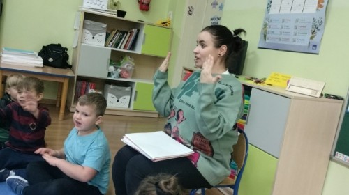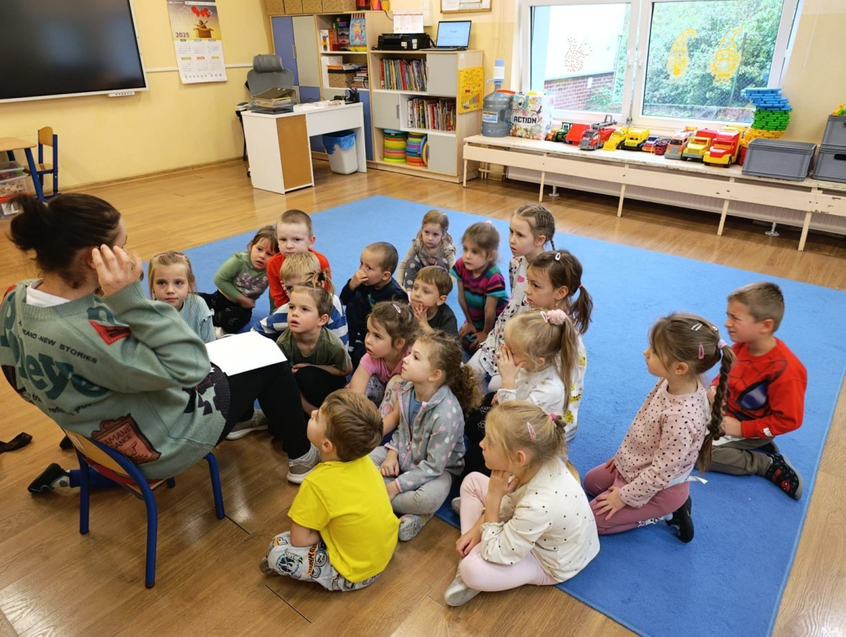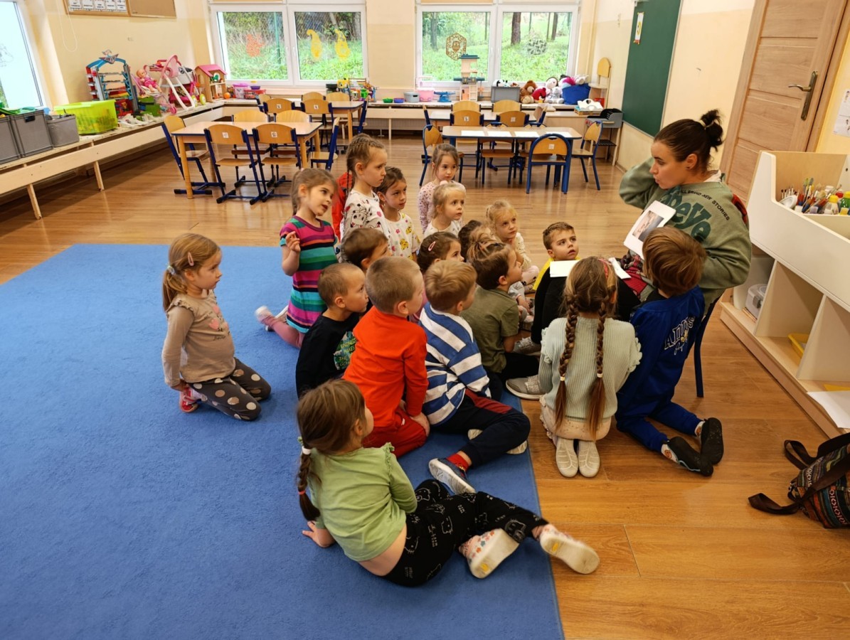 W naszym przedszkolu, w grupach Sówek, Jeżyków i Wilków, zostały przeprowadzone zajęcia w ramach ogólnopolskiej akcji „Kocham słyszeć 2025”. Podczas spotkania dzieci dowiedziały się, jak ważny jest słuch