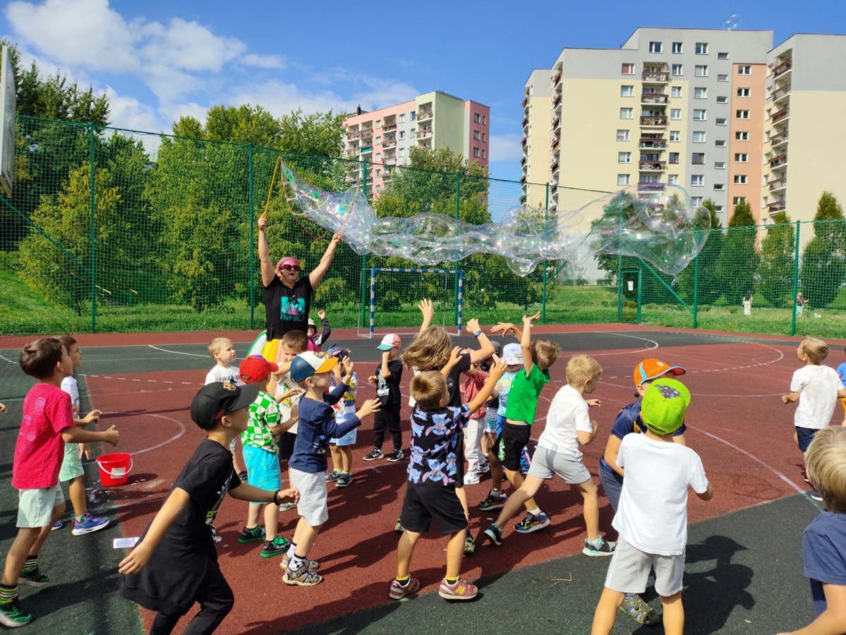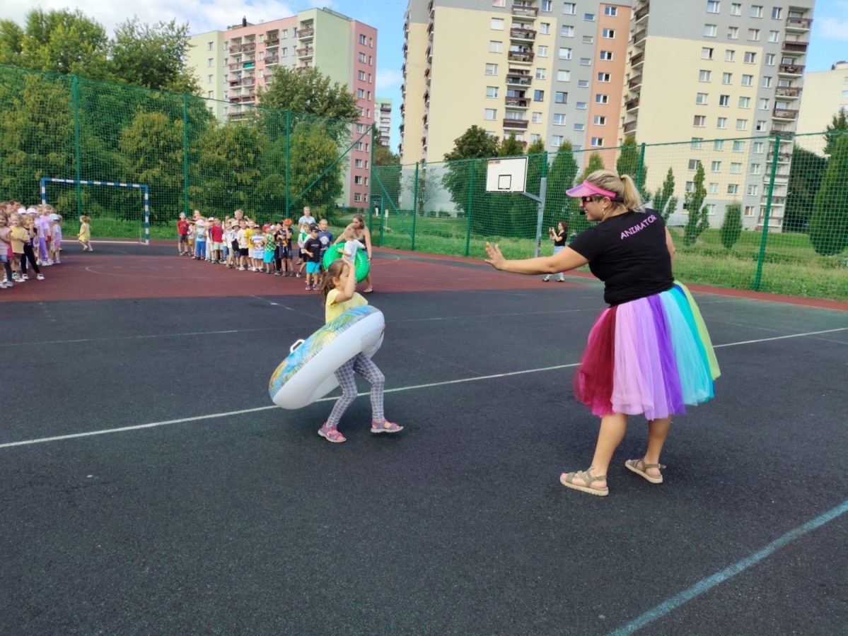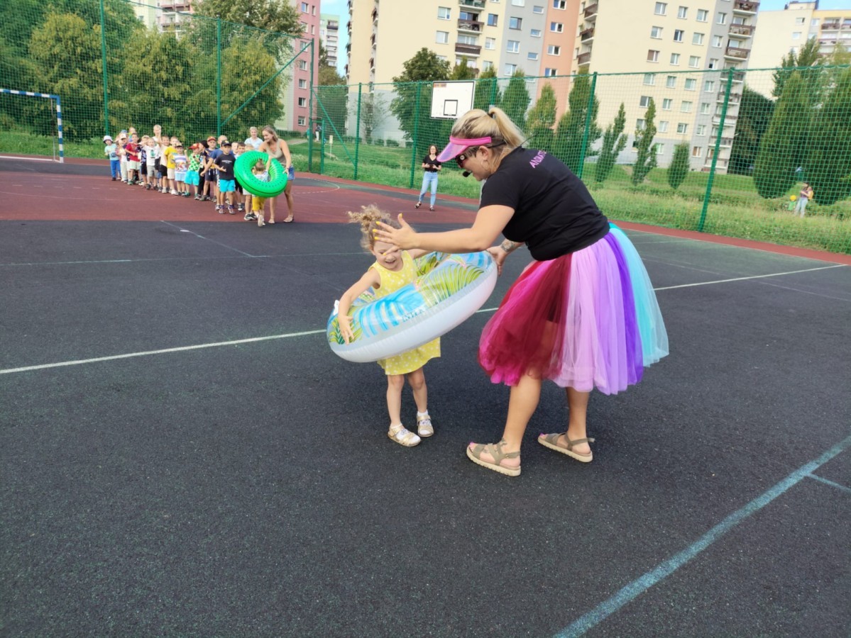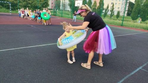 We wtorek 19 sierpnia dzieci miały okazję uczestniczyć w wyjątkowej dyskotece wakacyjnej na świeżym powietrzu prowadzonej przez animatorkę panią Magdę z Kolorowego Świata Animacji. Dzieci tańczyły