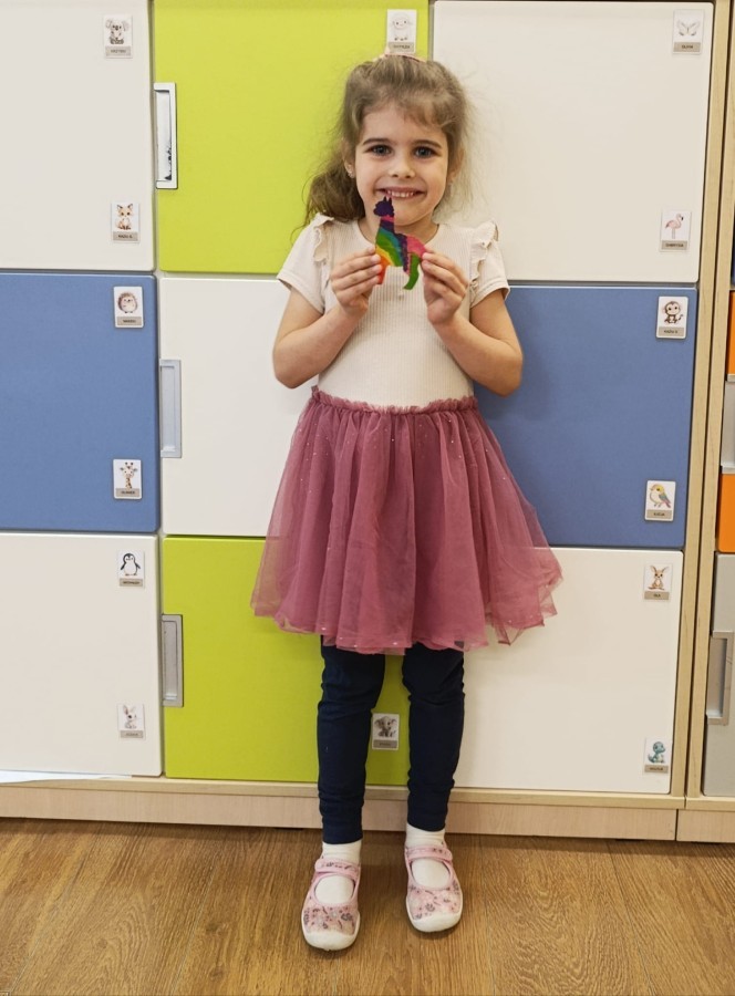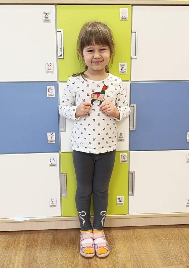 w Słodkim Zakątku. Rozmawialiśmy również na temat bezpiecznych postaw wobec zwierząt, ich karmienia i dbania o nie. "Jeżyki" wykonały pamiątkową pracę plastyczną "Moja wymarzona alpaka".