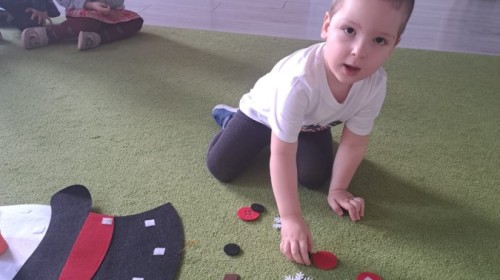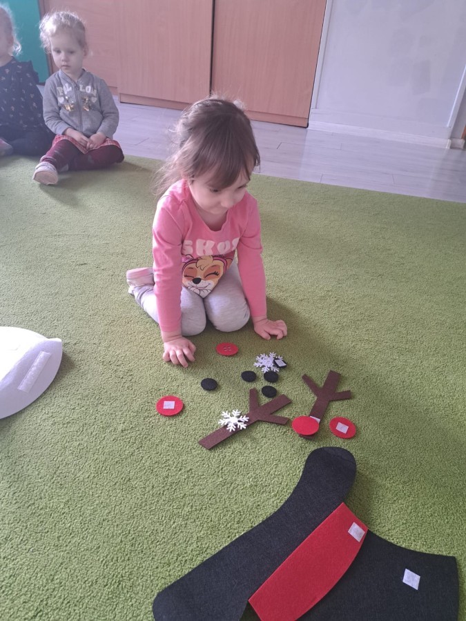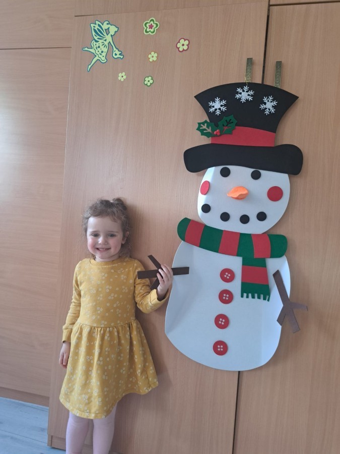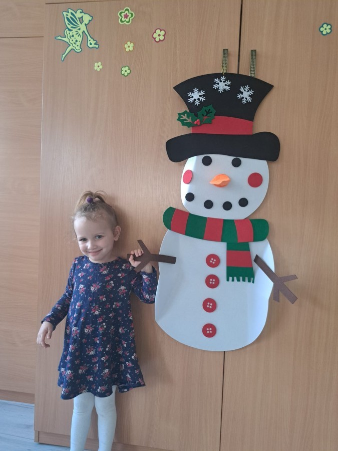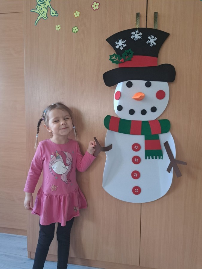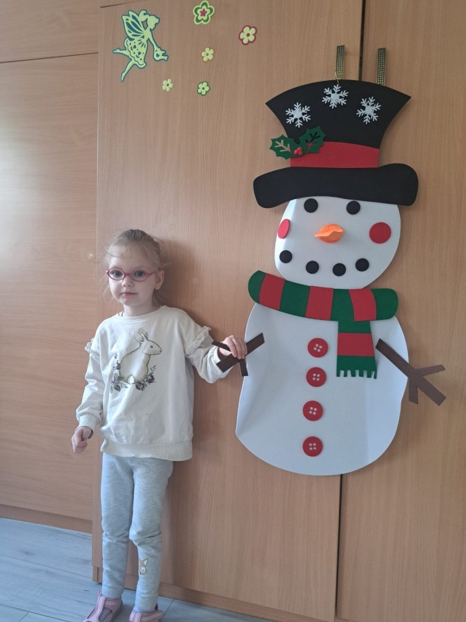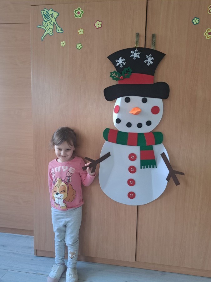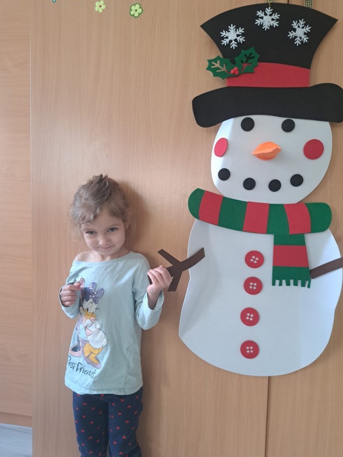 Podczas zajęć dzieci z grupy „Liski” uczestniczyły w zabawie-Ubieramy bałwanka, podczas której dobierały i układały elementy zimowego stroju. Dzieci rozwijały spostrzegawczość, umiejętność współpracy oraz utrwalały wiedzę o odpowiednim ubiorze zimą, była to nie tylko nauka, ale również i świetna zabawa.