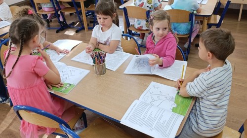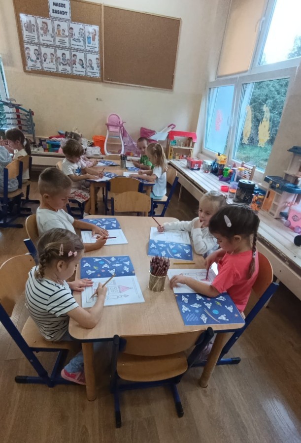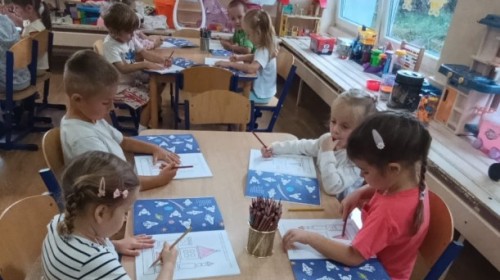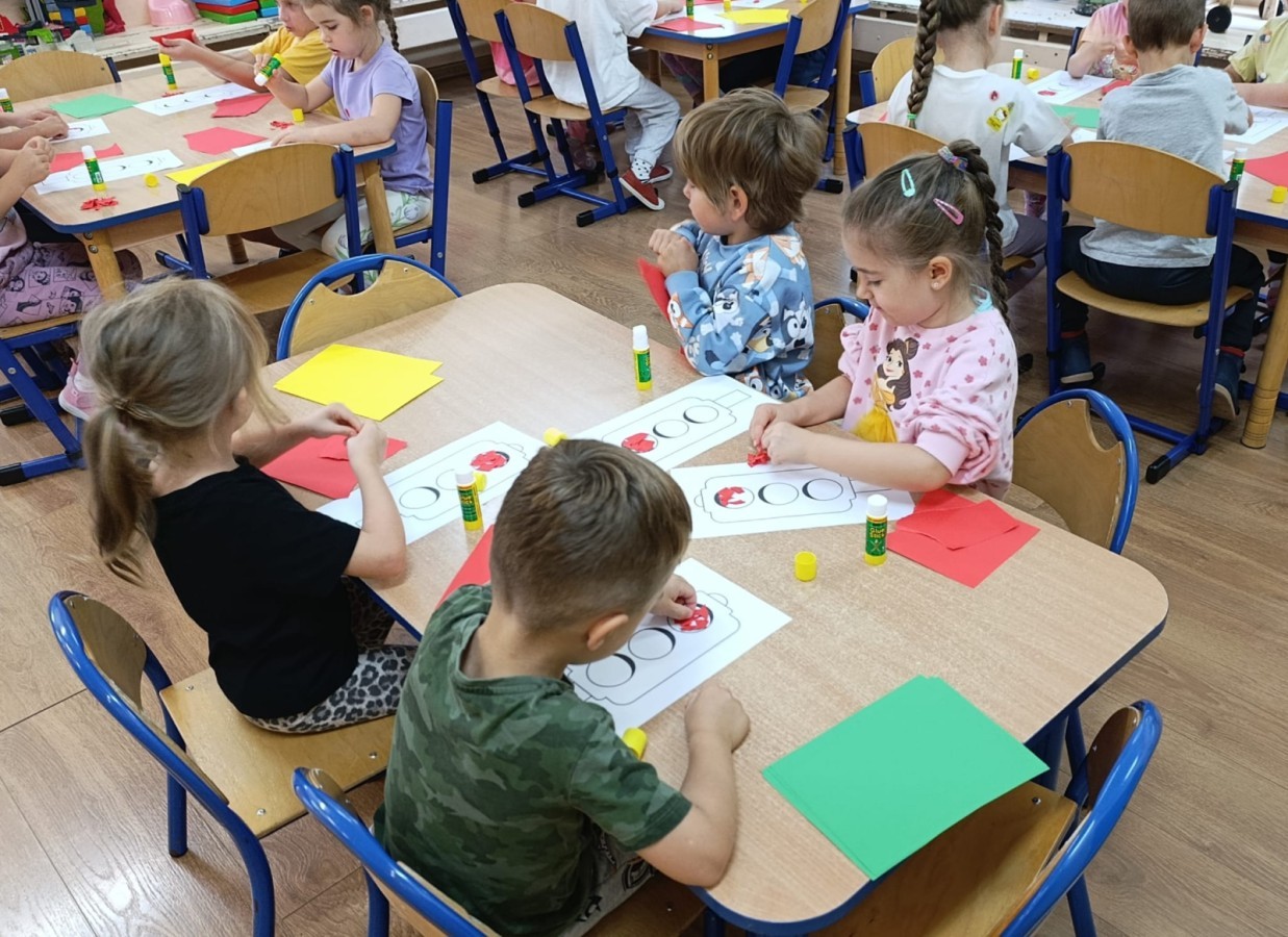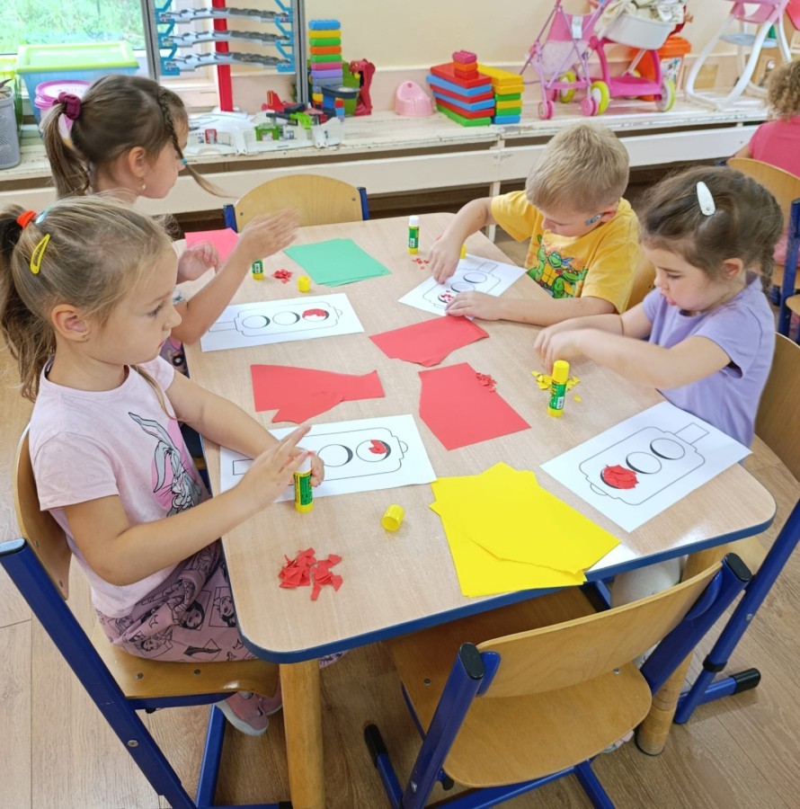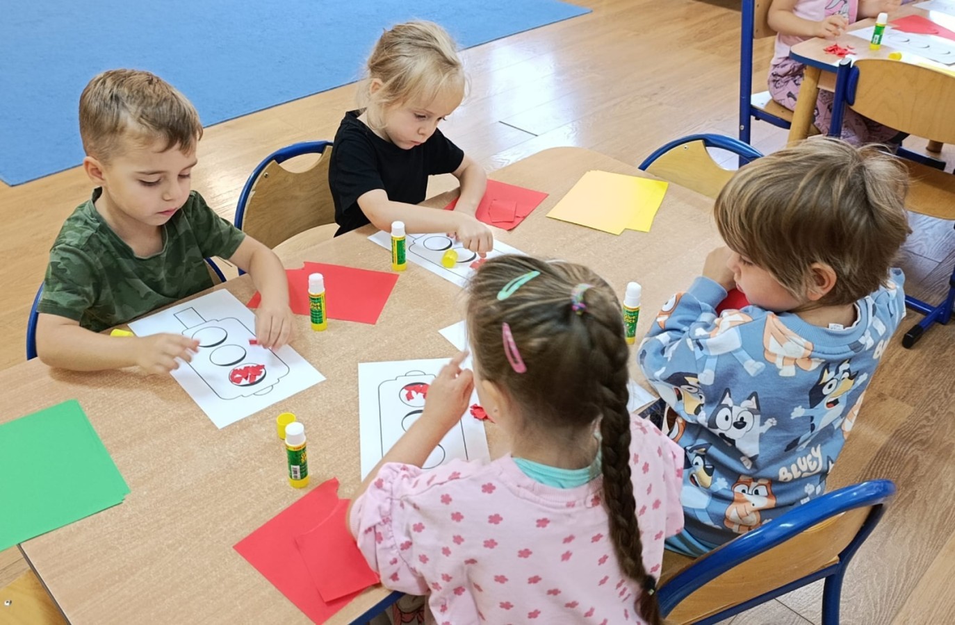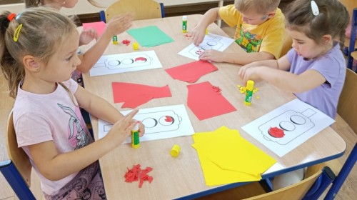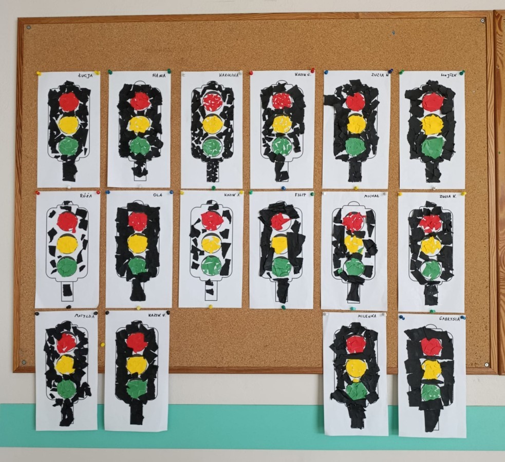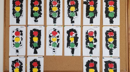 Bezpieczeństwo pieszych na drodze to ważna sprawa. W drugim tygodniu września rozmawialiśmy o przestrzeganiu zasad bezpieczeństwa w drodze do i z przedszkola, a także podczas codziennej zabawy w sali i na placu zabaw. Dzieci wykazały się dużą wiedzą i znajomością zasad w ruchu drogowym oraz poznały znaczenie znaków drogowych, sygnalizację świetlną, pojazdy specjalistyczne oraz numery alarmowe. Na koniec tygodnia dzieci wykonały pracę plastyczną "Sygnalizator świetlny".