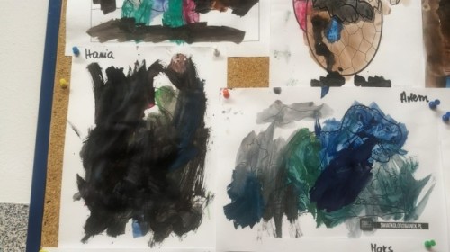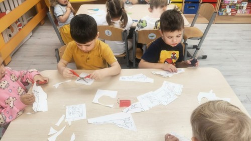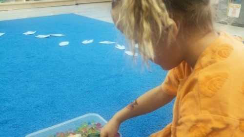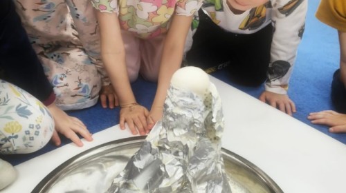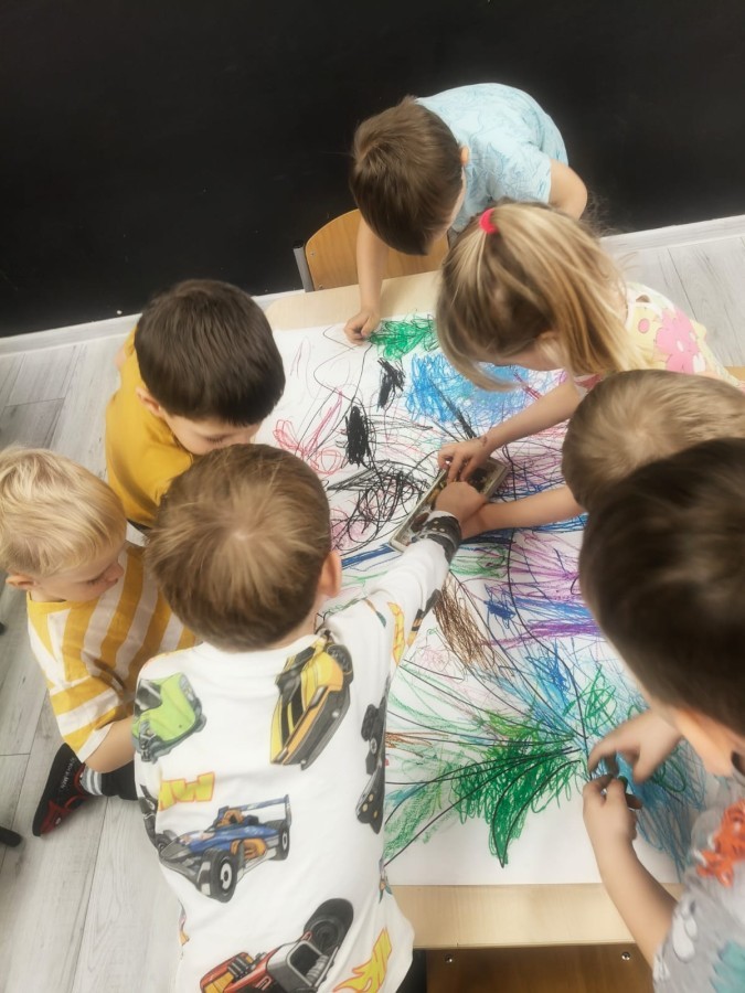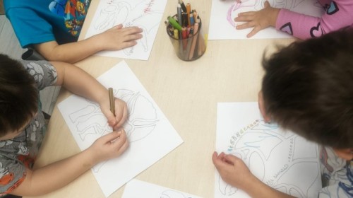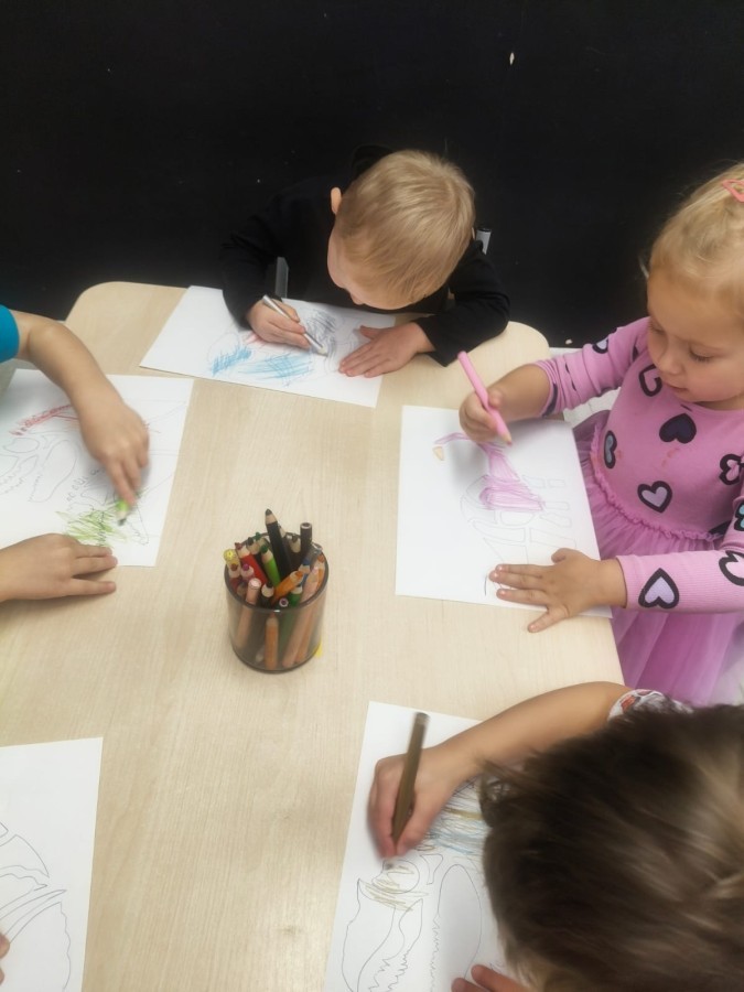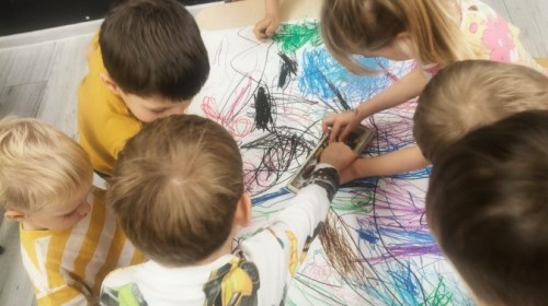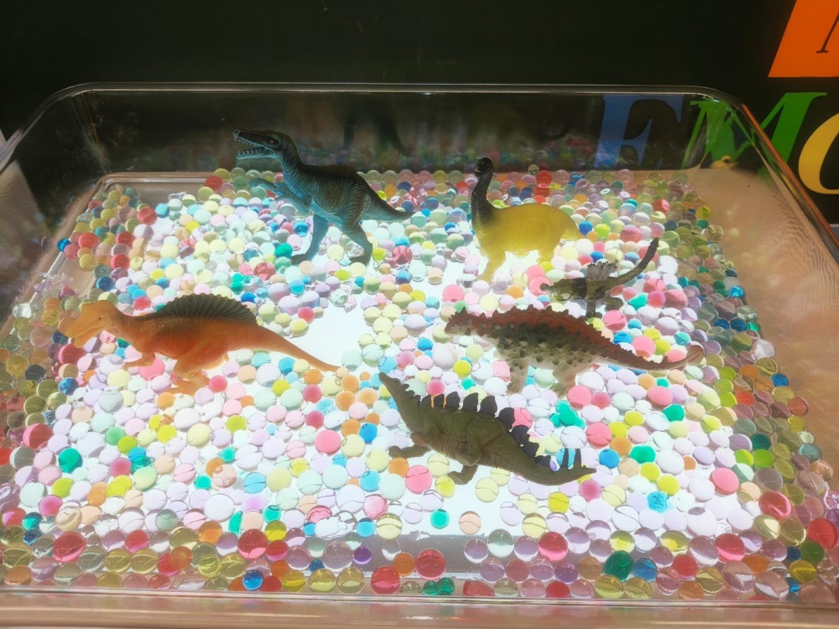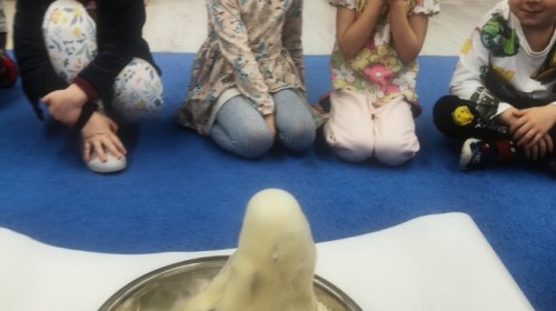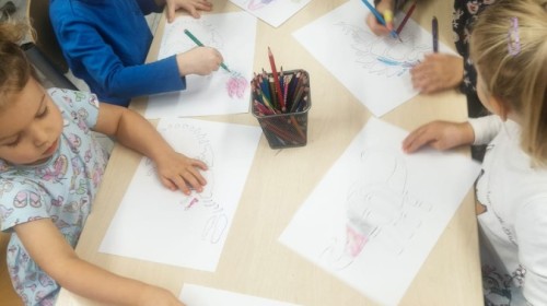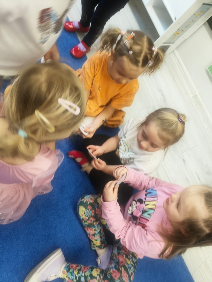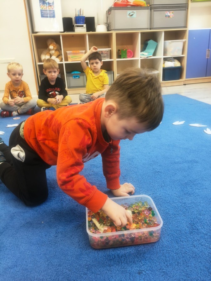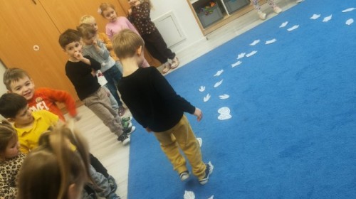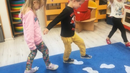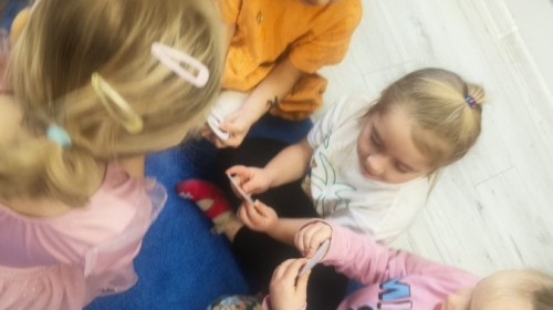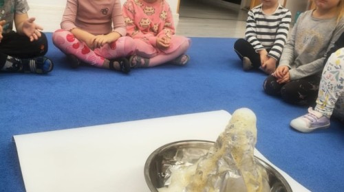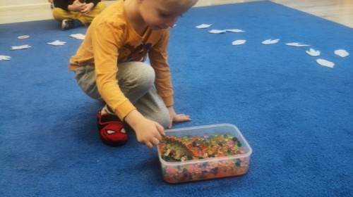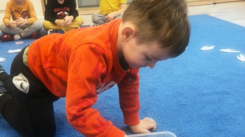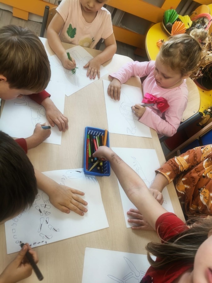W tym tygodniu rozmawialiśmy w grupie "Wiewiórek" o dinozaurach oraz o tym, jak wyglądał świat wiele milionów lat temu. Dzieci najpierw chodziły po sali tropiąc ślady, szukały ukrytych obrazków, a później odgadywały temat zajęć. Dzieci bardzo szybko odgadły, iż temat dotyczy dinozaurów. Podczas zabaw sensorycznych odkrywaliśmy różne rodzaje dinozaurów, szukaliśmy ciekawostek
