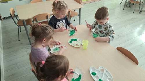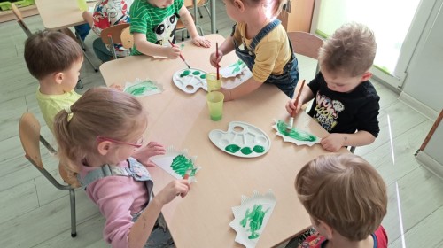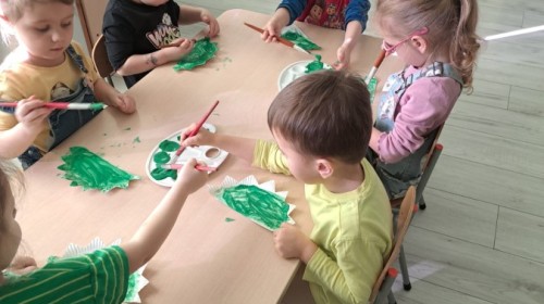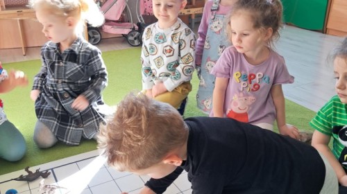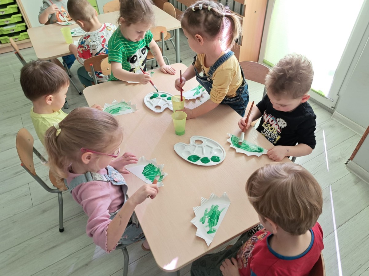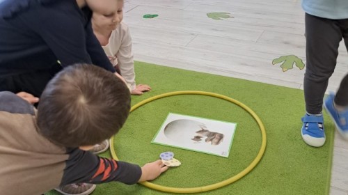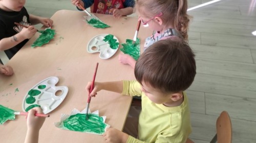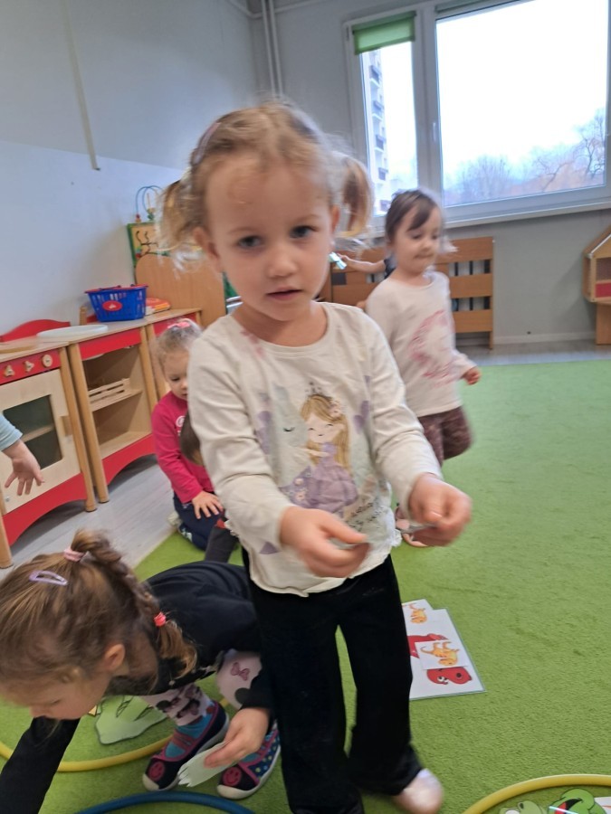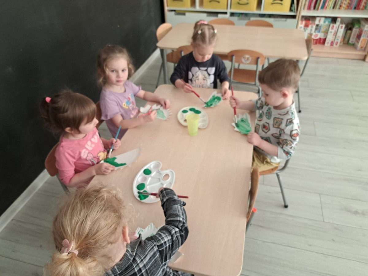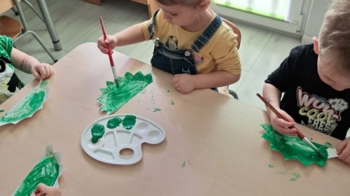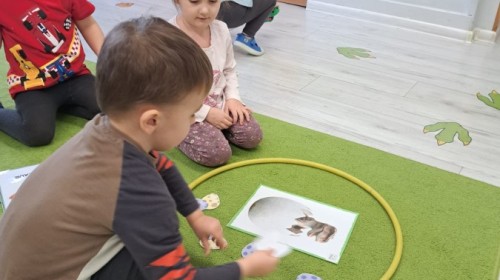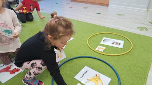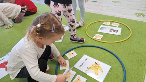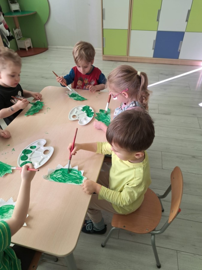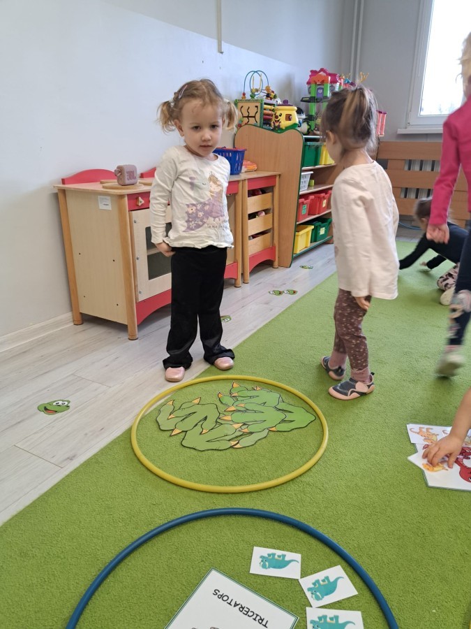 z odpowiednich pól, ćwicząc przy tym logiczne myślenie, orientację w przestrzeni oraz współpracę w grupie. Na zakończenie dzieci rozwijały swoją kreatywność i sprawność manualną, malując oraz tworząc własne dinozaury.
