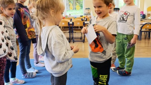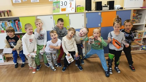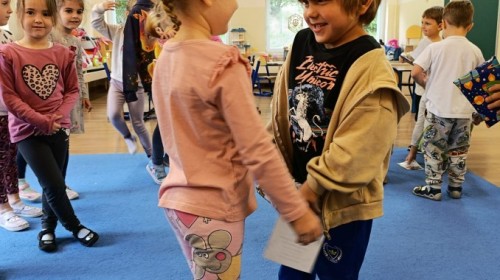 Z tej okazji dziewczynki złożyły kolegom serdeczne życzenia i wręczyły im upominki oraz dyplom „Super Chłopaka”. Nasi wspaniali chłopcy zostali również zaproszeni do pamiątkowych zdjęć. Dzień Chłopaka był dla "Jeżyków" doskonałą okazją do wspólnej zabawy, integracji i nauki okazywania sobie nawzajem życzliwości. Serdecznie dziękujemy Rodzicom za pomoc w przygotowaniu niespodzianek oraz zaangażowanie w ten wyjątkowy dzień!