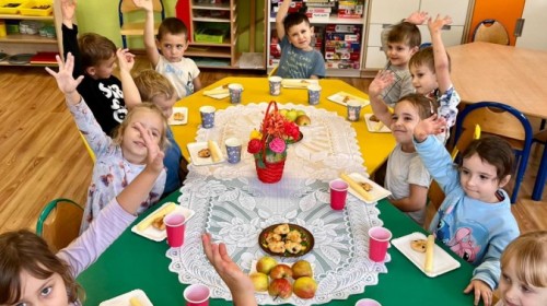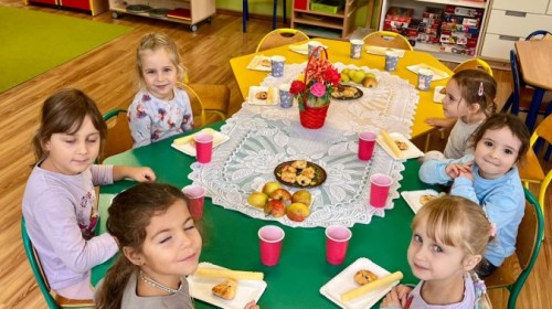 10 października w grupie Muchomorków obchodziliśmy Dzień Dziewczynek. W tym dniu na nasze wyjątkowe dziewczynki w grupie czekała moc atrakcji. Koledzy wręczyli naszym małym damom upominki przygotowane przez rodziców, złożyli życzenia i tradycyjnie zaśpiewali gromkie sto lat. W całym przedszkolu było można usłyszeć taneczną muzykę, w rytm której wszyscy świetnie się bawili. Chłopcy z ogromnym zaangażowaniem robili wszystko, aby ten dzień uczynić wyjątkowym. Choć to było Święto Dziewczynek, to koleżanki nie zapomnieli również o chłopcach! Oni też dostali drobne upominki. Uśmiechy na twarzach przedszkolaków świadczyły o miło spędzonym czasie. Dzień Dziewczynek dostarczył dzieciom dużo wrażeń, śmiechu i radości, a każda mała dama poczuła się wyjątkowo. Wiele radości sprawił dzieciom przygotowany przez mamusię Mii specjalnie na tę okazję, poczęstunek w postaci pysznych ciasteczek – serdecznie dziękujemy!