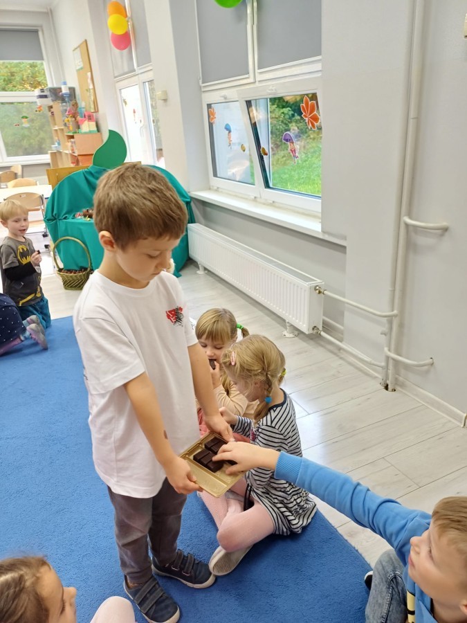 11 października obchodzimy Międzynarodowy Dzień Dziewczynek. Na całym świecie w tym dniu staramy się, by każda dziewczynka czuła się wyjątkowo. Chłopcy z grupy Sówek już kilka dni wcześniej przygotowywali się do tego wydarzenia. Każdy z nich starannie wykonał zakładkę do książki dla wylosowanej przez siebie koleżanki. Odbyły się też wesołe zabawy z chustą animacyjną, ze szczególnym zwróceniem uwagi na to, by to właśnie one miały niezapomniane wrażenia. Nie zabrakło również słodkiego poczęstunku, o który z własnej inicjatywy, zadbał jeden z naszych dżentelmenów. Wszystkim dziewczynkom z okazji ich święta życzymy uśmiechu na każdy dzień, nie tylko 11 października.