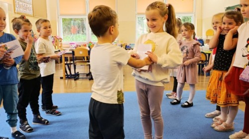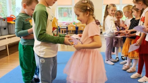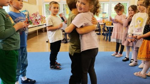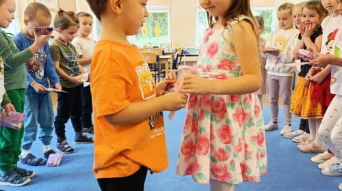 W piątek 10 października nasza grupa świętowała Dzień Dziewczynek – wyjątkowy czas, w którym wszystkie nasze małe damy mogły poczuć się naprawdę szczególnie. Chłopcy złożyli dziewczynkom życzenia, wręczyli upominki i zaśpiewali "Sto lat". W sali panowała radosna atmosfera, a uśmiechy nie znikały z twarzy przez cały dzień.