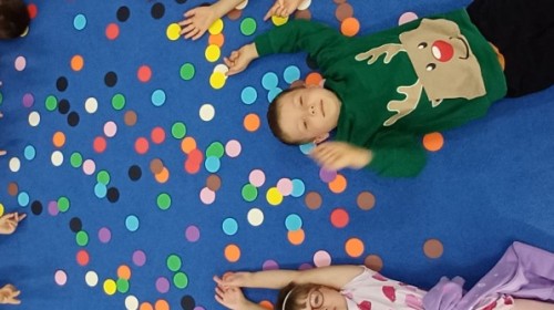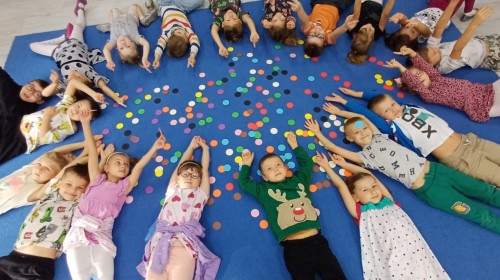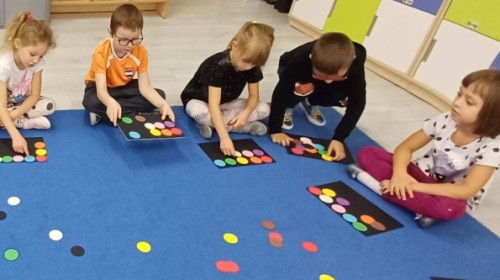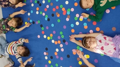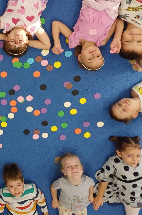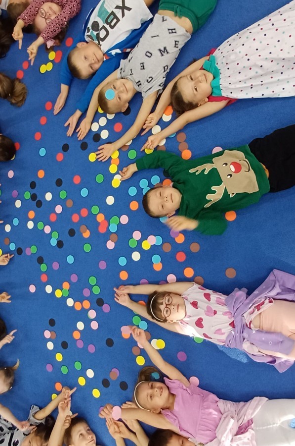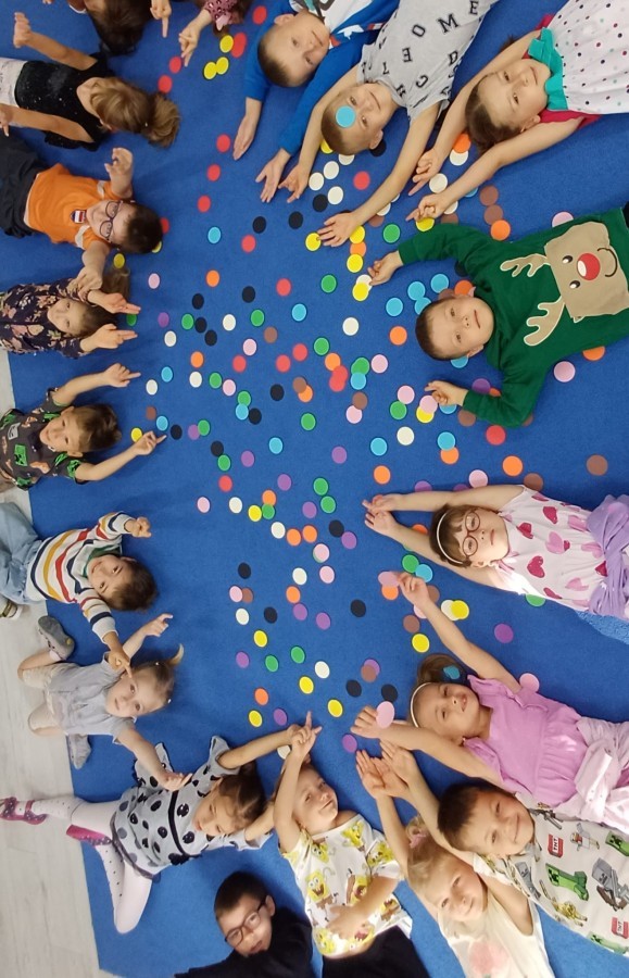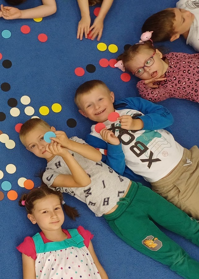 W takt tego i innych wesołych utworów rytmiczno- muzycznych bawiły się dzieci z grupy Sówek z okazji Dnia Kropki. Przy dźwiękach muzyki tańczyły, liczyły, wykonywały wyzwania. Ten najprostszy znak graficzny stał się kanwą radosnej zabawy oraz polem dla twórczości i wyobraźni, bo z tych samych kolorowych, dziesięciu kropek powstało wiele pomysłowych kompozycji. Ten dzień tematyczny pokazał nam, że wystarczy niewiele, by świetnie się bawić. Udowadnia też, że fantazja dzieci nie ma granic. Wesoła zabawa może się udać, wystarczy dobre nastawienie i grono przyjaciół.