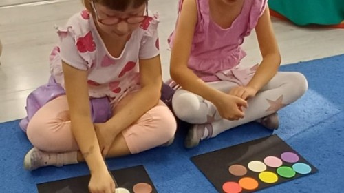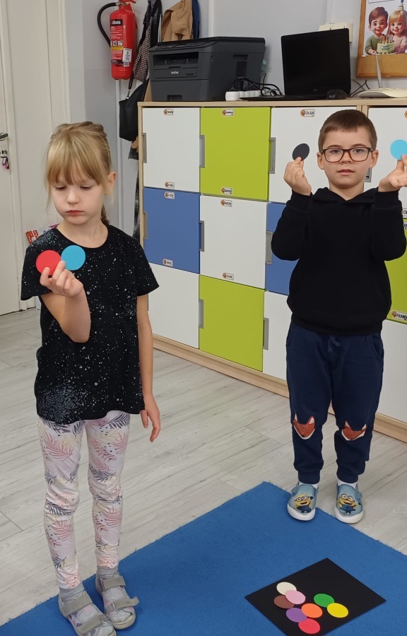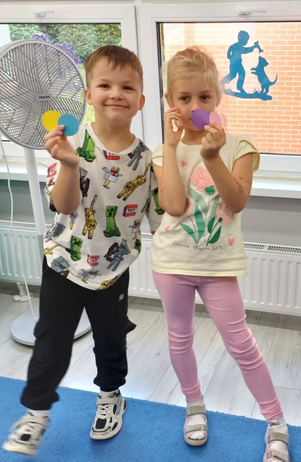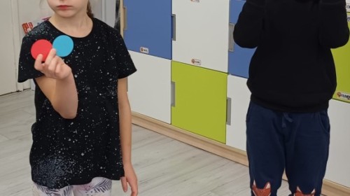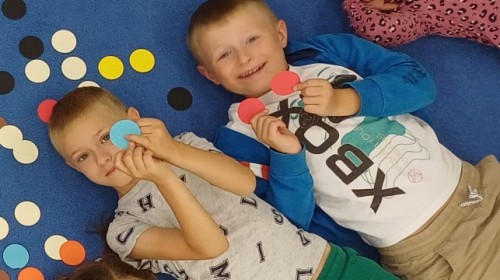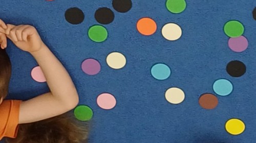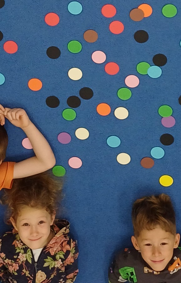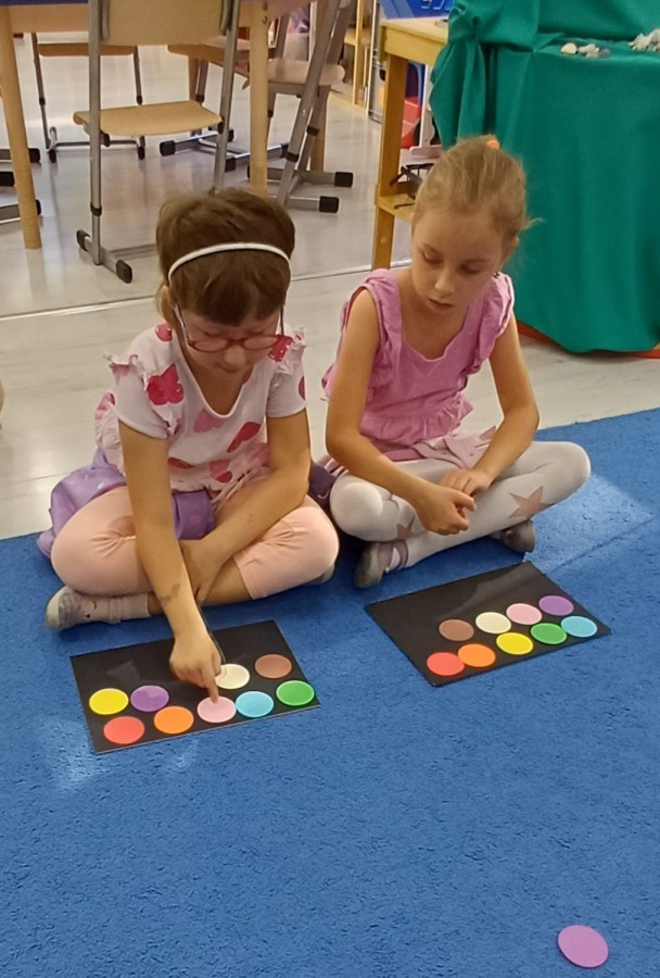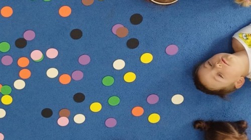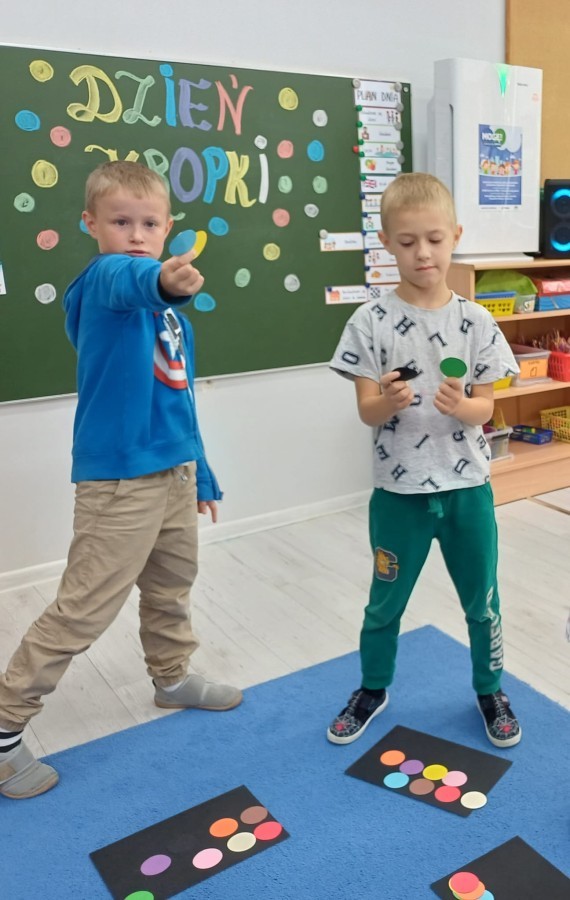 „Kropka kropeczka, dwie kropeczki mam, kropka kropeczka i pokaże Wam jak z kropeczkami pobawić się, chociaż mam tu tylko kropki dwie!"