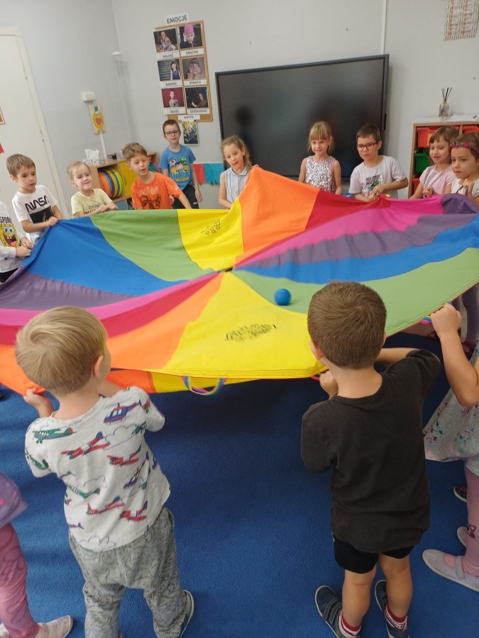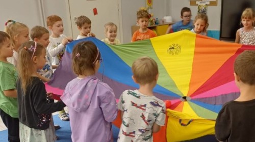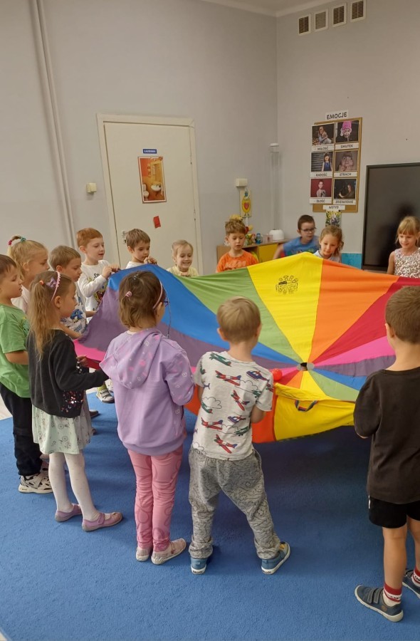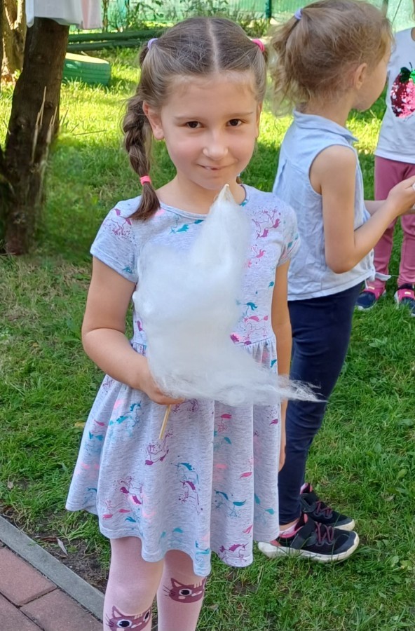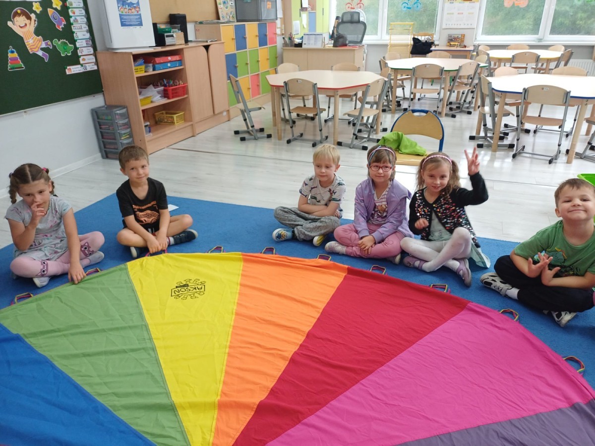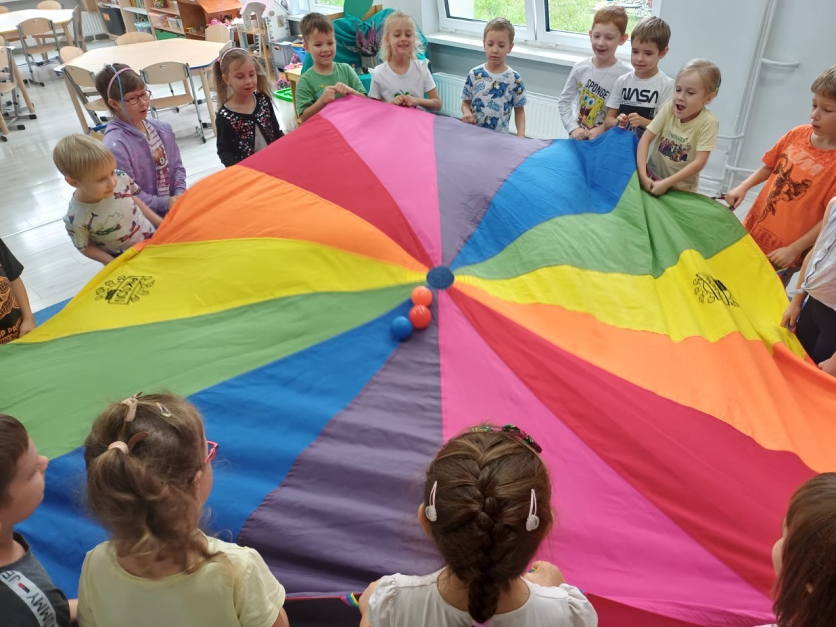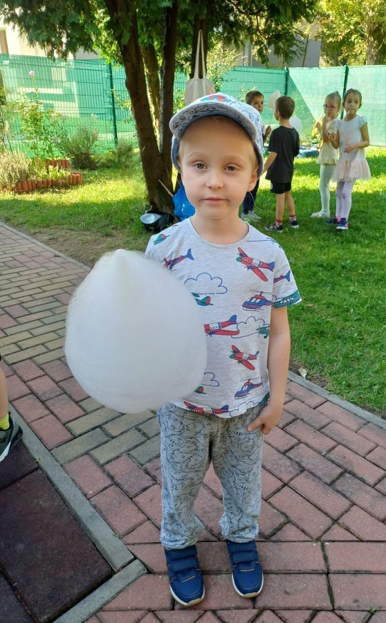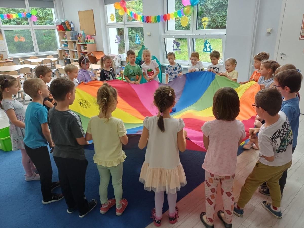 20 września obchodzimy Ogólnopolski Dzień Przedszkolaka. Z tej okazji, w kolorowo udekorowanej sali grupy Sówek, od rana słychać było wesołe dźwięki zabawy. Pierwszą część imprezy stanowiły zajęcia z chustą animacyjną. Dzieci brały udział w tradycyjnych zabawach ze śpiewem. Tworzyły morze, na którym na przemian z szalejącym sztormem nastawała bloga cisza. Udało im się też zagrać w bilard oraz współpracować w drużynach, tworząc kolejne litery alfabetu. Najwięcej emocji wzbudziła jednak zabawa w rekina, który z apetytem pożerał kolejne przedszkolaki- te jednak zamiast płakać, piszczały z radości. Podczas wyjścia do ogrodu czekała na Sówki niespodzianka- poczęstunek w postaci waty cukrowej, przy dźwiękach wesołej muzyki i w otoczeniu mydlanych baniek. Zabawa zakończyła się udekorowaniem dzieci pamiątkowymi medalami, które zabrały ze sobą do domu. To był niezapomniany dzień.