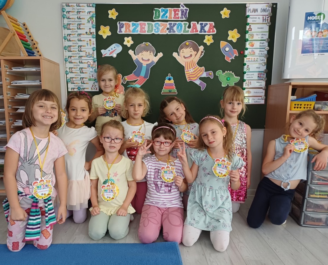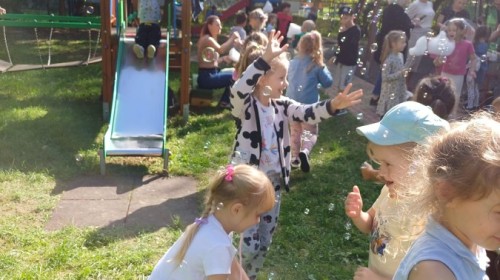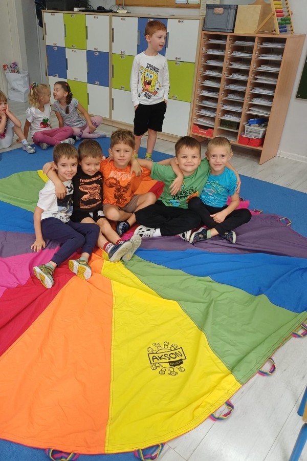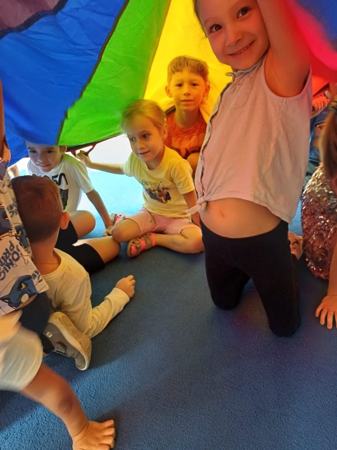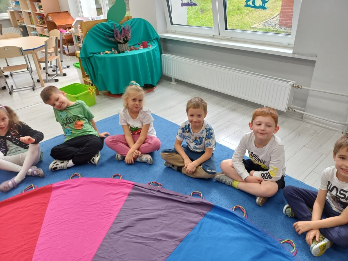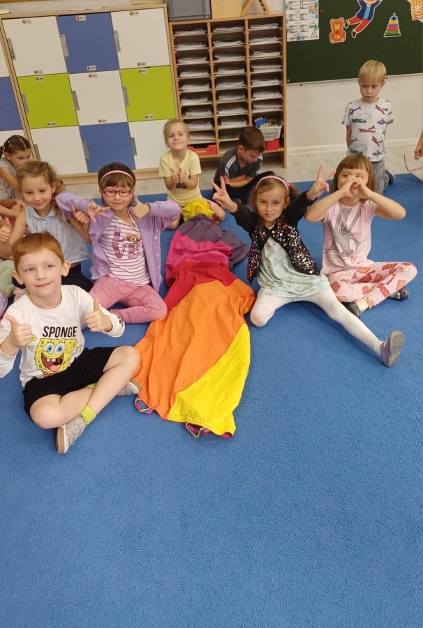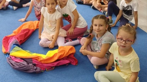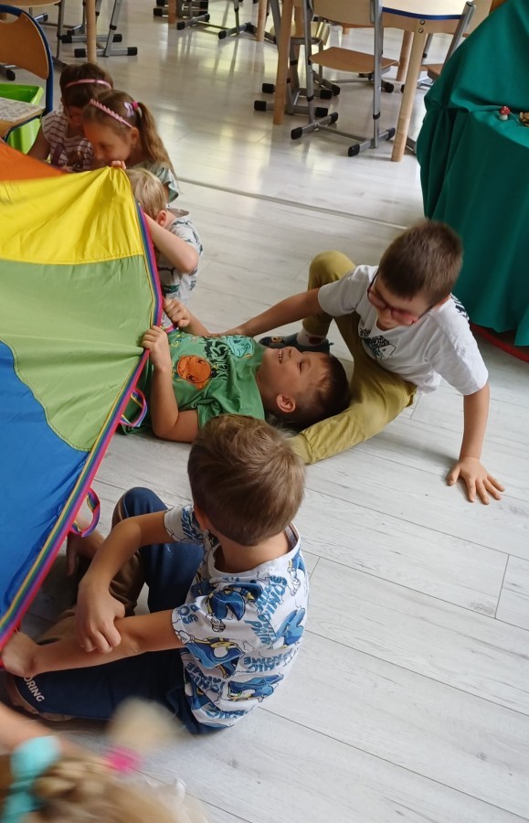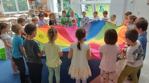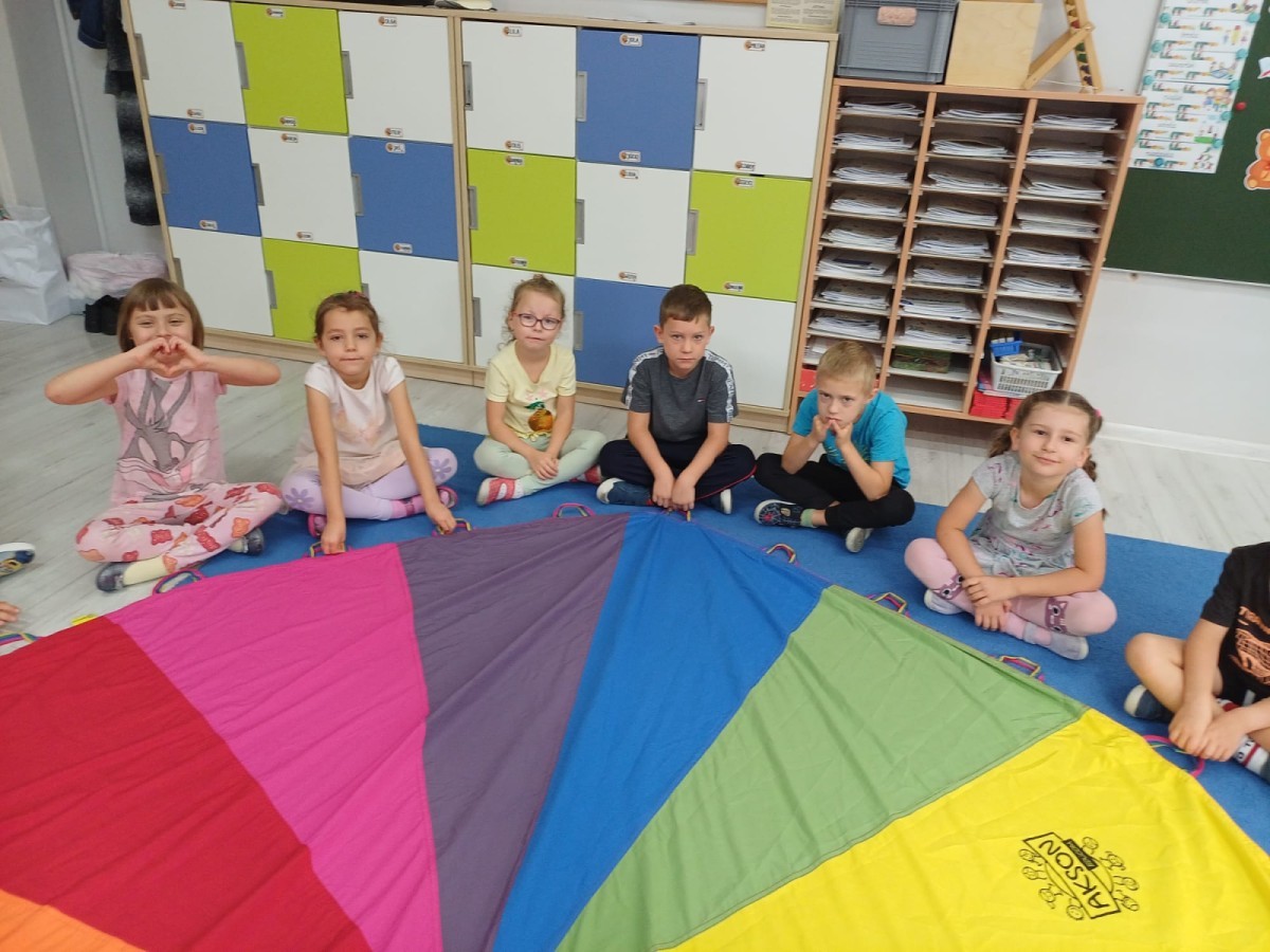 20 września obchodzimy Ogólnopolski Dzień Przedszkolaka. Z tej okazji, w kolorowo udekorowanej sali grupy Sówek, od rana słychać było wesołe dźwięki zabawy. Pierwszą część imprezy stanowiły zajęcia z chustą animacyjną. Dzieci brały udział w tradycyjnych zabawach ze śpiewem. Tworzyły morze, na którym na przemian z szalejącym sztormem nastawała bloga cisza. Udało im się też zagrać w bilard oraz współpracować w drużynach, tworząc kolejne litery alfabetu. Najwięcej emocji wzbudziła jednak zabawa w rekina, który z apetytem pożerał kolejne przedszkolaki- te jednak zamiast płakać, piszczały z radości. Podczas wyjścia do ogrodu czekała na Sówki niespodzianka- poczęstunek w postaci waty cukrowej, przy dźwiękach wesołej muzyki i w otoczeniu mydlanych baniek. Zabawa zakończyła się udekorowaniem dzieci pamiątkowymi medalami, które zabrały ze sobą do domu. To był niezapomniany dzień.
