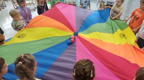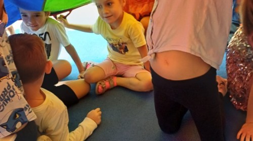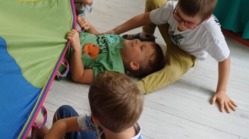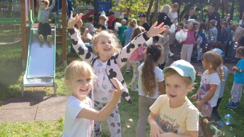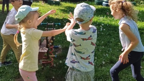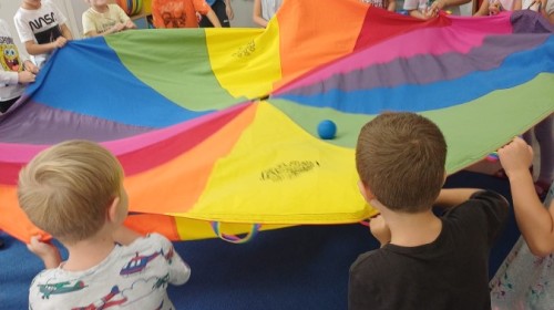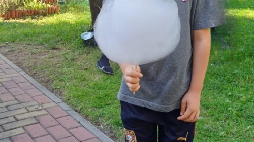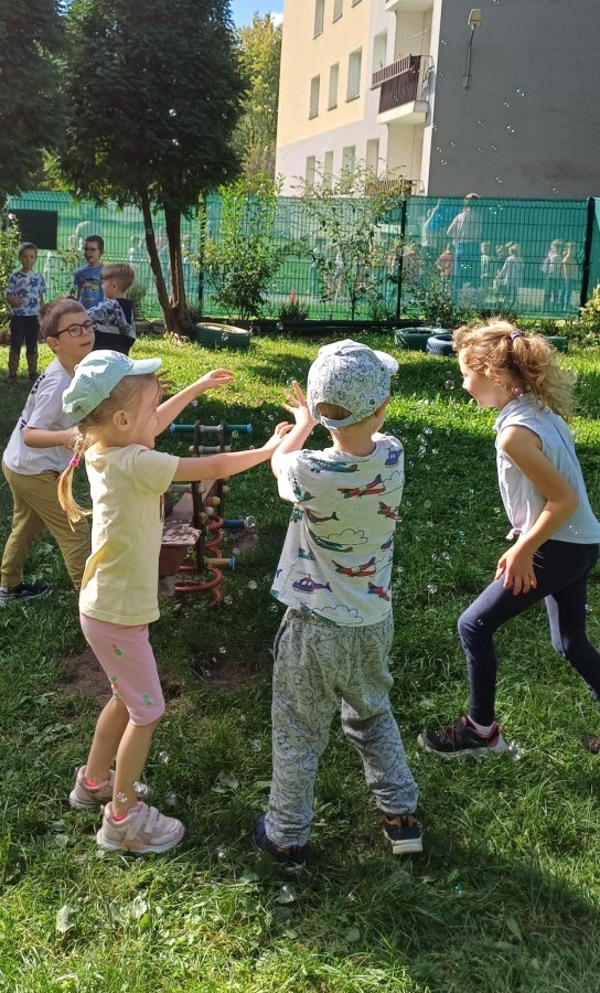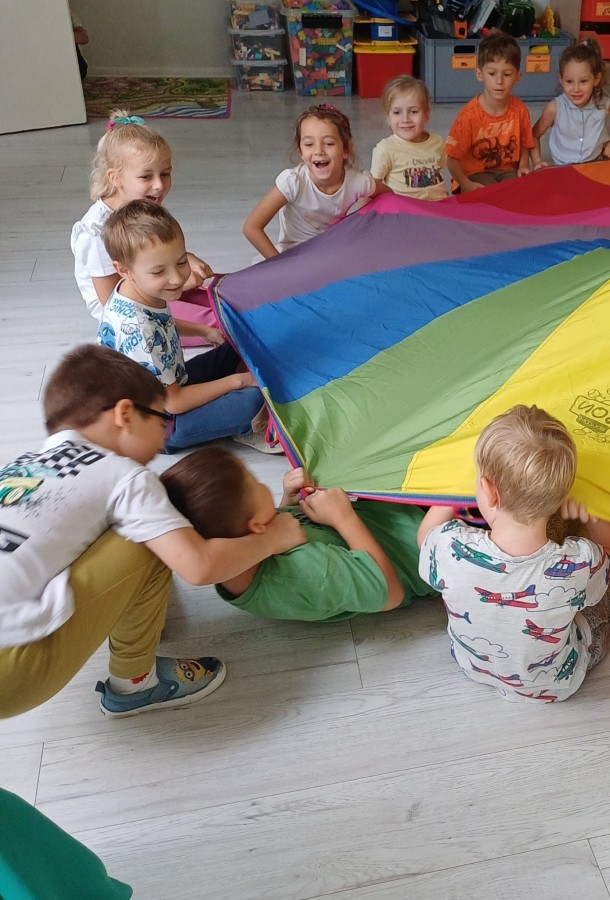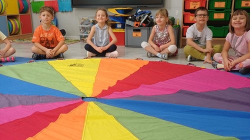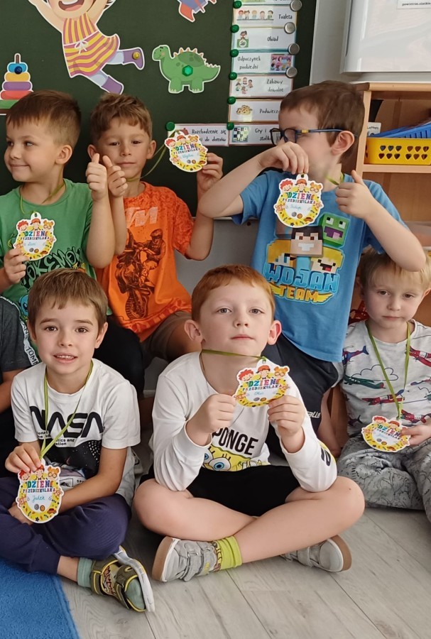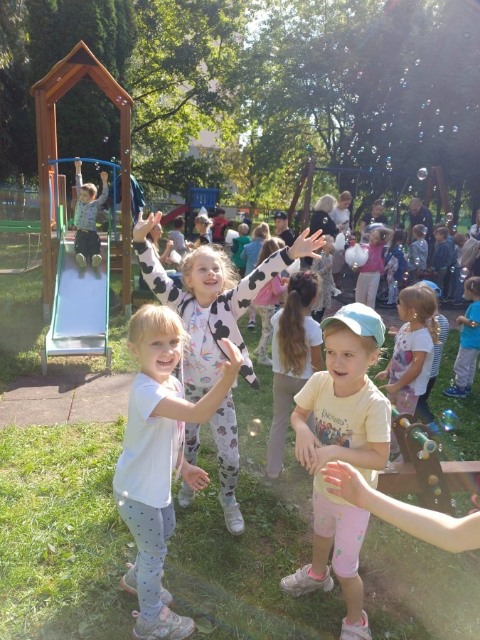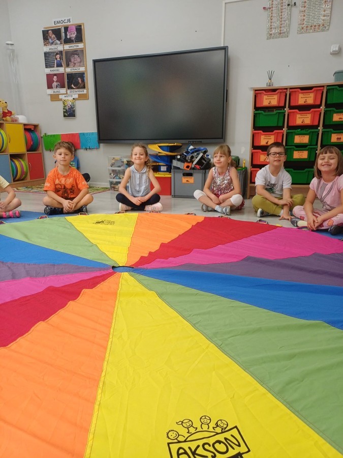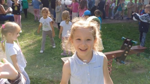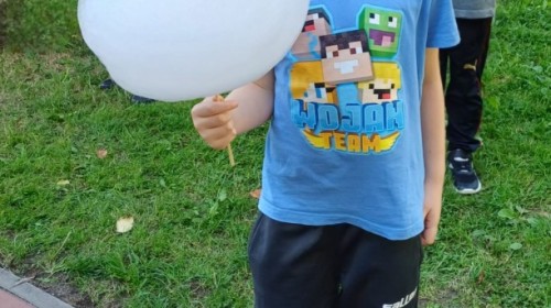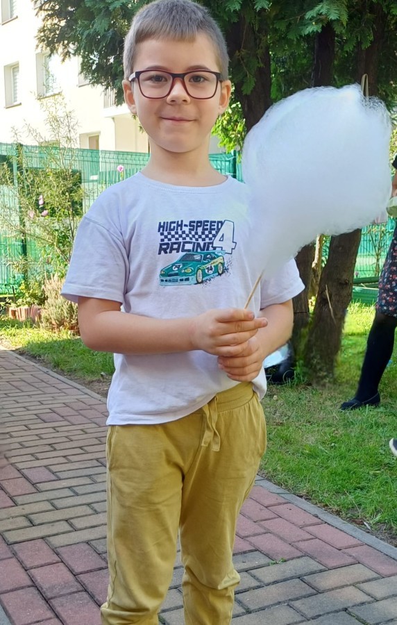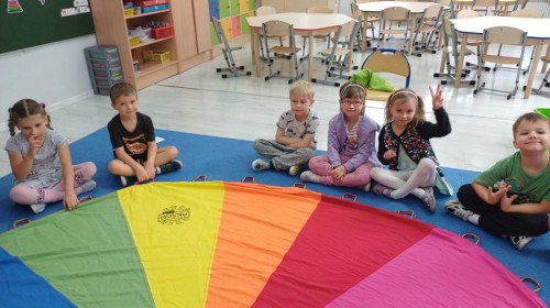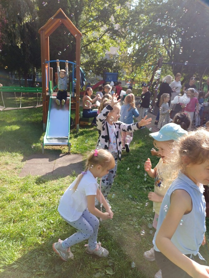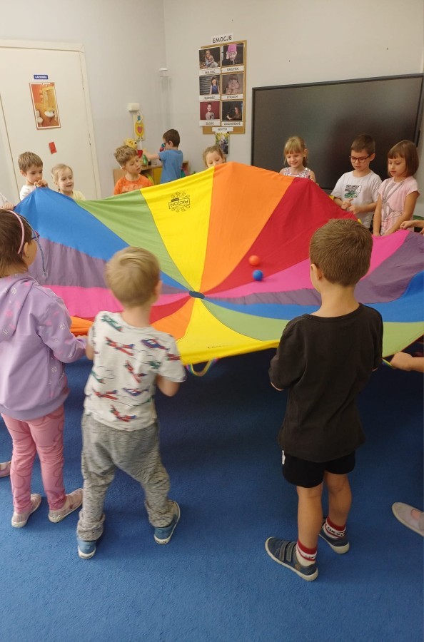 20 września obchodzimy Ogólnopolski Dzień Przedszkolaka. Z tej okazji, w kolorowo udekorowanej sali grupy Sówek, od rana słychać było wesołe dźwięki zabawy. Pierwszą część imprezy stanowiły zajęcia z chustą animacyjną. Dzieci brały udział w tradycyjnych zabawach ze śpiewem. Tworzyły morze, na którym na przemian z szalejącym sztormem nastawała bloga cisza. Udało im się też zagrać w bilard oraz współpracować w drużynach, tworząc kolejne litery alfabetu. Najwięcej emocji wzbudziła jednak zabawa w rekina, który z apetytem pożerał kolejne przedszkolaki- te jednak zamiast płakać, piszczały z radości. Podczas wyjścia do ogrodu czekała na Sówki niespodzianka- poczęstunek w postaci waty cukrowej, przy dźwiękach wesołej muzyki i w otoczeniu mydlanych baniek. Zabawa zakończyła się udekorowaniem dzieci pamiątkowymi medalami, które zabrały ze sobą do domu. To był niezapomniany dzień.
