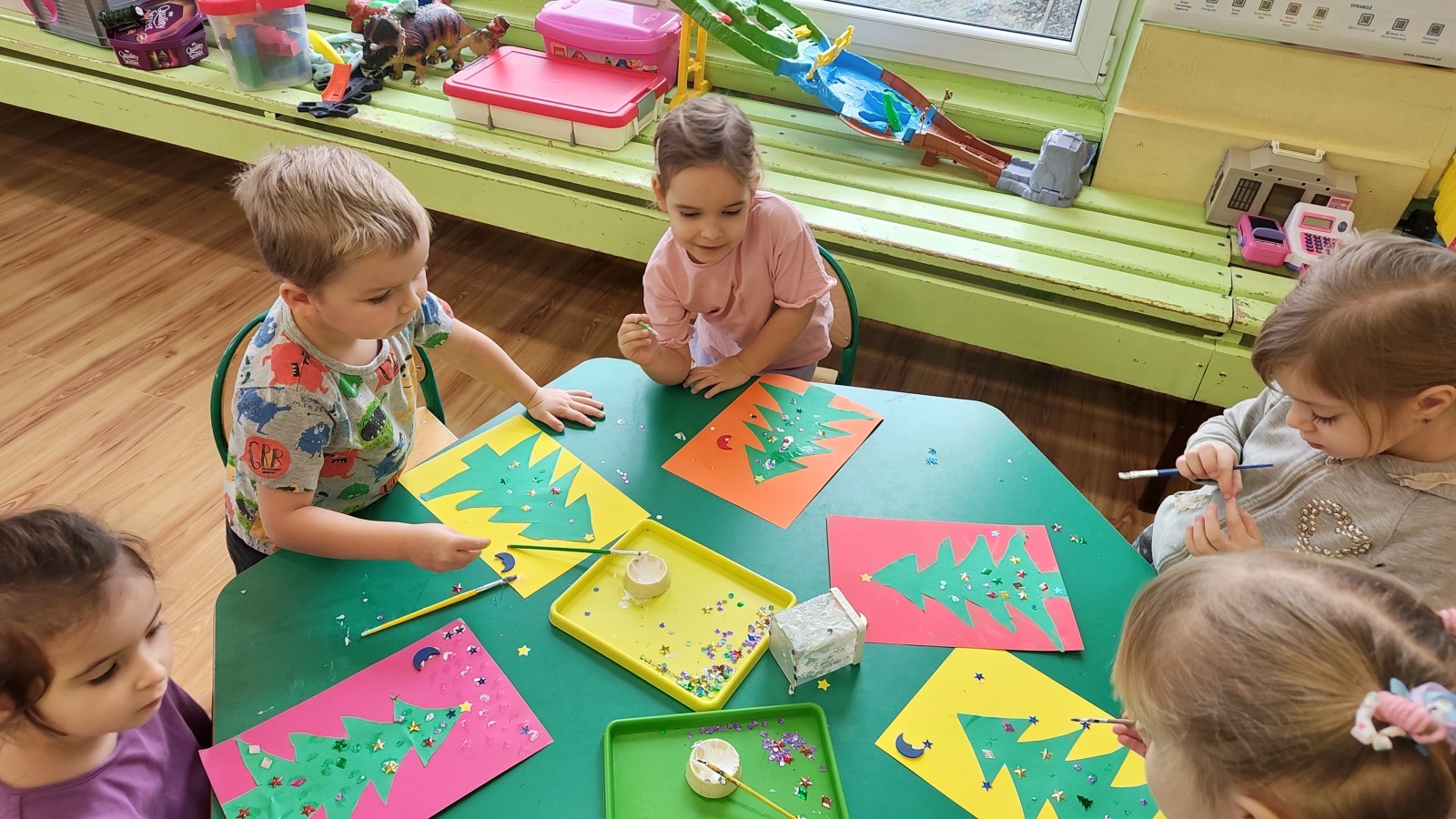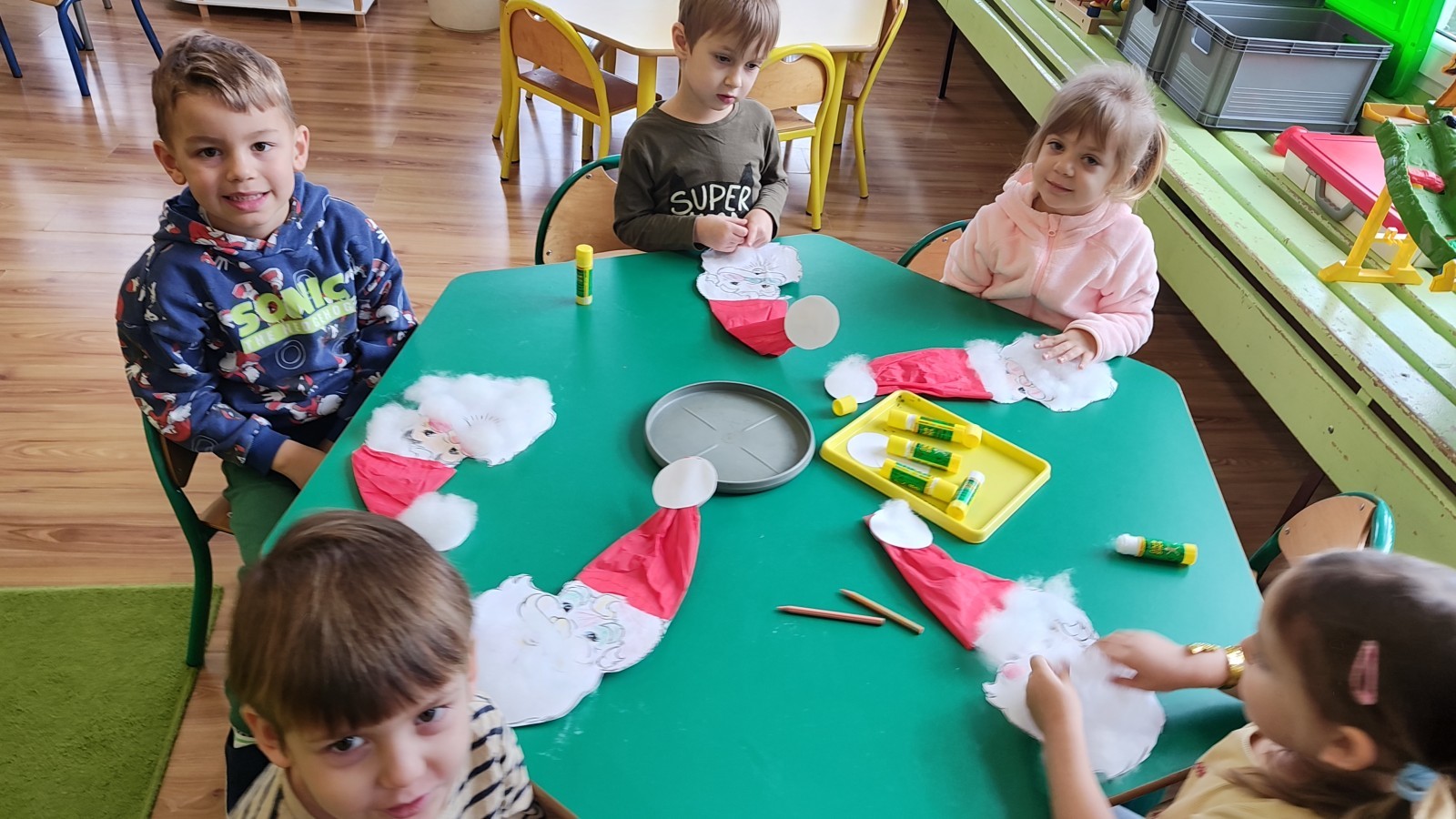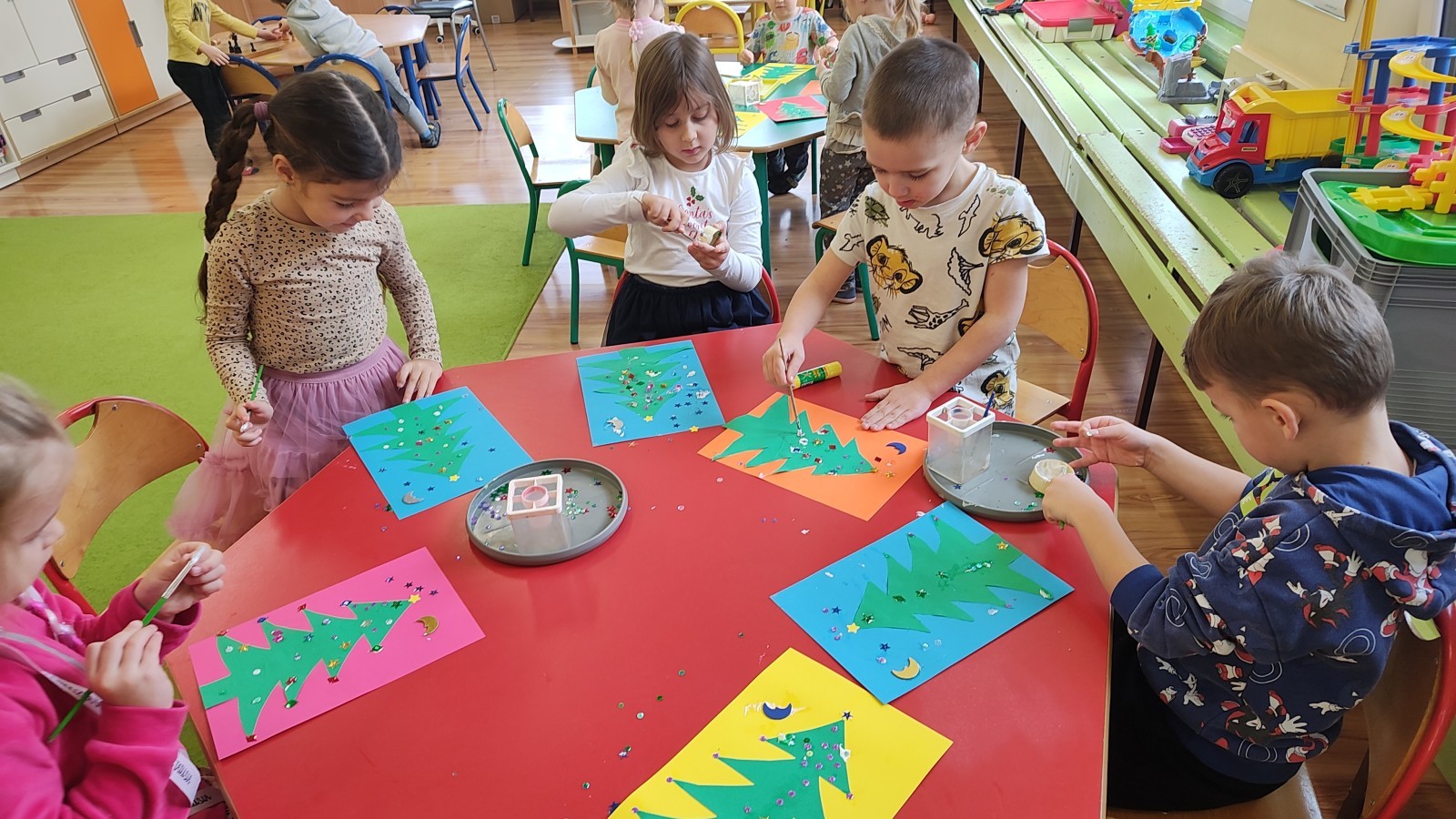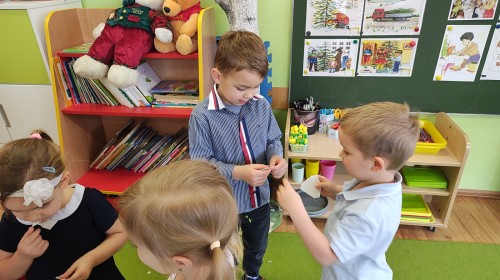 Grudzień dla Muchomorków był bardzo pracowity. Oprócz przygotowań na przyjęcie Mikołaja, ubierania choinki, wspólnej Wigilii, składania życzeń oraz przygotowania świątecznych upominków wykonywaliśmy wiele prac plastycznych wykorzystując różne techniki plastyczne. Potrafią lepić z plasteliny i masy solnej, malować farbami. Wykonujemy wiele ćwiczeń dbając o naszą postawę, a wykorzystujemy do tego różne przybory do ćwiczeń gimnastycznych. Poznaliśmy w tym miesiącu nowe literki, a znamy już 8 liter i uczymy się z nich układać proste wyrazy. Znamy cyfry: 1,2,3,4,5,6, i działamy w tym zakresie. Dalej ćwiczymy zapamiętując kolejne dni tygodnia i nazwy pór roku. Muchomorki w czasie zajęć dowolnych przy wykorzystaniu klocków różnego rodzaju uczą się planowania, projektowania. Podczas zabaw konstrukcyjnych współdziałają ze sobą, wymieniają się doświadczeniami, łączą swoje pomysły, a skutkiem ich działań są ciekawe pod względem konstrukcyjnym budowle. Zapraszamy do galerii.
