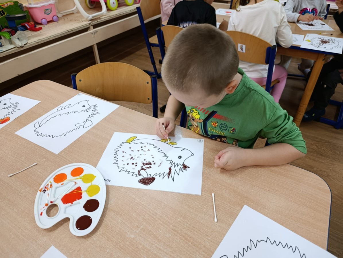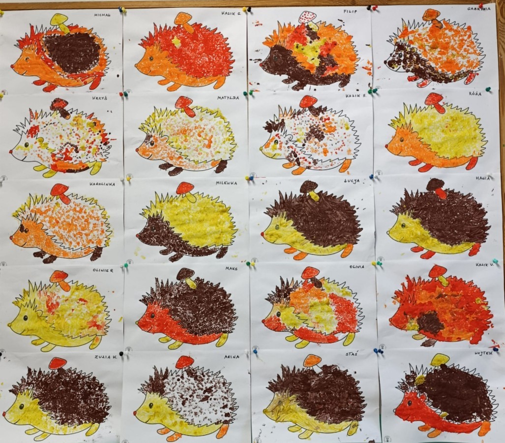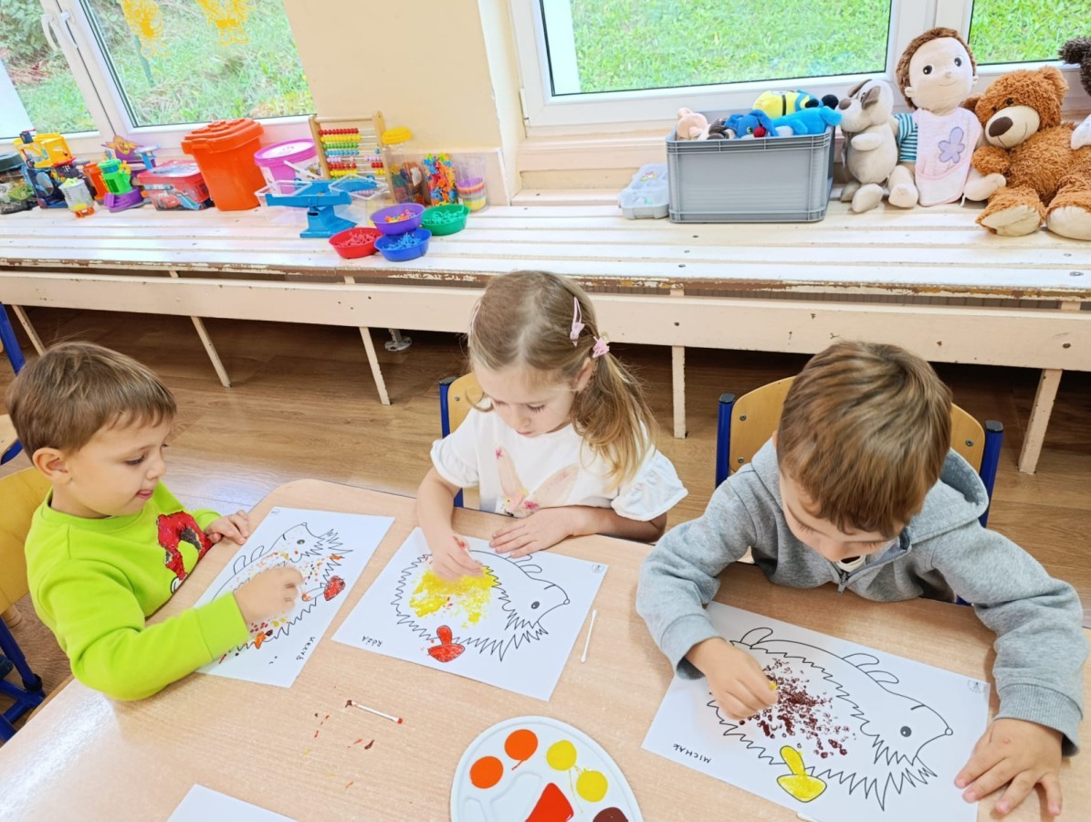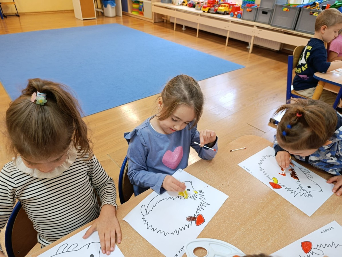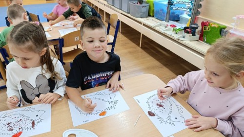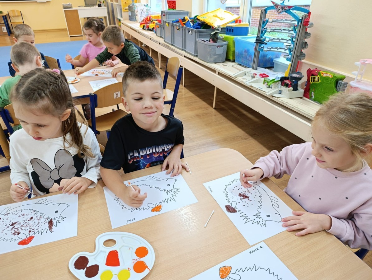 W pierwszym tygodniu października grupa „Jeżyków” wyruszyła w fascynującą podróż do świata kodowania i logicznego myślenia, oczywiście w jesiennej odsłonie. Nasze przedszkolaki uczyły się rozpoznawania sekwencji i rytmów z wykorzystaniem kubeczków oraz tworzyły rytmiczne układy, odtwarzały wzory, a także układały własne jesienne kody – wszystko w formie świetnej zabawy. Dzieci wykonały również jesienną pracę plastyczną "Jeżyk". Zajęcia wspierały rozwój spostrzegawczości, koncentracji i myślenia przyczynowo-skutkowego. Dla „Jeżyków” było to nie tylko ciekawe wyzwanie, ale też doskonała okazja do współpracy w grupie