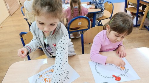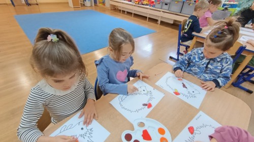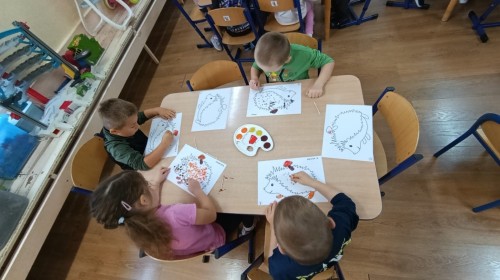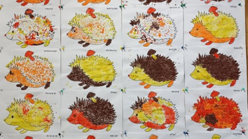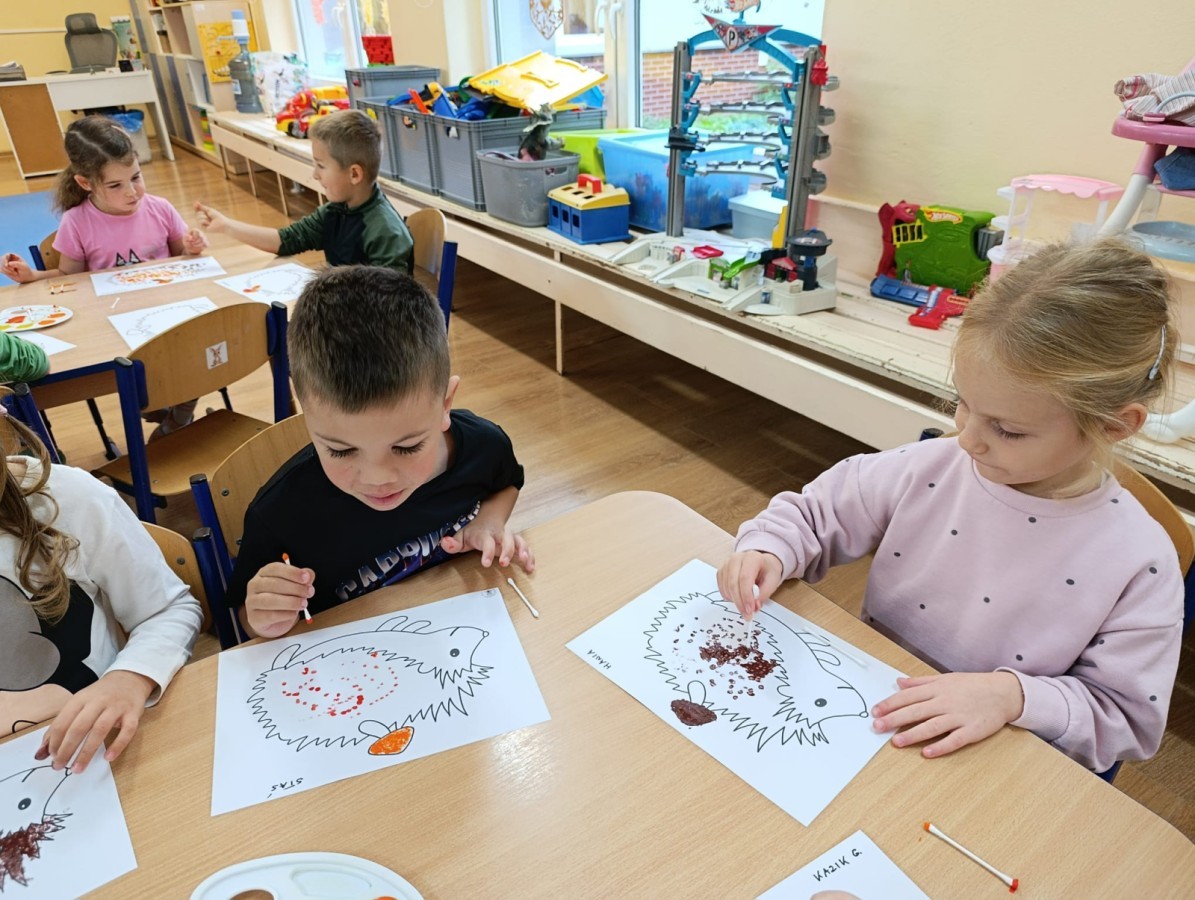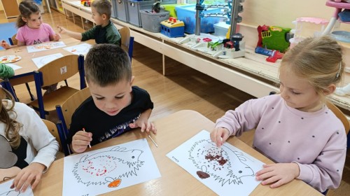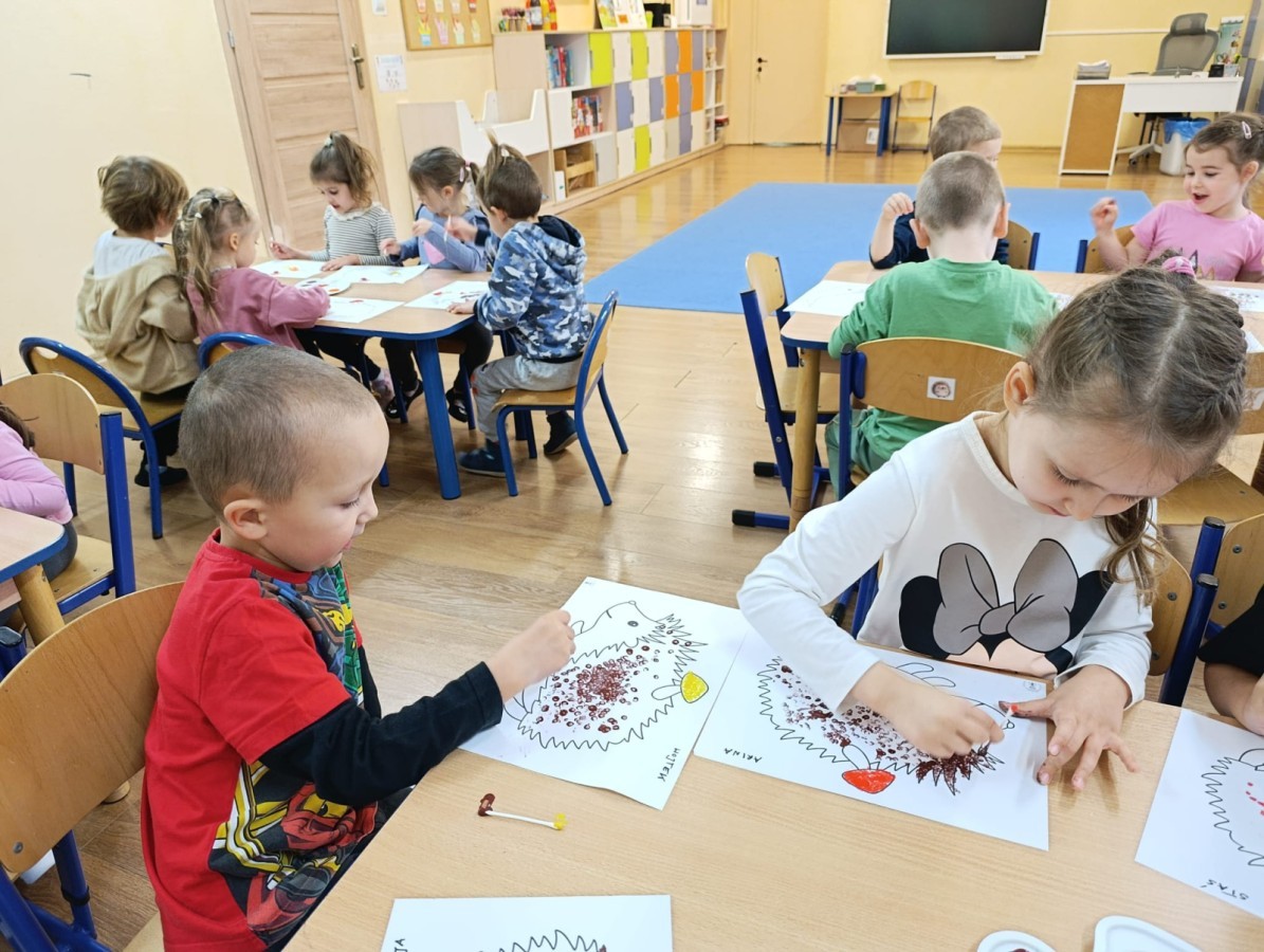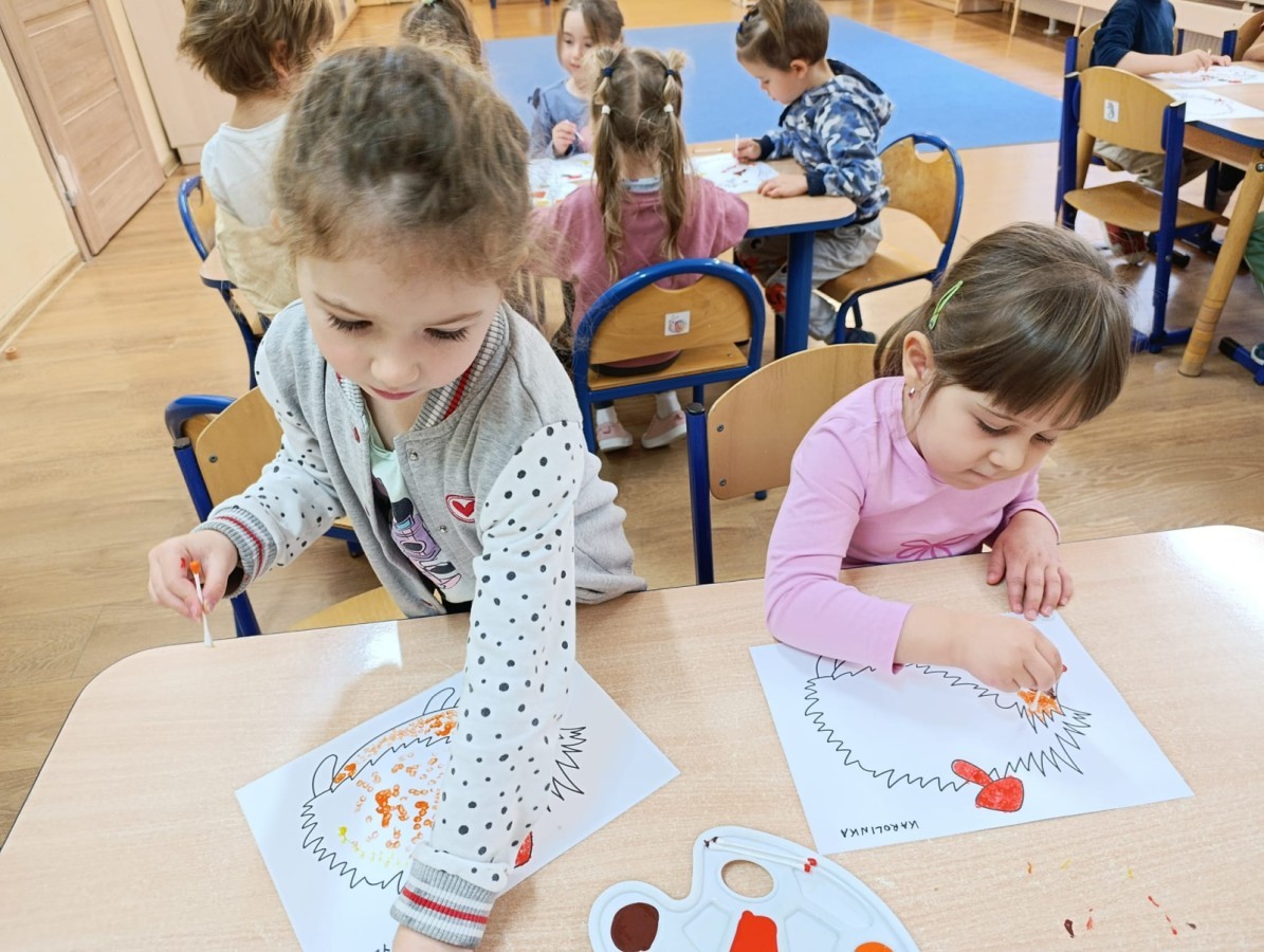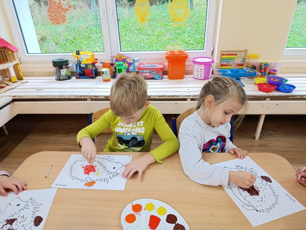 W pierwszym tygodniu października grupa „Jeżyków” wyruszyła w fascynującą podróż do świata kodowania i logicznego myślenia, oczywiście w jesiennej odsłonie. Nasze przedszkolaki uczyły się rozpoznawania sekwencji i rytmów z wykorzystaniem kubeczków oraz tworzyły rytmiczne układy, odtwarzały wzory, a także układały własne jesienne kody – wszystko w formie świetnej zabawy. Dzieci wykonały również jesienną pracę plastyczną "Jeżyk". Zajęcia wspierały rozwój spostrzegawczości, koncentracji i myślenia przyczynowo-skutkowego. Dla „Jeżyków” było to nie tylko ciekawe wyzwanie, ale też doskonała okazja do współpracy w grupie
