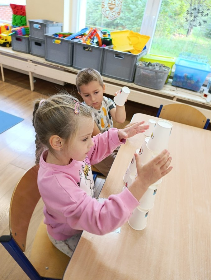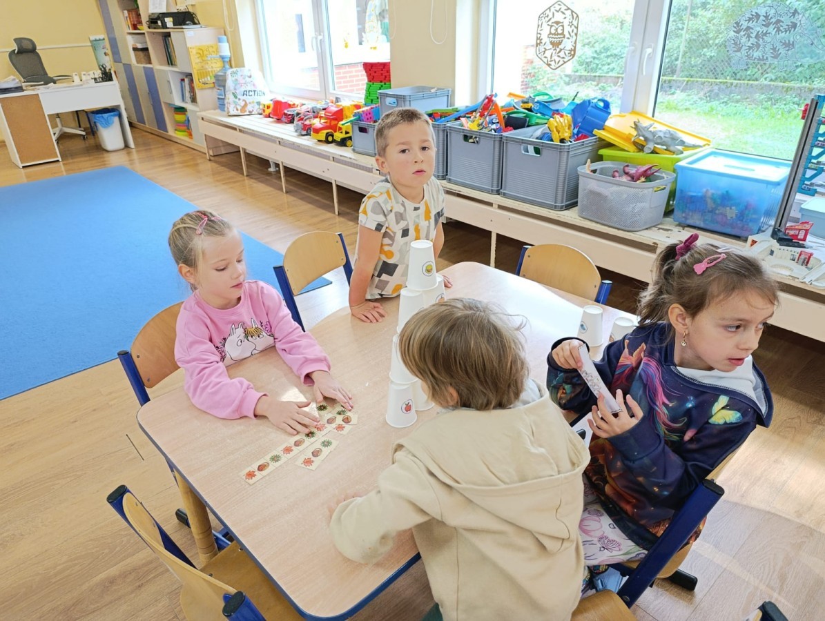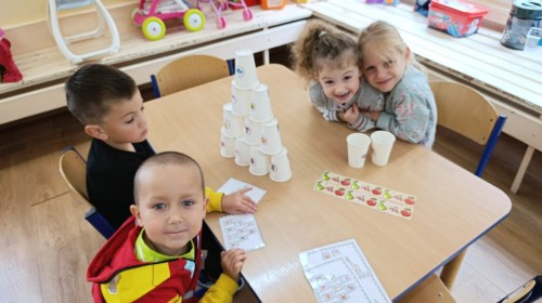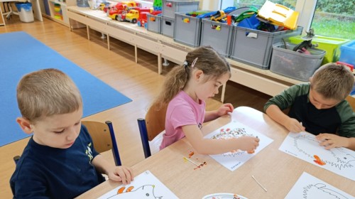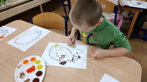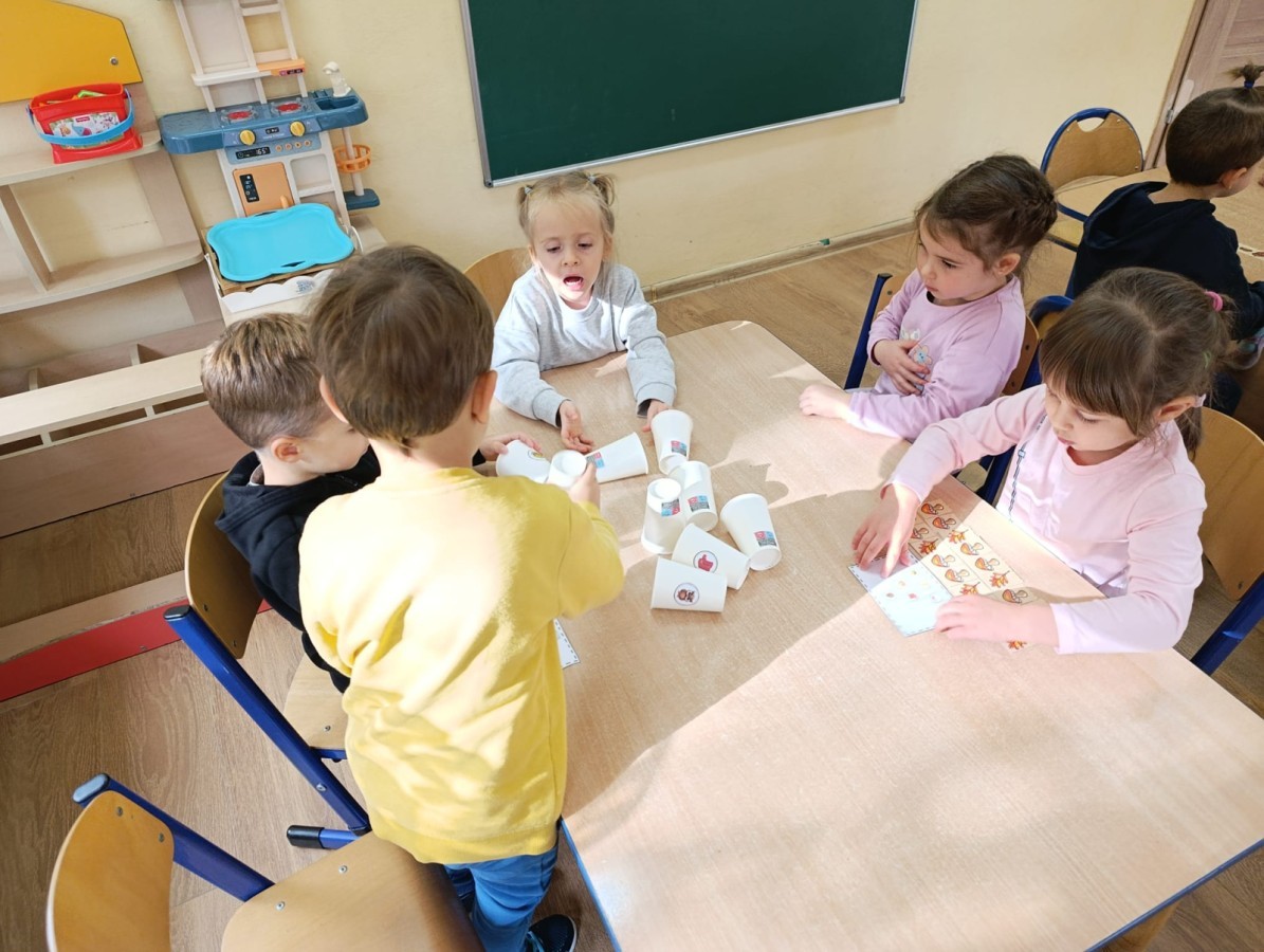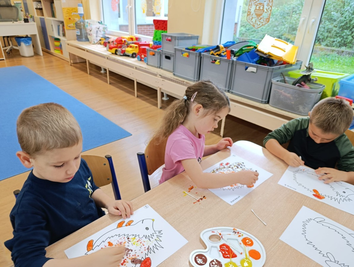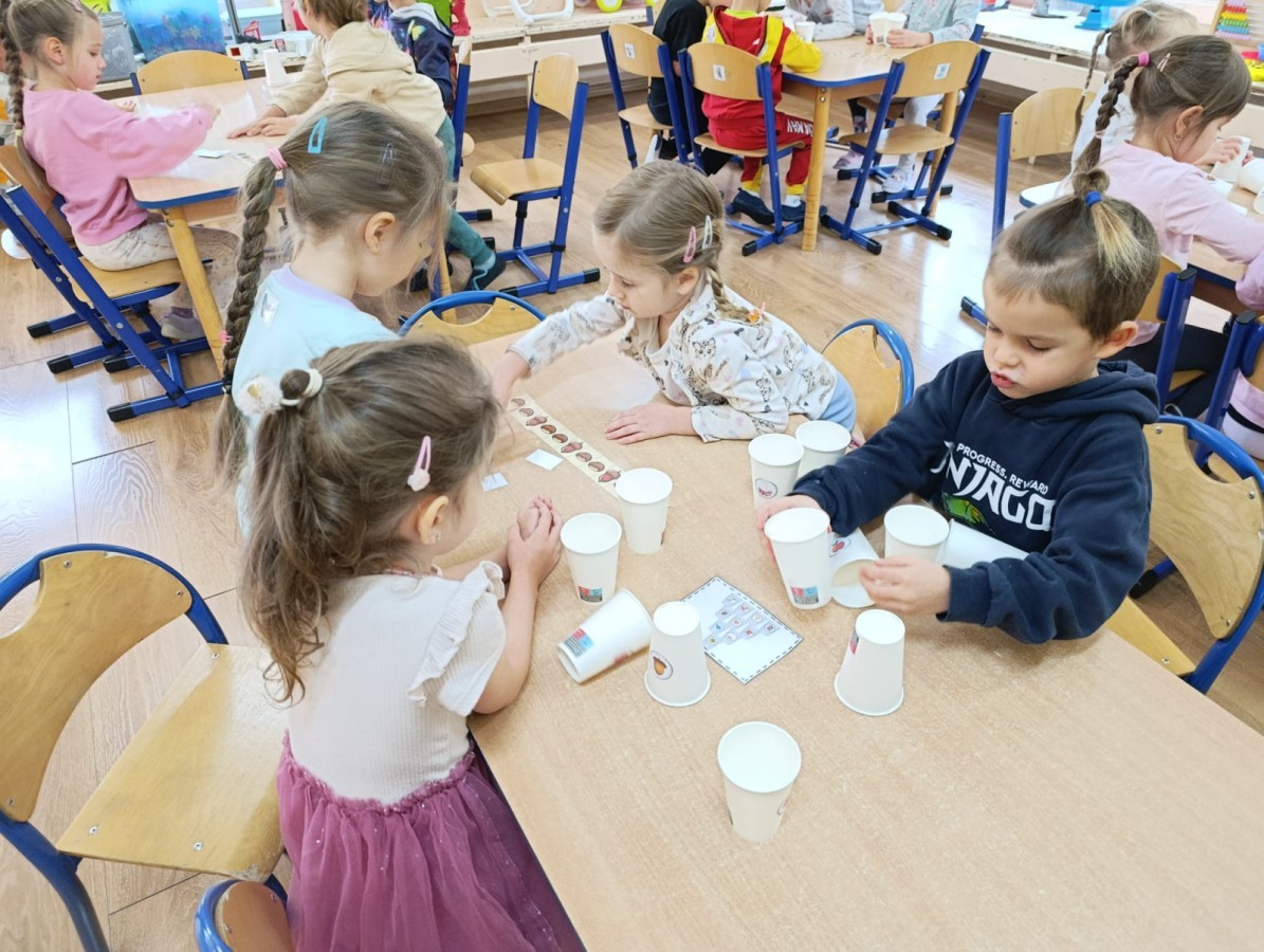 W pierwszym tygodniu października grupa „Jeżyków” wyruszyła w fascynującą podróż do świata kodowania i logicznego myślenia, oczywiście w jesiennej odsłonie. Nasze przedszkolaki uczyły się rozpoznawania sekwencji i rytmów z wykorzystaniem kubeczków oraz tworzyły rytmiczne układy, odtwarzały wzory, a także układały własne jesienne kody – wszystko w formie świetnej zabawy. Dzieci wykonały również jesienną pracę plastyczną "Jeżyk". Zajęcia wspierały rozwój spostrzegawczości, koncentracji i myślenia przyczynowo-skutkowego. Dla „Jeżyków” było to nie tylko ciekawe wyzwanie, ale też doskonała okazja do współpracy w grupie