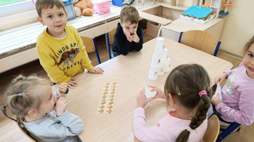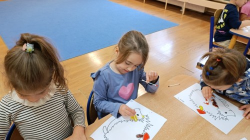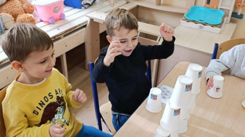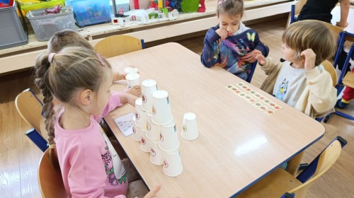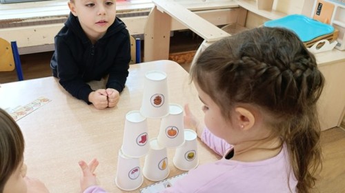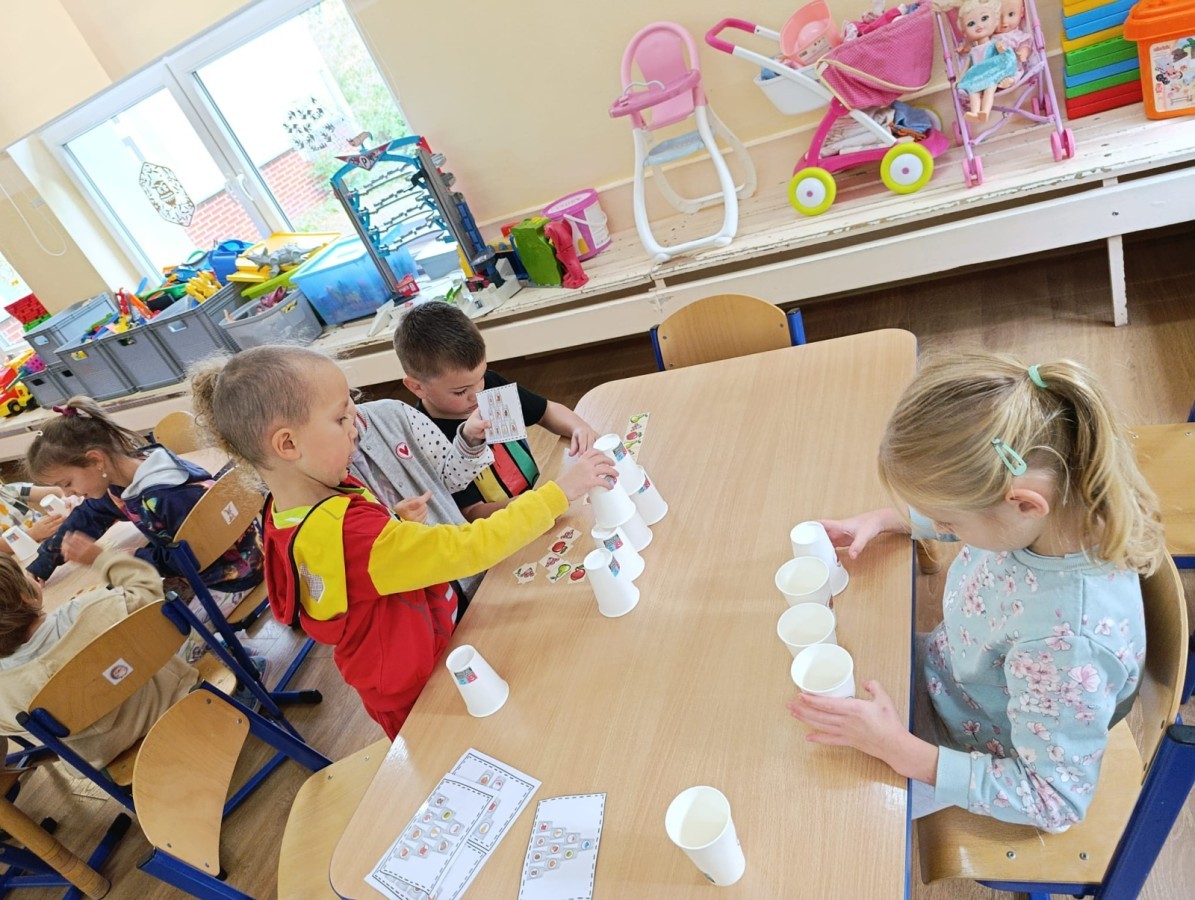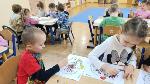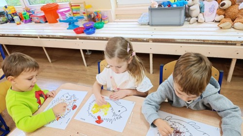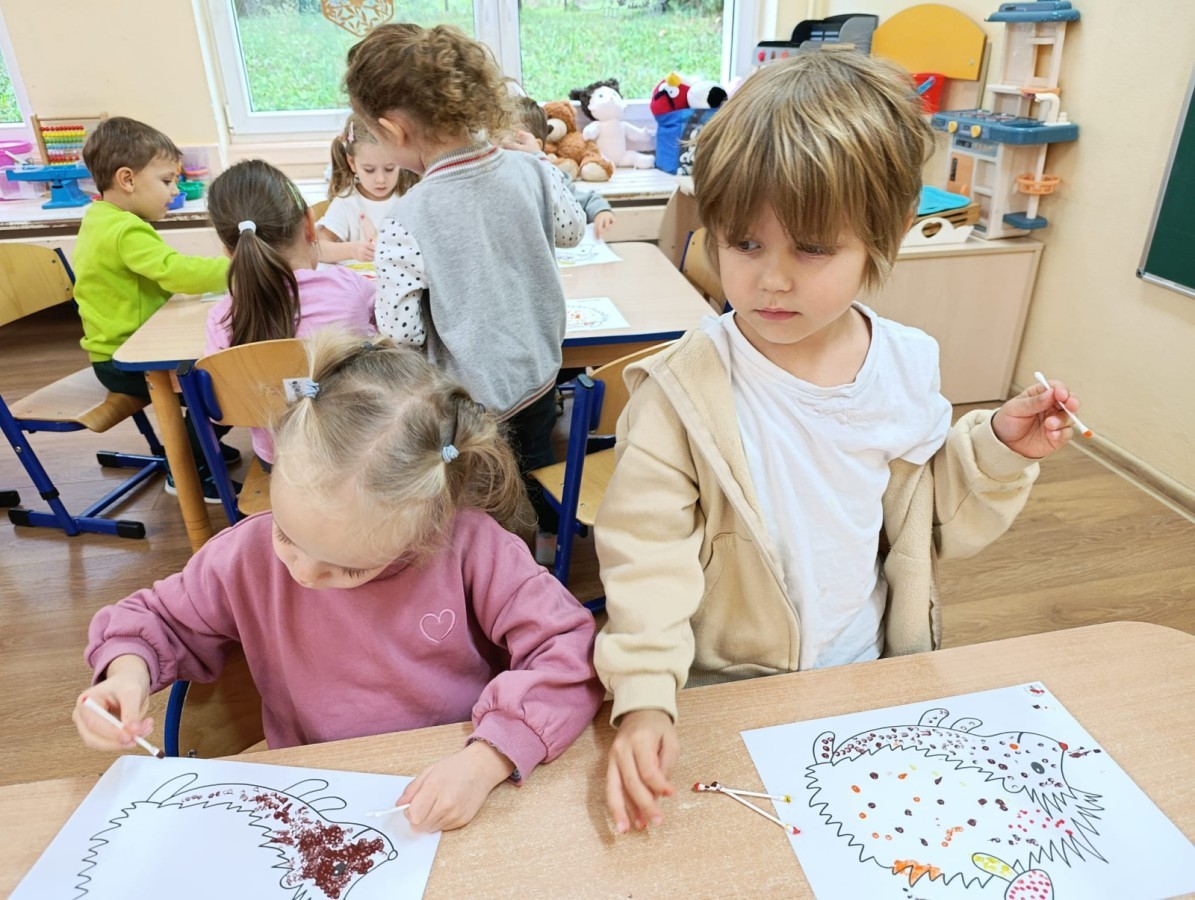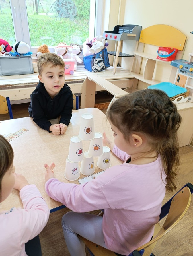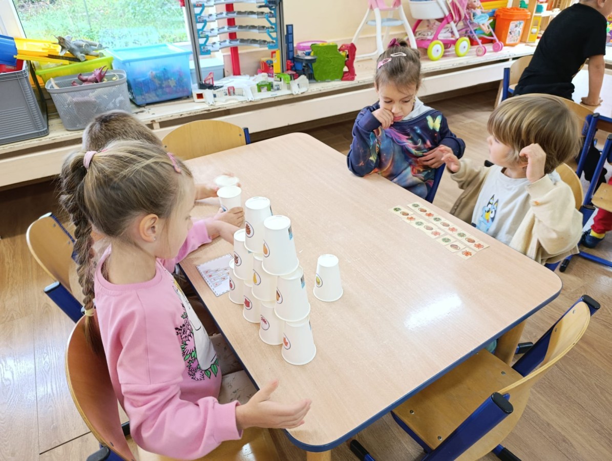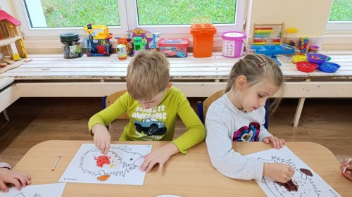 W pierwszym tygodniu października grupa „Jeżyków” wyruszyła w fascynującą podróż do świata kodowania i logicznego myślenia, oczywiście w jesiennej odsłonie. Nasze przedszkolaki uczyły się rozpoznawania sekwencji i rytmów z wykorzystaniem kubeczków oraz tworzyły rytmiczne układy, odtwarzały wzory, a także układały własne jesienne kody – wszystko w formie świetnej zabawy. Dzieci wykonały również jesienną pracę plastyczną "Jeżyk". Zajęcia wspierały rozwój spostrzegawczości, koncentracji i myślenia przyczynowo-skutkowego. Dla „Jeżyków” było to nie tylko ciekawe wyzwanie, ale też doskonała okazja do współpracy w grupie