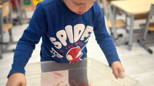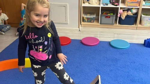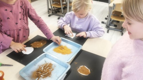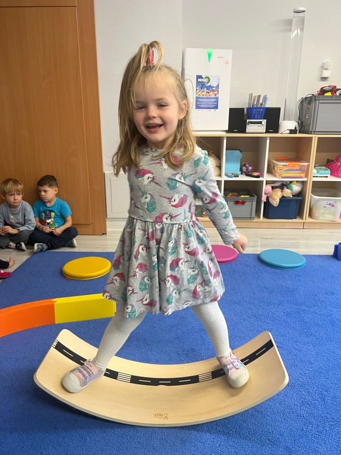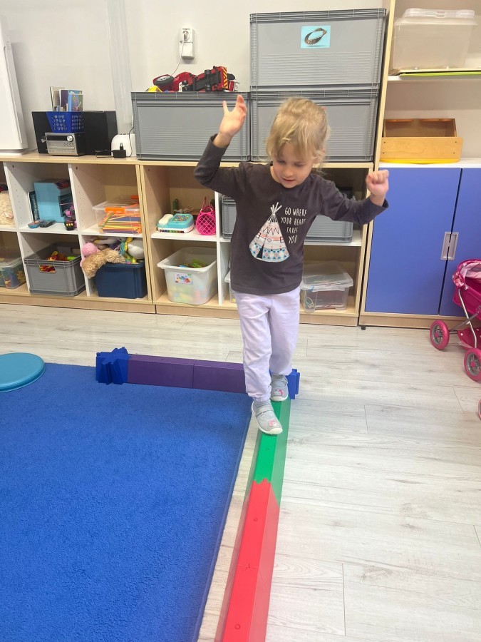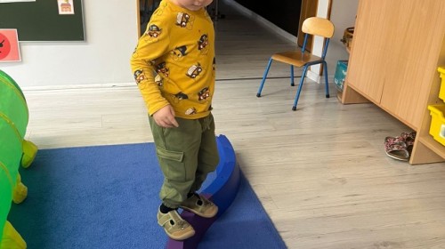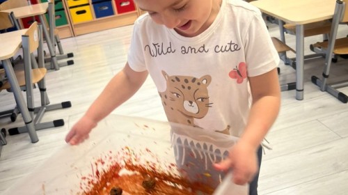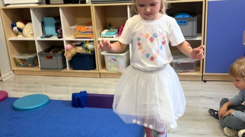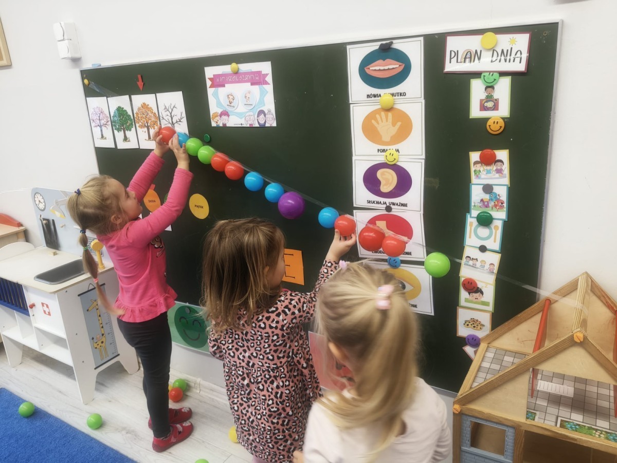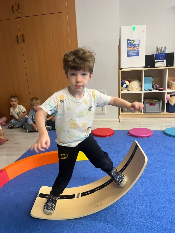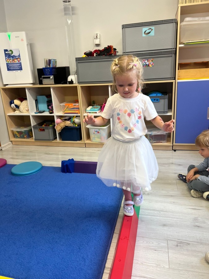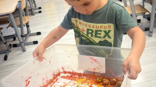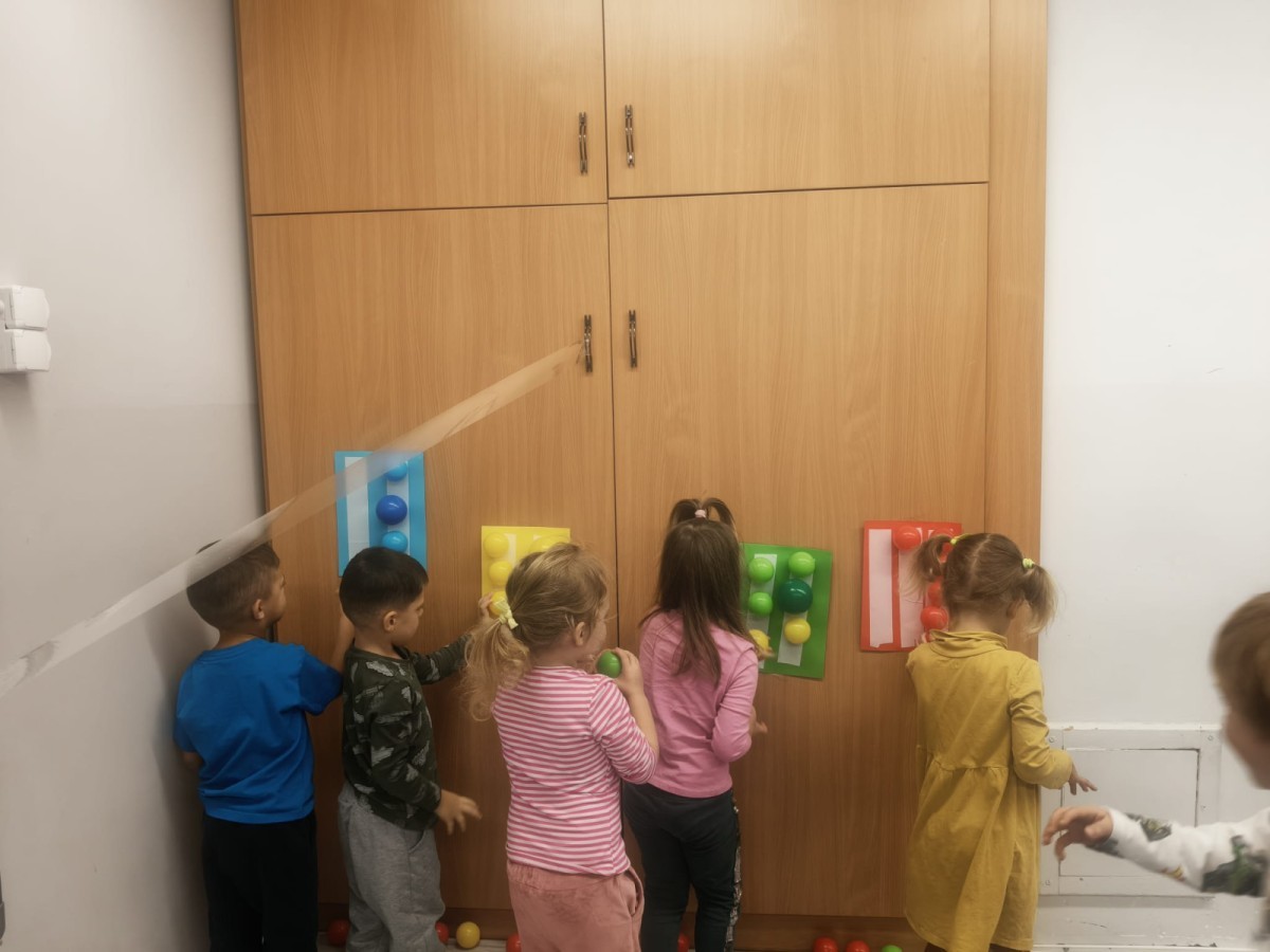 W dwóch ostatnich tygodniach w przedszkolu w grupie "Wiewiórek" dzieci bardzo dużo poznawały lub bawiły się poprzez różne zmysły i ruch. Do zajęć wykorzystywaliśmy chustę animacyjną, mnóstwo kolorowych piłek oraz nowy tor przeszkód. Te zabawy były świetnym sposobem na wsparcie i rozwijanie motoryki dużej i małej, koordynacji oraz integracji sensorycznej. Przy okazji dzieci utrwalały sobie nazwy kolorów, doskonaliły segregację i równowagę. "Wiewiórki" bawiły się też kolorem podczas zabaw z kasztanami, którymi malowały kartki - przy świetnej zabawie darami natury powstały, tak jakby przy okazji, wspaniałe prace plastyczne. Dzieci miały też okazję zrobić samodzielnie ogórki korniszone - dzięki temu poznały jeden ze sposobów robienia przetworów na zimę, a że takie ogórki szybko się robią, to dzieci miały już możliwość degustacji. Rozmawialiśmy tez o walorach zdrowotnych jedzenia kiszonych rzeczy. Nie zabrakło również próbowania innych warzyw. A na koniec tego tygodnia dzieci uczyły się posługiwać nożyczkami, by później przez zabawę różnymi kolorami przypraw ozdabiać sylwety jabłuszek. Do gotowego obrazka wykonanego w ten sposób doklejały kolorowe liście.