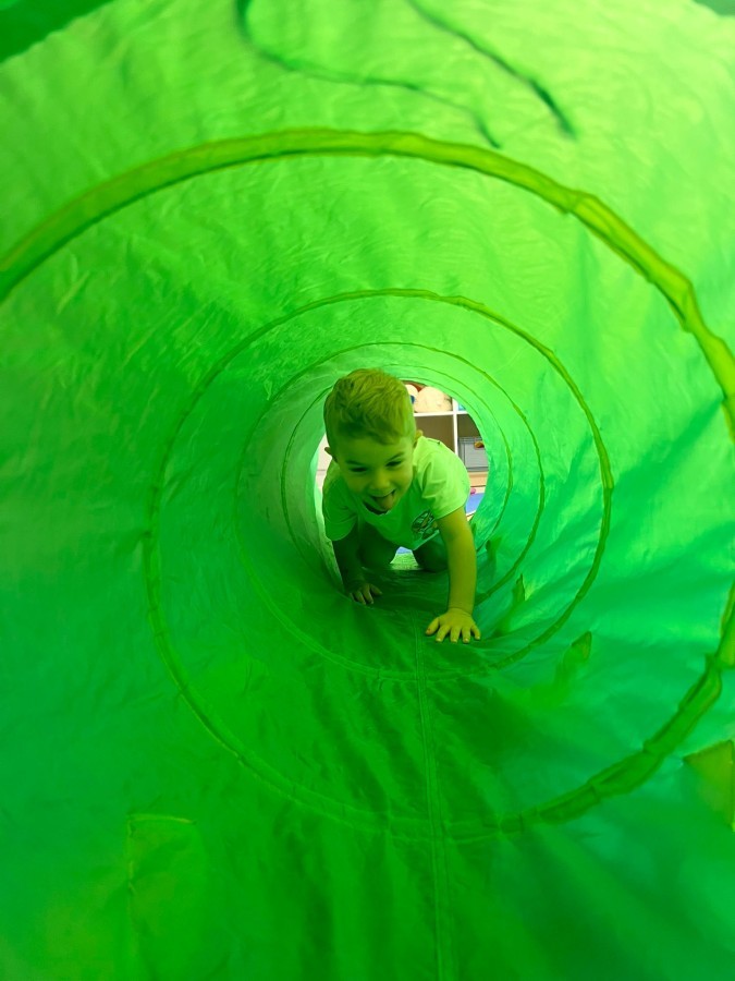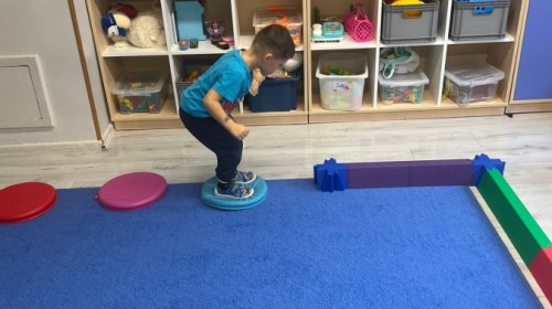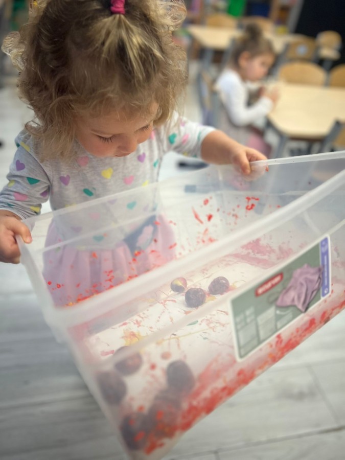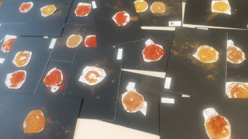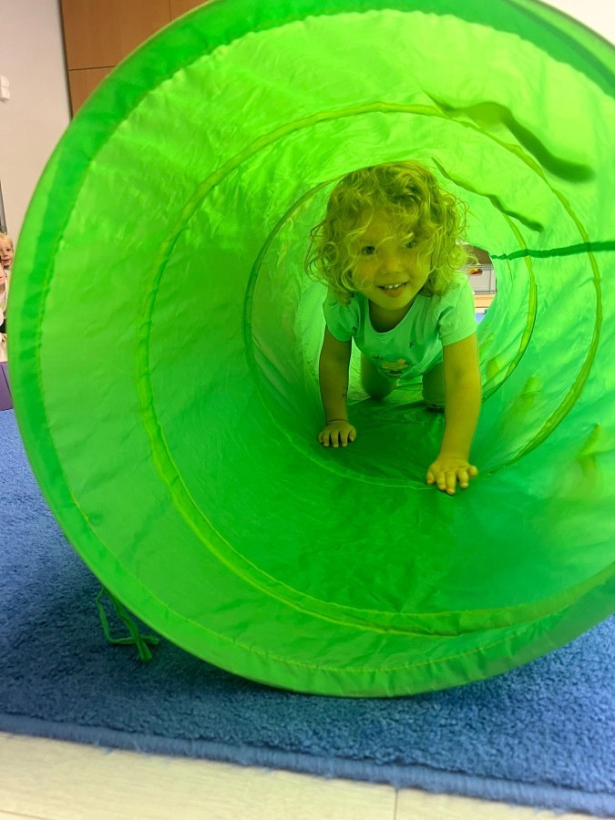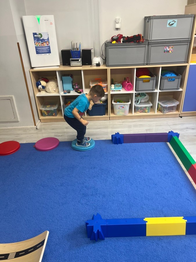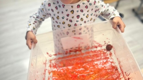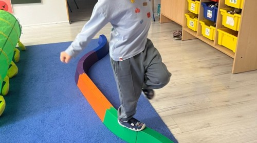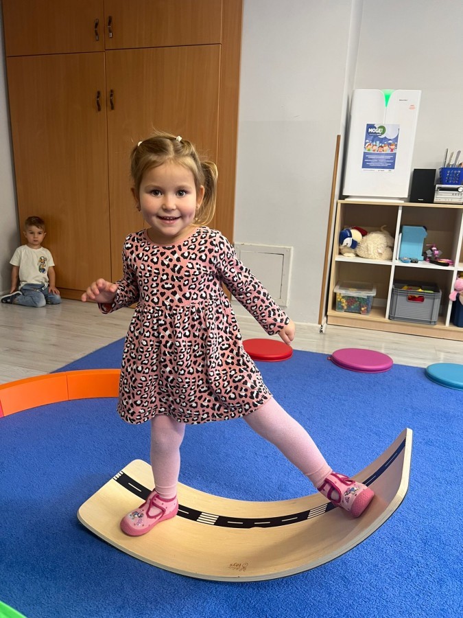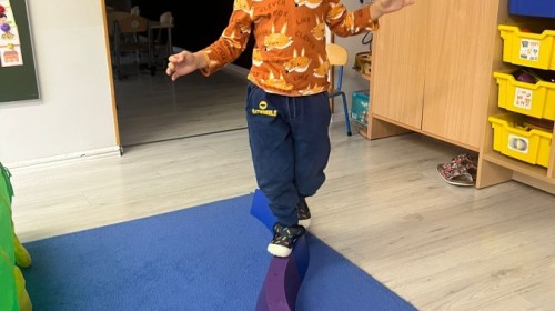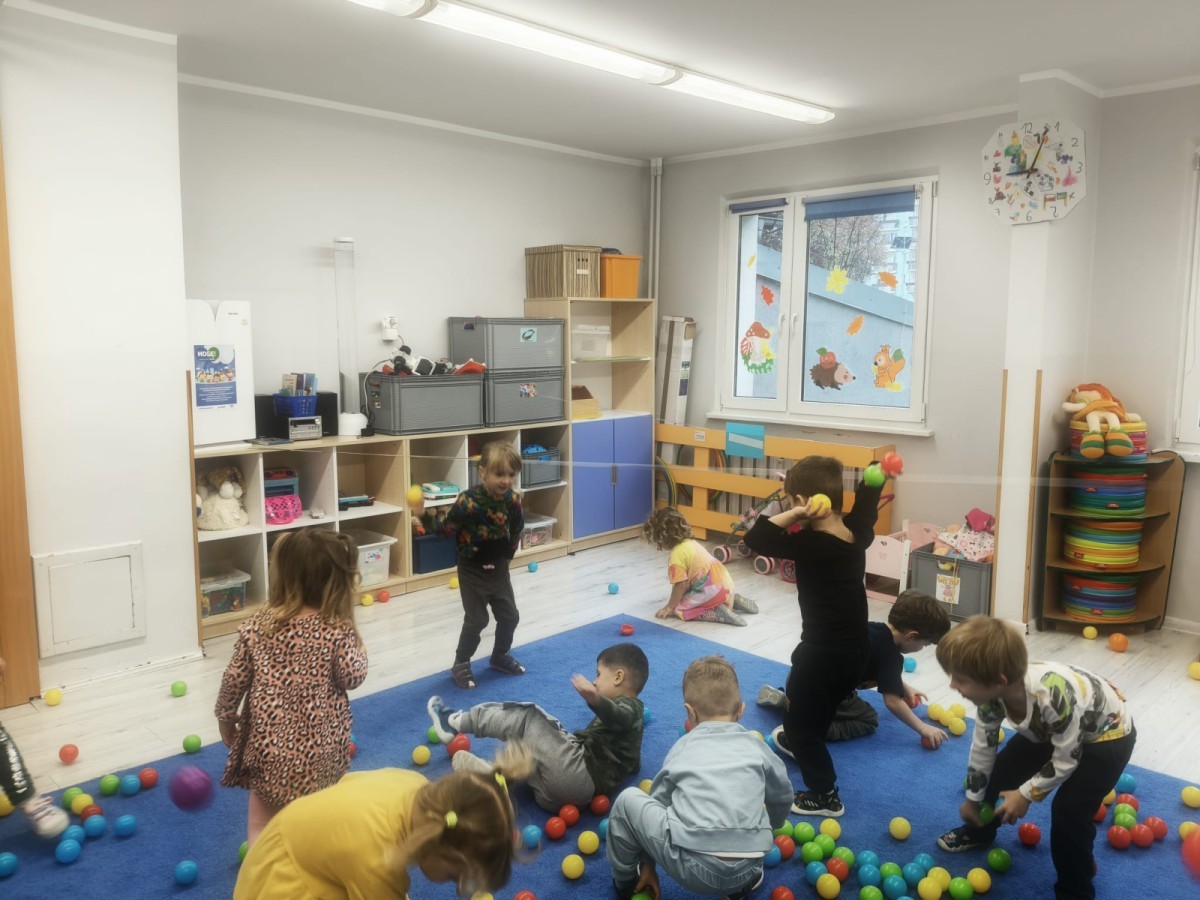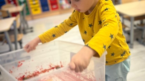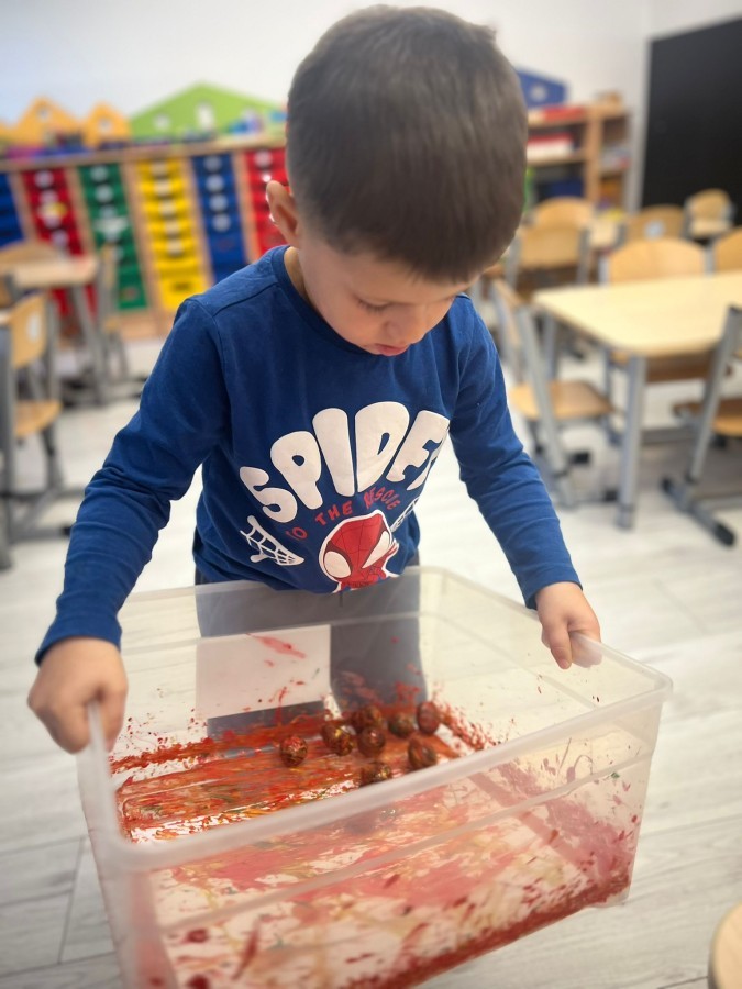 W dwóch ostatnich tygodniach w przedszkolu w grupie "Wiewiórek" dzieci bardzo dużo poznawały lub bawiły się poprzez różne zmysły i ruch. Do zajęć wykorzystywaliśmy chustę animacyjną, mnóstwo kolorowych piłek oraz nowy tor przeszkód. Te zabawy były świetnym sposobem na wsparcie i rozwijanie motoryki dużej i małej, koordynacji oraz integracji sensorycznej. Przy okazji dzieci utrwalały sobie nazwy kolorów, doskonaliły segregację i równowagę. "Wiewiórki" bawiły się też kolorem podczas zabaw z kasztanami, którymi malowały kartki - przy świetnej zabawie darami natury powstały, tak jakby przy okazji, wspaniałe prace plastyczne. Dzieci miały też okazję zrobić samodzielnie ogórki korniszone - dzięki temu poznały jeden ze sposobów robienia przetworów na zimę, a że takie ogórki szybko się robią, to dzieci miały już możliwość degustacji. Rozmawialiśmy tez o walorach zdrowotnych jedzenia kiszonych rzeczy. Nie zabrakło również próbowania innych warzyw. A na koniec tego tygodnia dzieci uczyły się posługiwać nożyczkami, by później przez zabawę różnymi kolorami przypraw ozdabiać sylwety jabłuszek. Do gotowego obrazka wykonanego w ten sposób doklejały kolorowe liście.