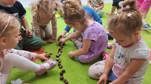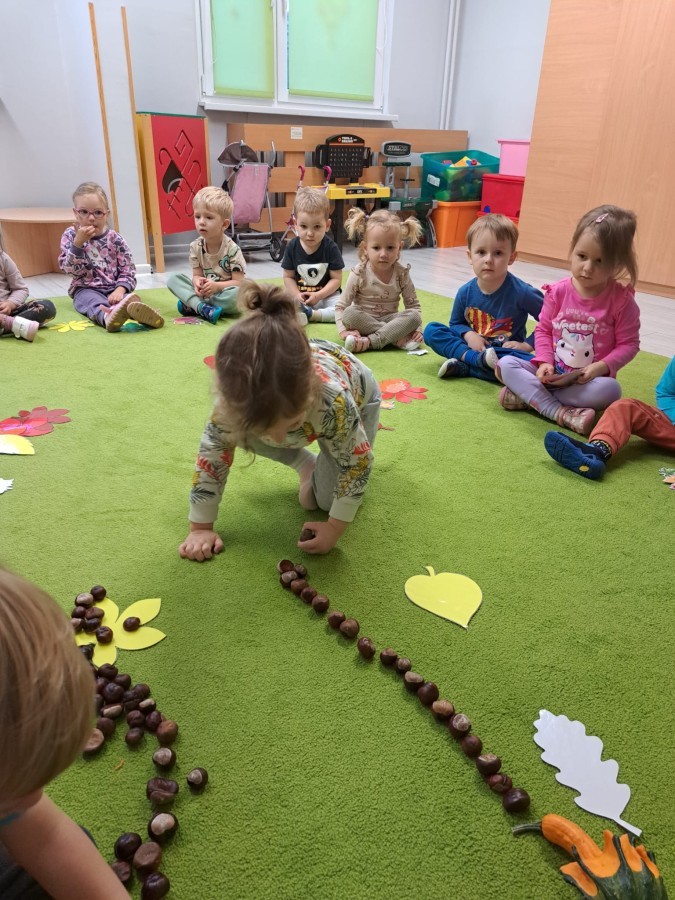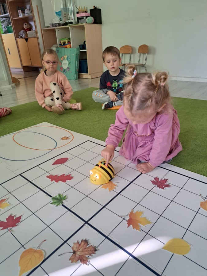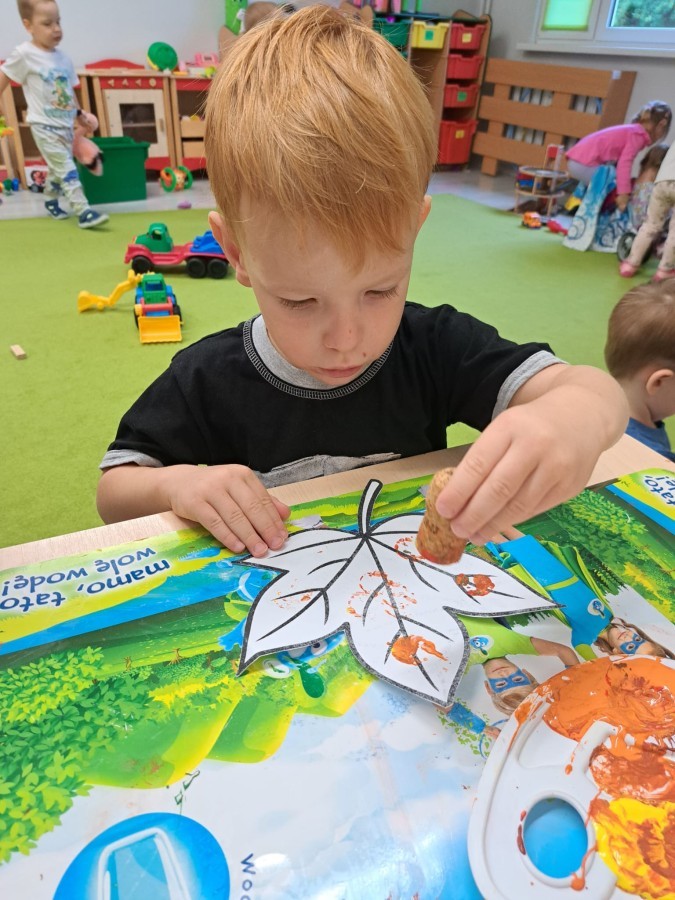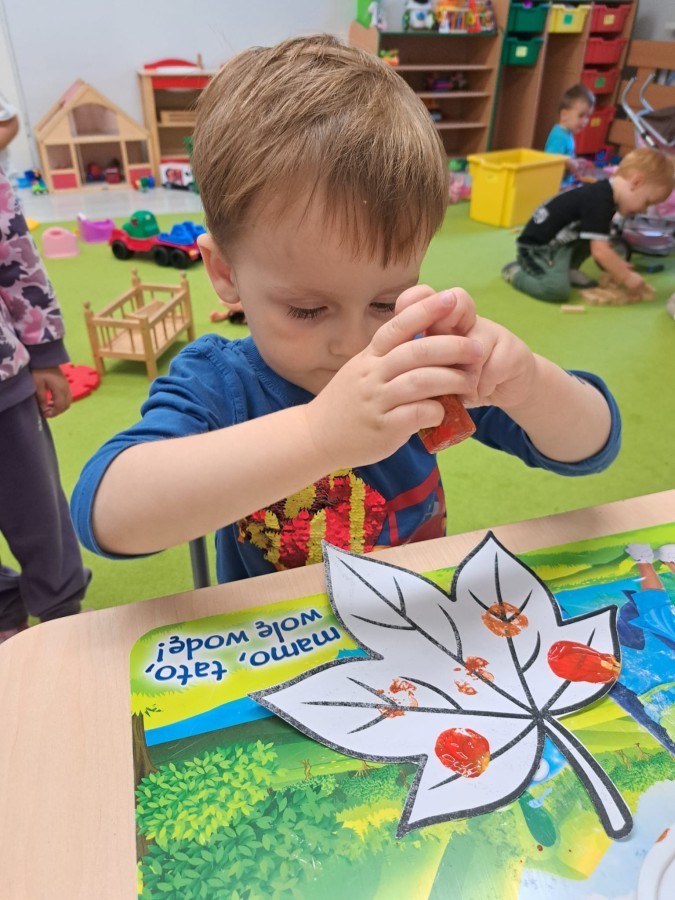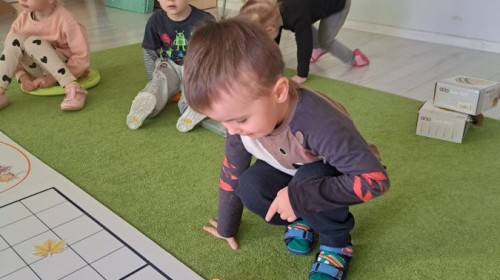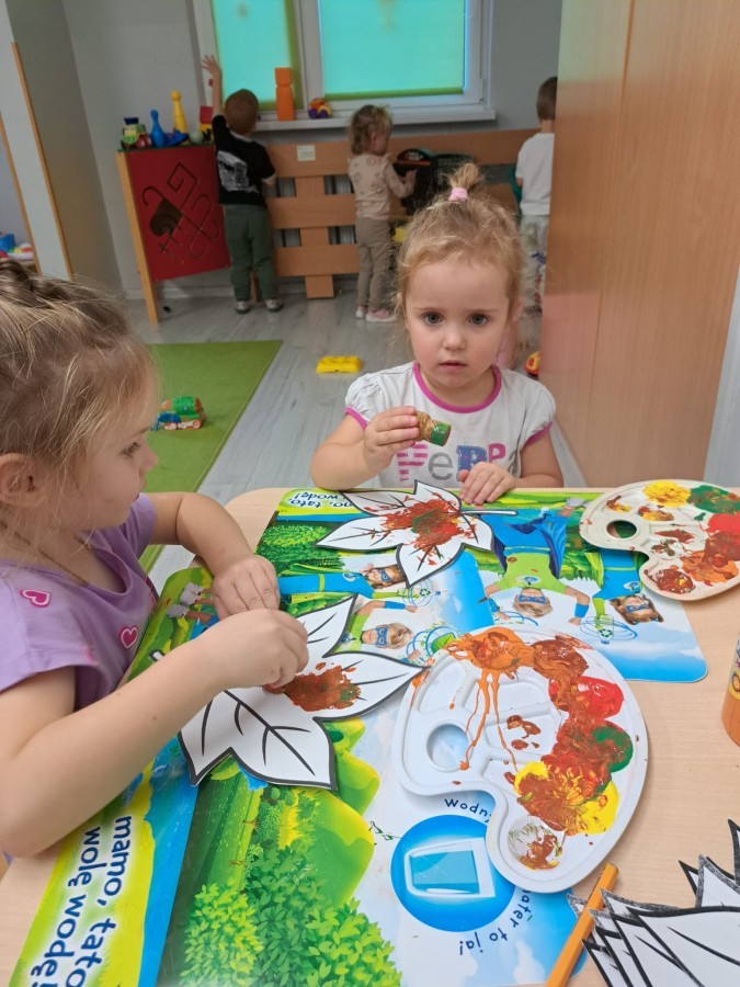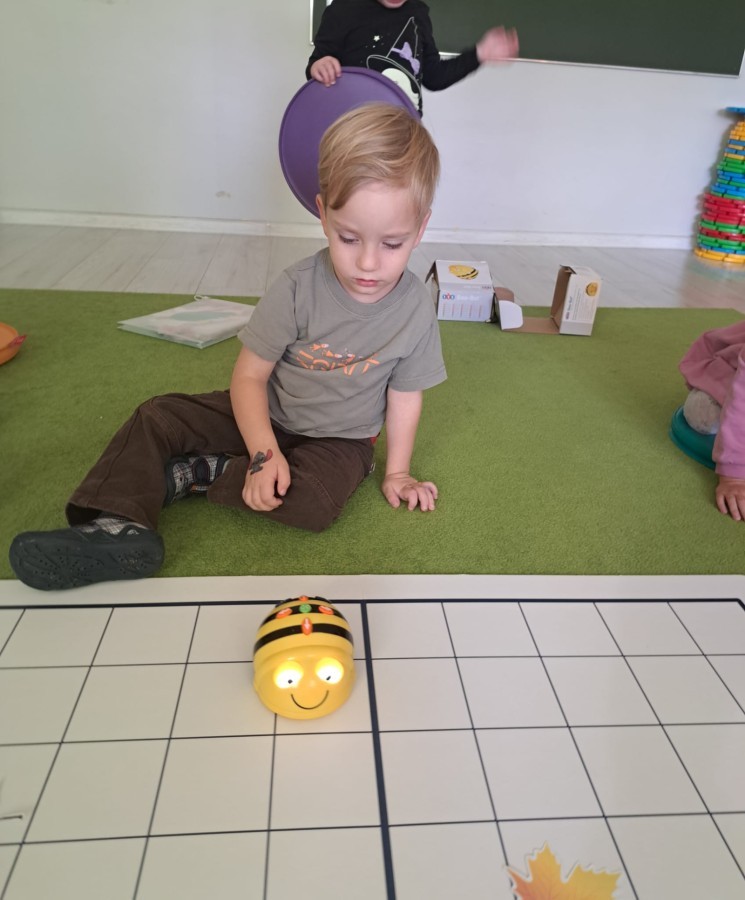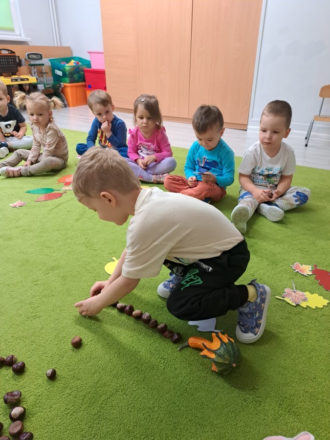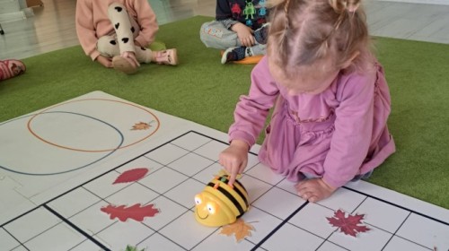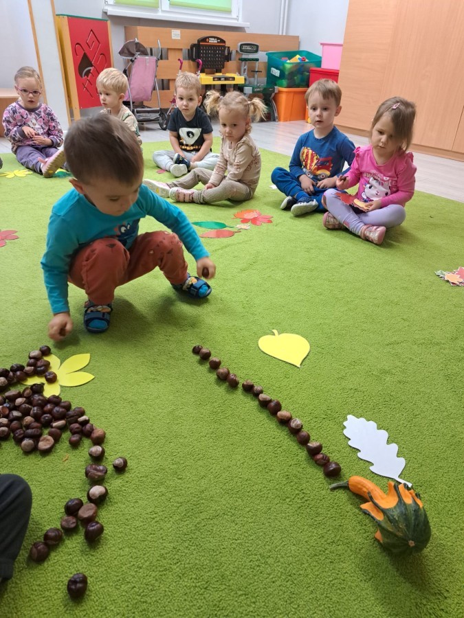 Grupa "Liski" rozpoczęła jesienne przygody od twórczej pracy plastycznej – pieczątkowania kolorowych liści. Dzieci z radością odkrywały barwy jesieni, a ich prace ozdobiły naszą galerię. Nie zabrakło też wspólnych zabaw z liśćmi i kasztanami, które dostarczyły wielu wrażeń sensorycznych i świetnej zabawy. Podczas zajęć edukacyjnych "Liski" rozwijały także swoje umiejętności logicznego myślenia, biorąc udział w kodowaniu z pomocą pszczółki Bee-Bot – ucząc się poprzez ruch, zabawę i współpracę.