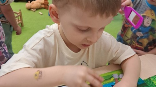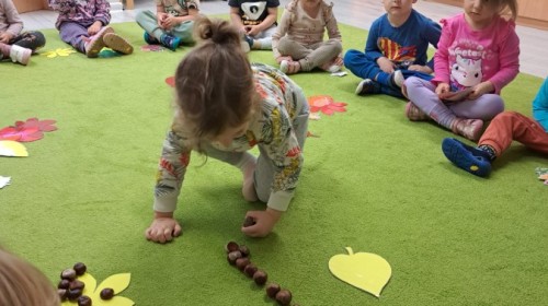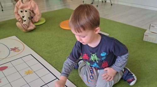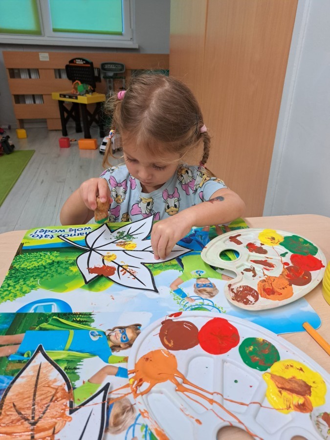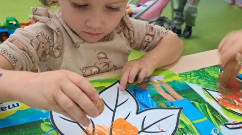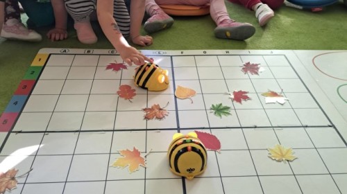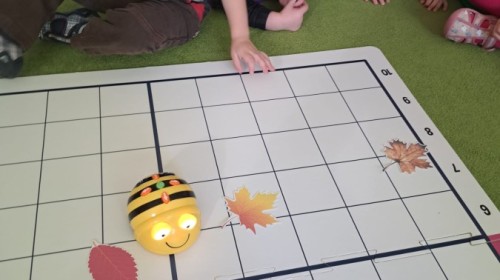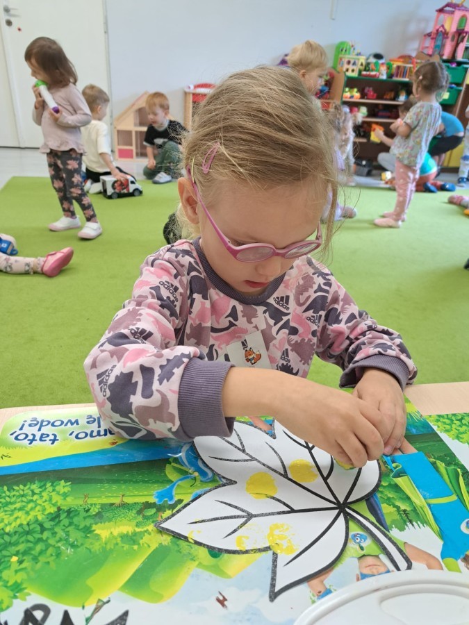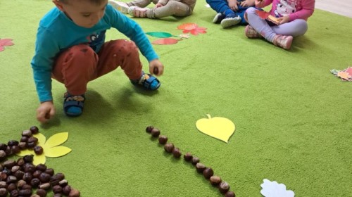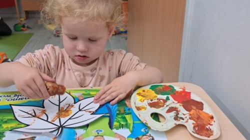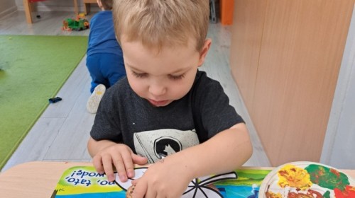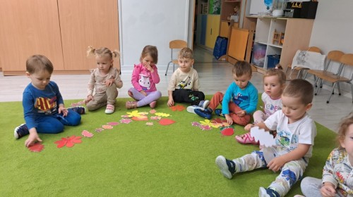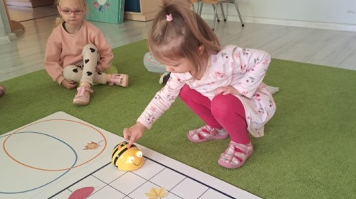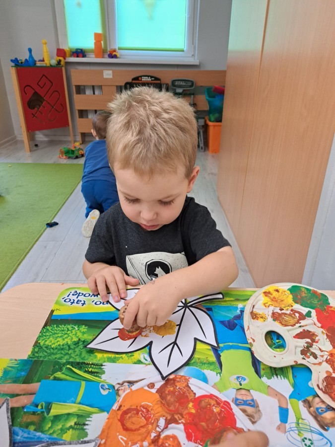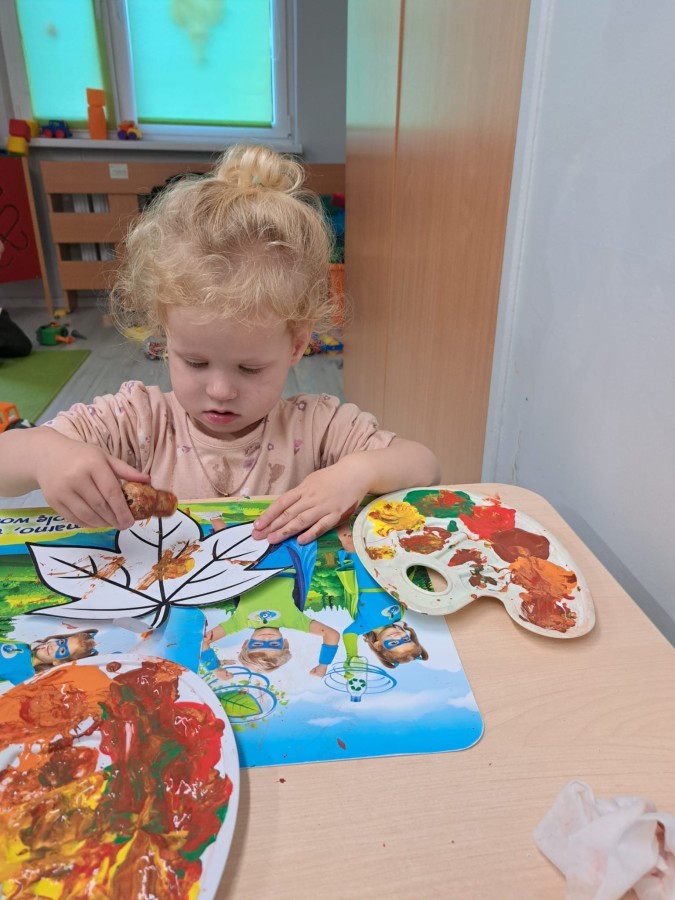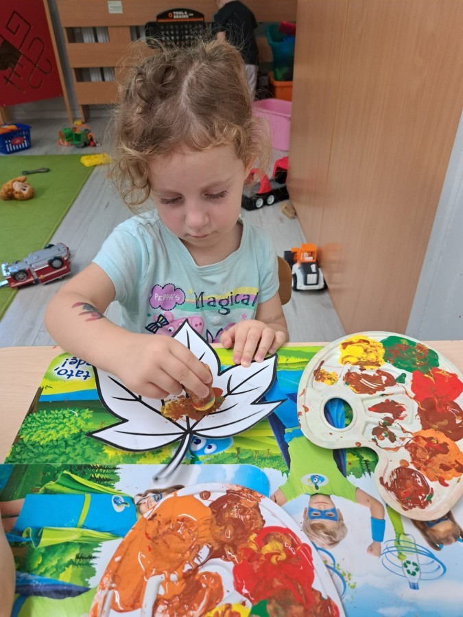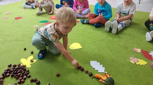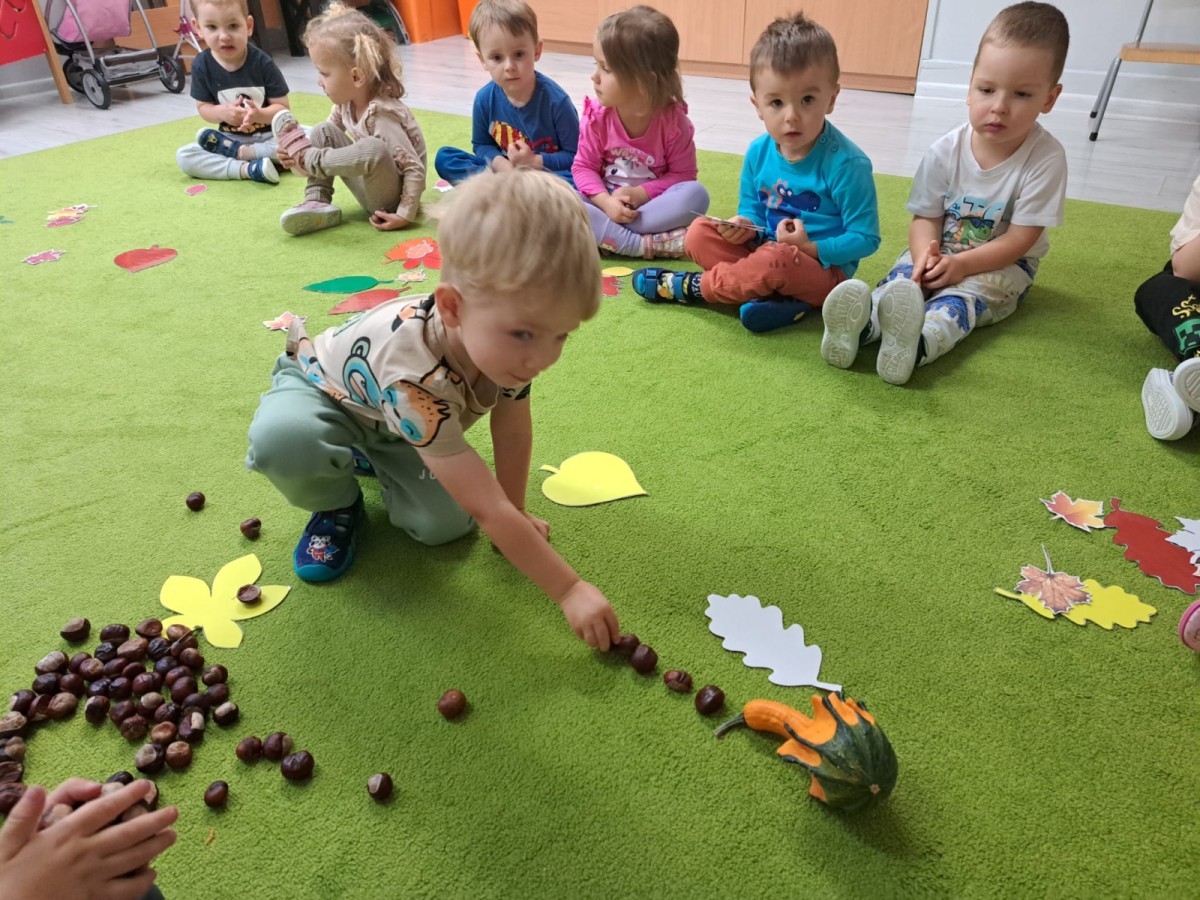 Grupa "Liski" rozpoczęła jesienne przygody od twórczej pracy plastycznej – pieczątkowania kolorowych liści. Dzieci z radością odkrywały barwy jesieni, a ich prace ozdobiły naszą galerię. Nie zabrakło też wspólnych zabaw z liśćmi i kasztanami, które dostarczyły wielu wrażeń sensorycznych i świetnej zabawy. Podczas zajęć edukacyjnych "Liski" rozwijały także swoje umiejętności logicznego myślenia, biorąc udział w kodowaniu z pomocą pszczółki Bee-Bot – ucząc się poprzez ruch, zabawę i współpracę.