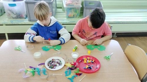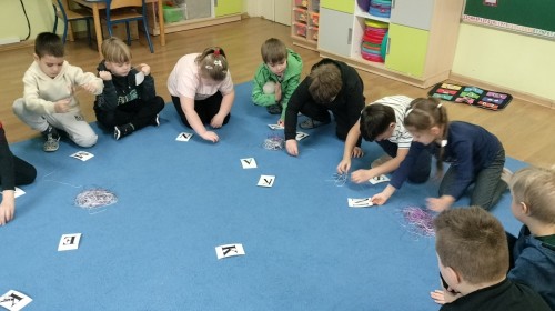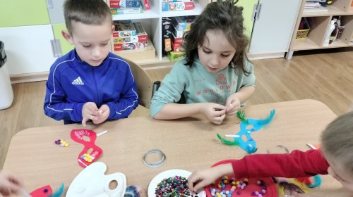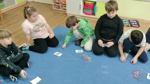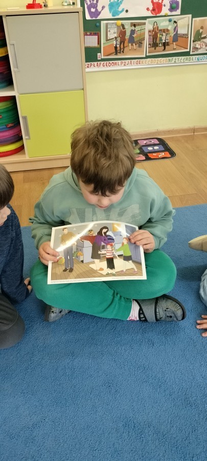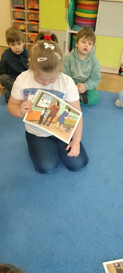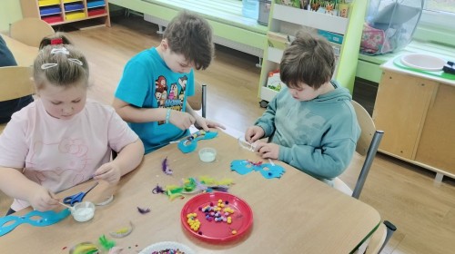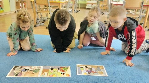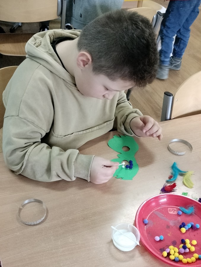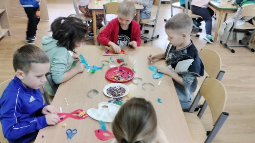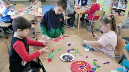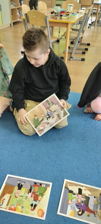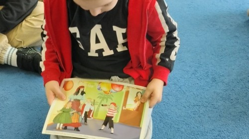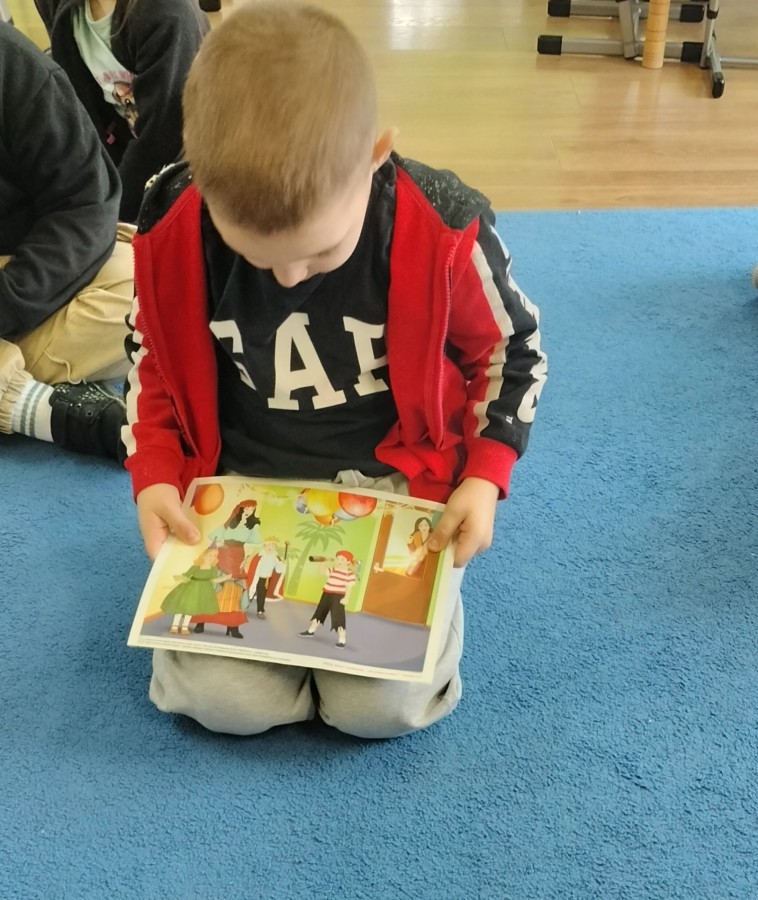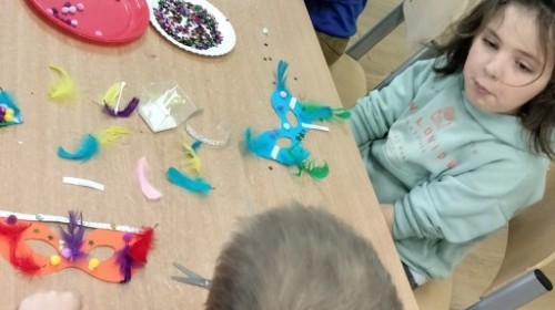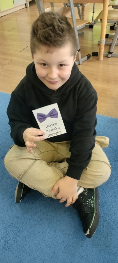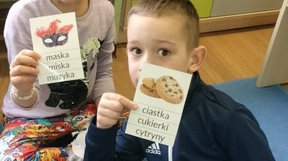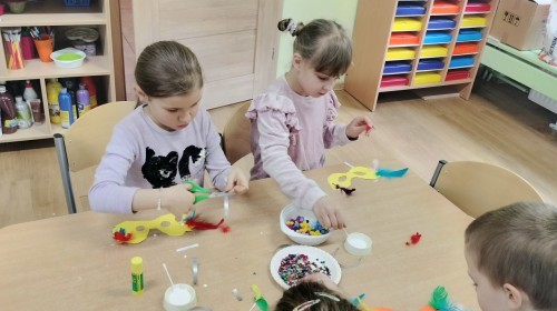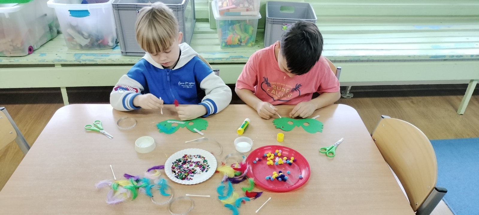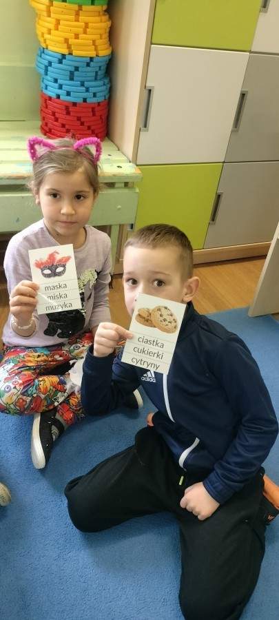 z tematyką balu, rozwijając spostrzegawczość i umiejętność czytania. Układały również historyjkę obrazkową o balu w szkole, ćwicząc logiczne myślenie oraz wypowiadanie się pełnymi zdaniami. Tydzień zakończył się pracą plastyczną – dzieci wykonały własne, pomysłowe maski karnawałowe, wykazując się kreatywnością i wyobraźnią.