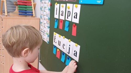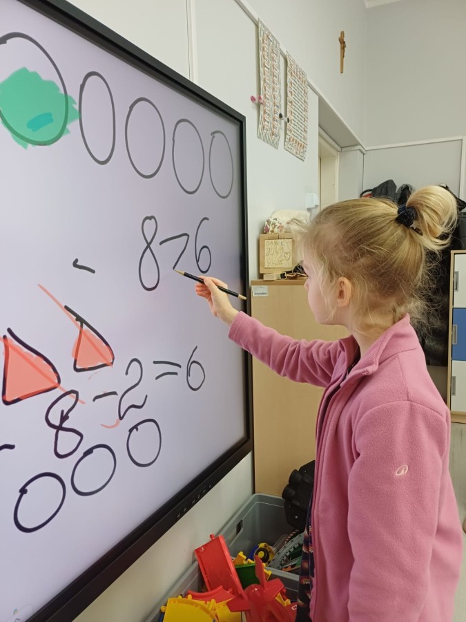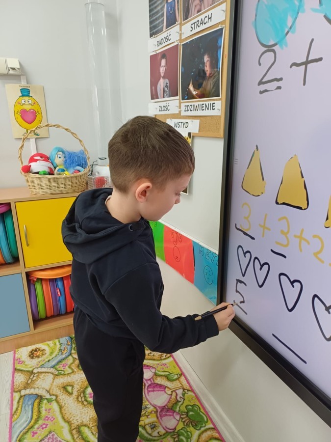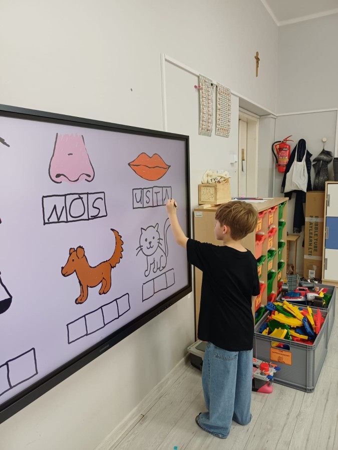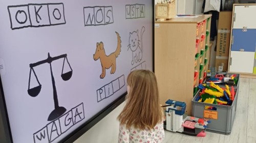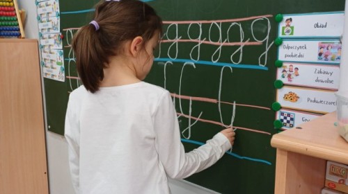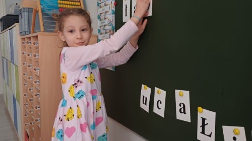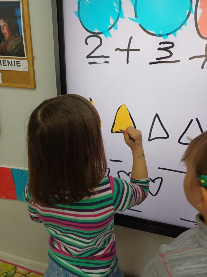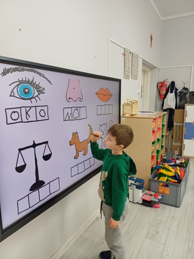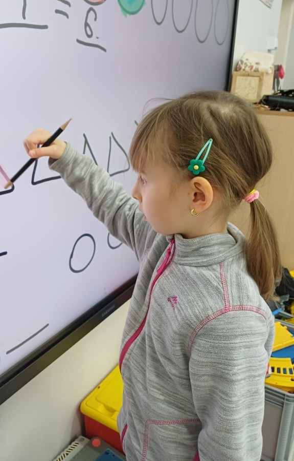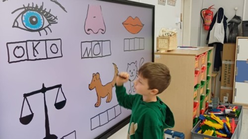 Dzieci z grupy Sówek już wkrótce rozpoczną swoją przygodę ze szkołą. A teraz, będąc jeszcze w zerówce, przygotowują się do tego, aby ten start był dla nich czasem, w którym czuć się będą bezpiecznie i pewnie. Poprzez gry i zabawę poznają oraz utrwalają w pamięci litery i cyfry. Łącza litery w wyrazy i dzielą je na sylaby i głoski. Wiele radości sprawia im, gdy po raz pierwszy udaje się coś zapisać, odczytać słowa obliczyć działanie... Te sukcesy, sprawiają, że chcą więcej! Pomocne są zarówno tradycyjne metody- tablica i kreda, jak i te nowoczesna- ekran multimedialny. Trzymamy za Was kciuki drogie Sówki!