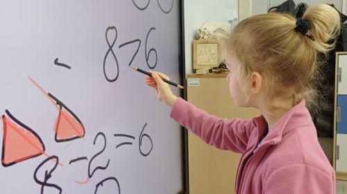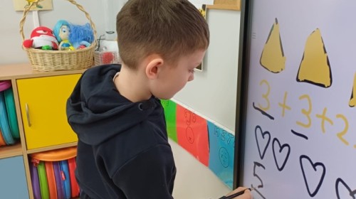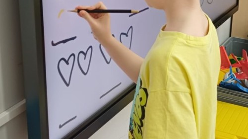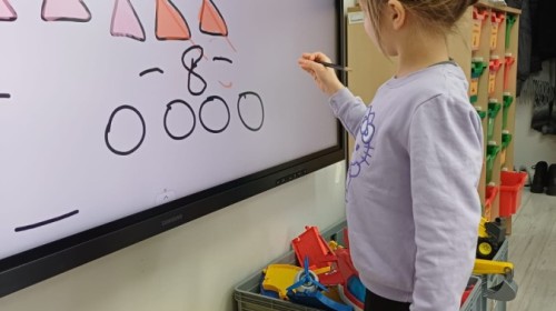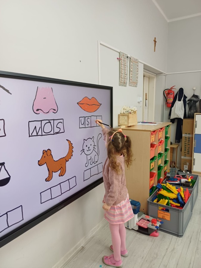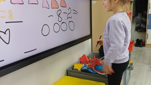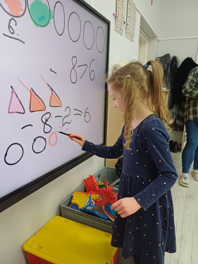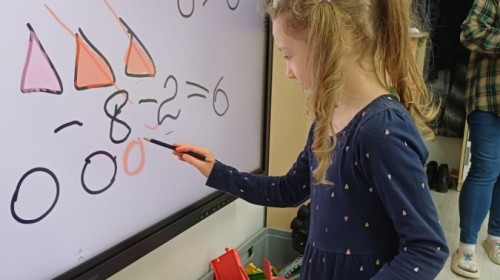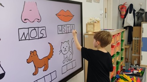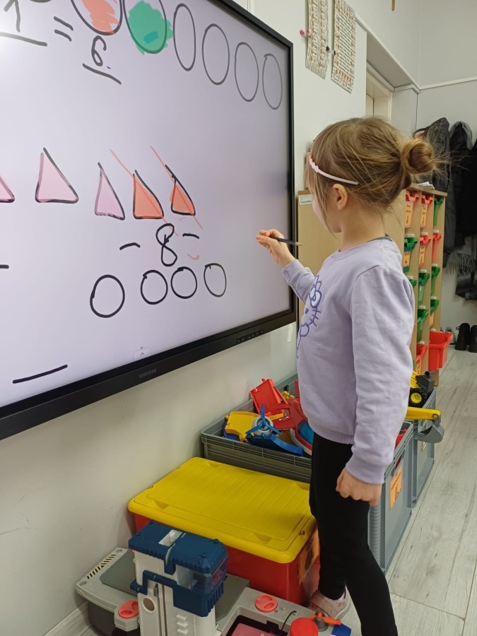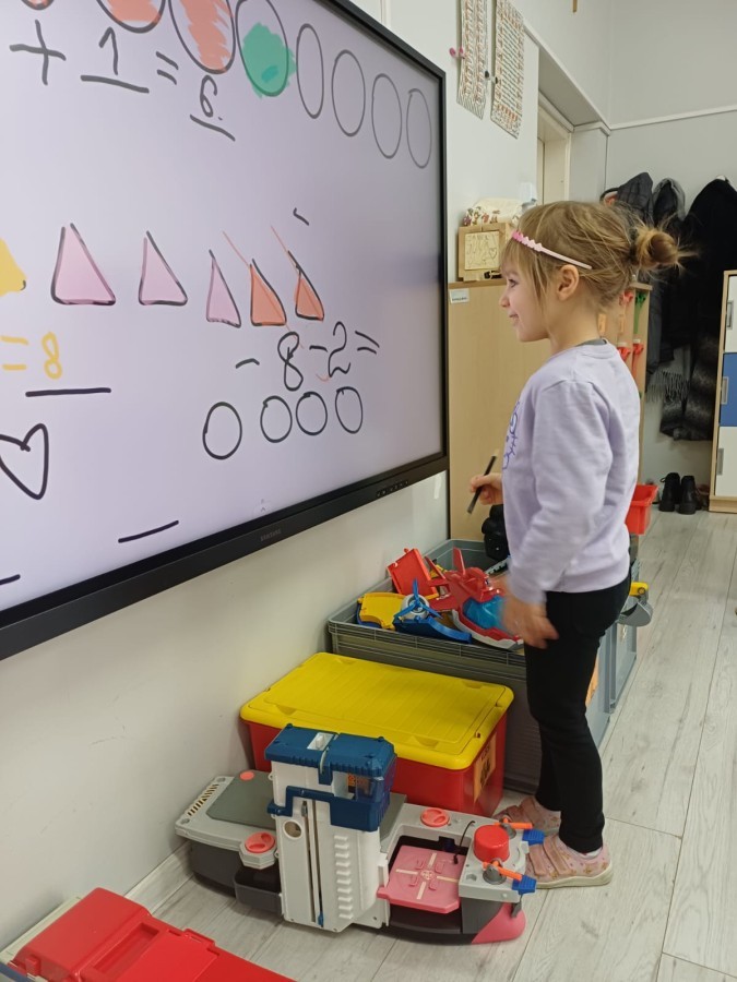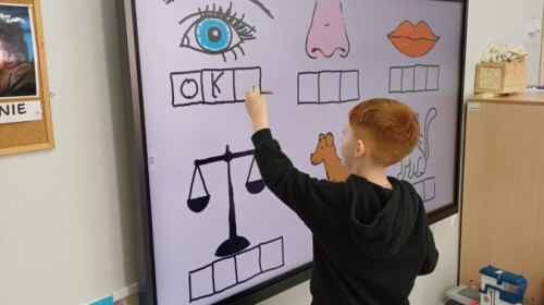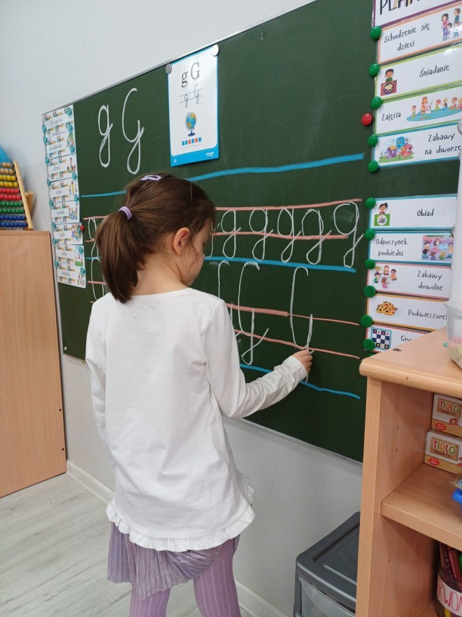 Dzieci z grupy Sówek już wkrótce rozpoczną swoją przygodę ze szkołą. A teraz, będąc jeszcze w zerówce, przygotowują się do tego, aby ten start był dla nich czasem, w którym czuć się będą bezpiecznie i pewnie. Poprzez gry i zabawę poznają oraz utrwalają w pamięci litery i cyfry. Łącza litery w wyrazy i dzielą je na sylaby i głoski. Wiele radości sprawia im, gdy po raz pierwszy udaje się coś zapisać, odczytać słowa obliczyć działanie... Te sukcesy, sprawiają, że chcą więcej! Pomocne są zarówno tradycyjne metody- tablica i kreda, jak i te nowoczesna- ekran multimedialny. Trzymamy za Was kciuki drogie Sówki!