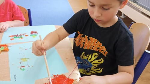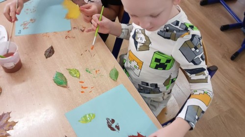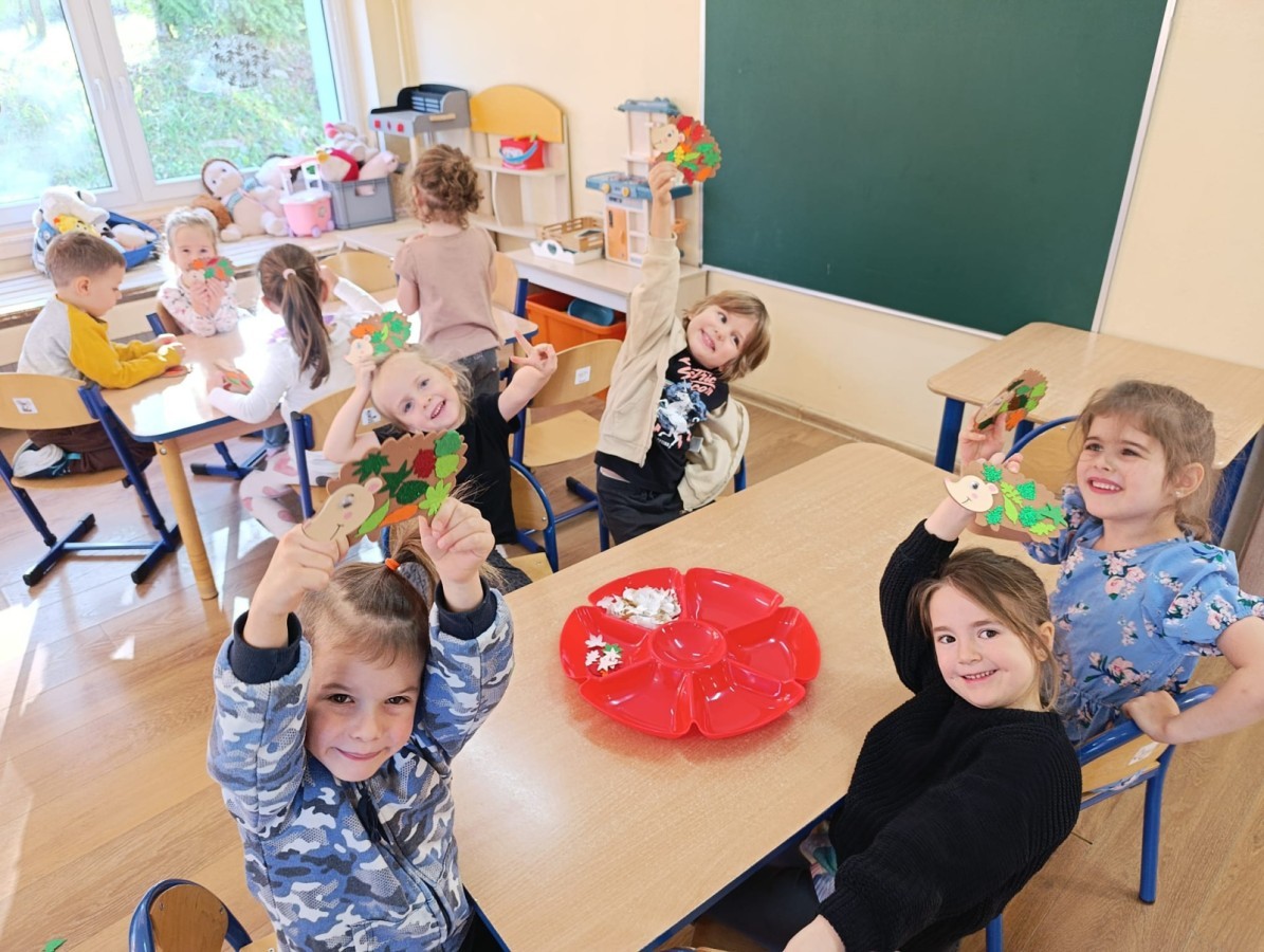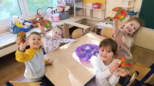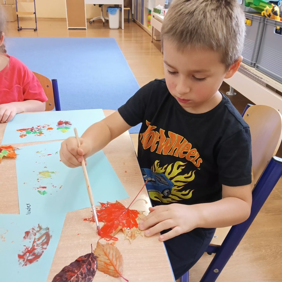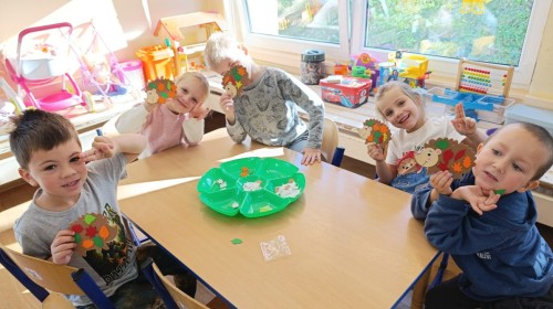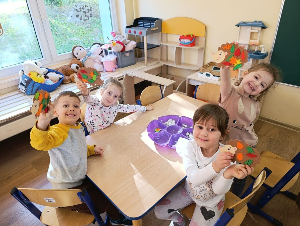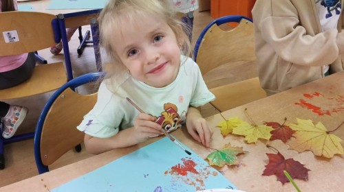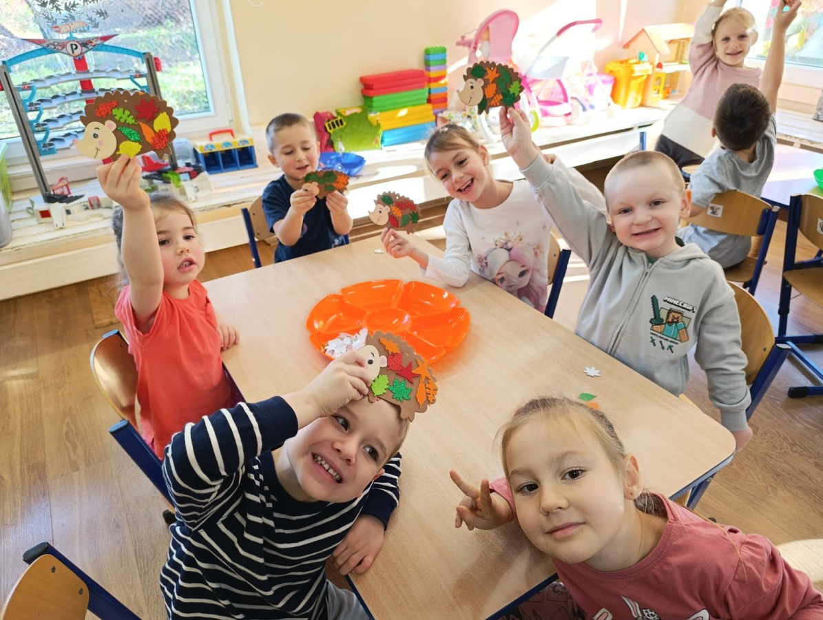 Listopad upłynął naszym "Jeżykom" na twórczych i pełnych radości zajęciach. Wykorzystywaliśmy jesienne dary natury, rozwijaliśmy zdolności manualne i bawiliśmy się z technologią. Podczas zajęć dzieci eksperymentowały z kolorami i fakturami, malując oraz odbijając liście kartkach. Powstały piękne, jesienne kompozycje, które wprowadziły nas w klimat późnej jesieni. Dzieci ozdabiały piankowe jeżyki kolorowymi listkami, tworząc wspaniałe zawieszki. Gotowe prace dumnie zawisły na wstążeczkach, stając się jesienną ozdobą. "Jeżyki" brały również udział w zajęciach z wykorzystaniem edukacyjnego programu multimedialnego „Tyci Tukan