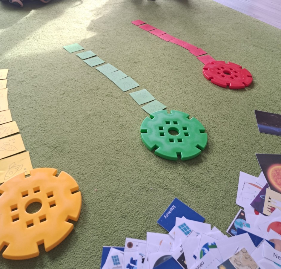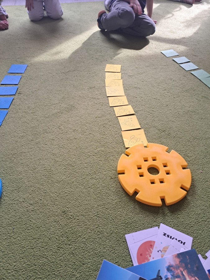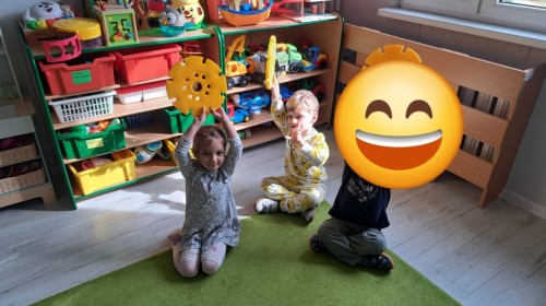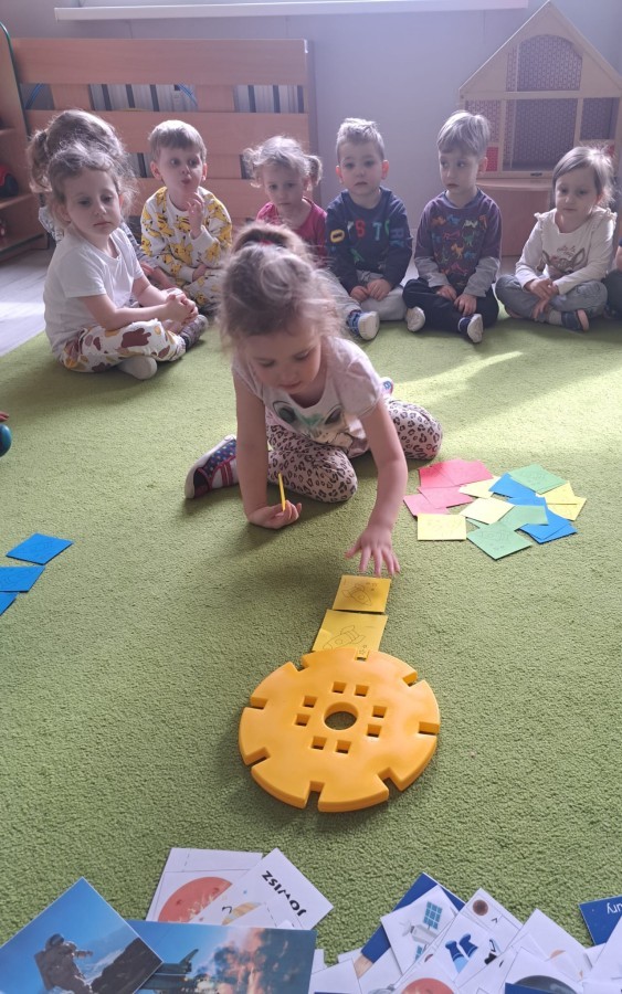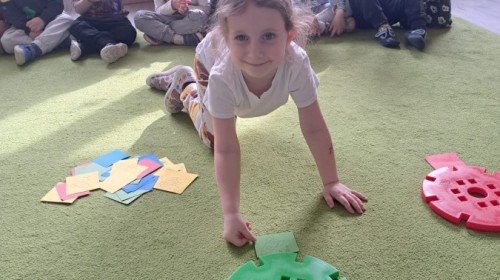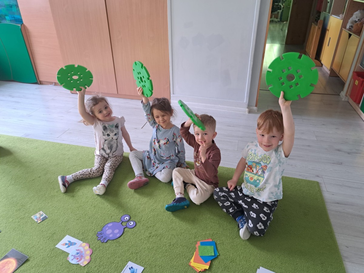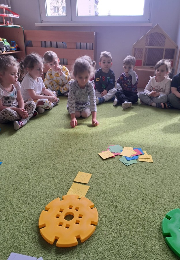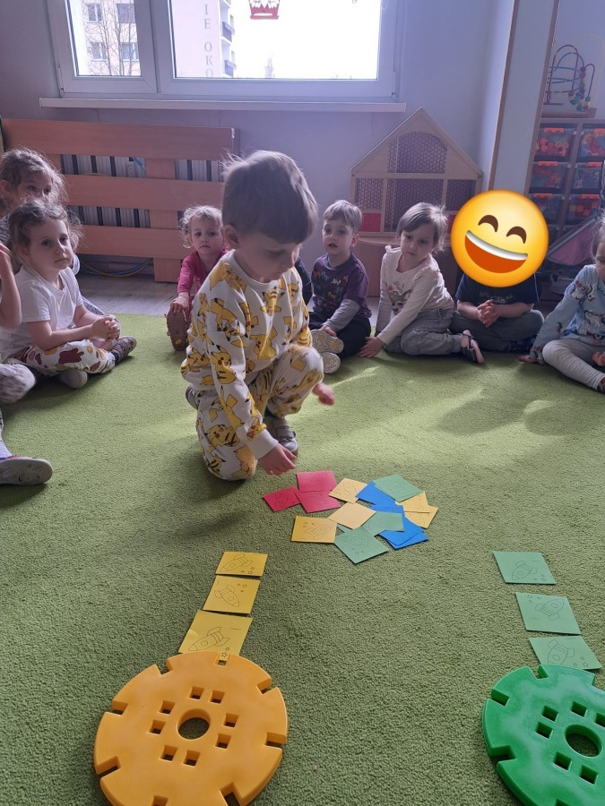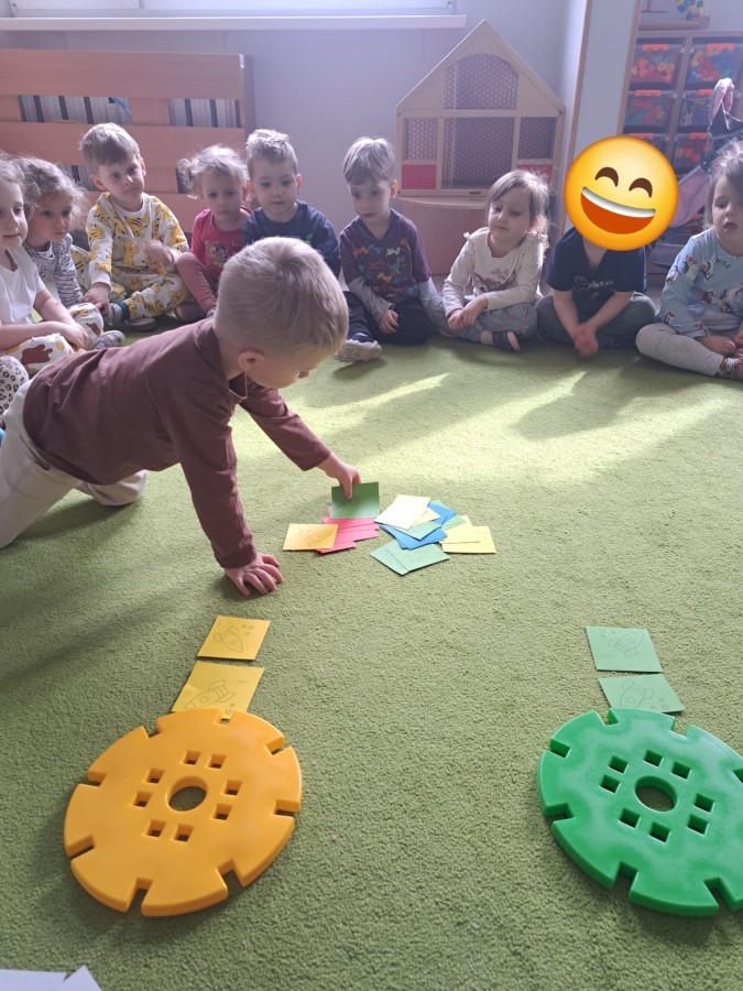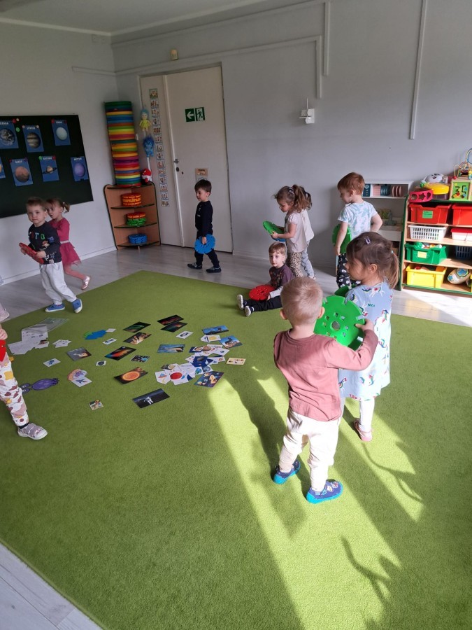Grupa "Liski" podczas wspólnych zajęć poznawała planety, odsłuchaliśmy również dźwięki, jakie wydają poszczególne planety. Utrwalaliśmy kolory oraz przeliczaliśmy poszczególne kartoniki z kolorami porównując ich ilości. Nie zabrakło także aktywności ruchowej w formie toru przeszkód, który dostarczył dzieciom wiele radości i pozytywnej energii.