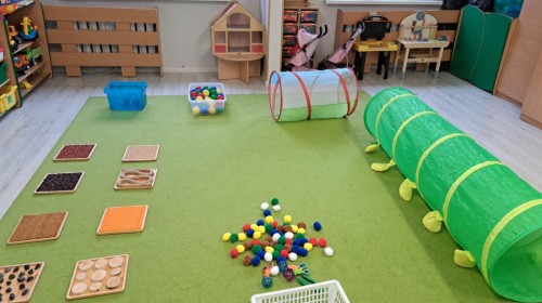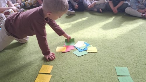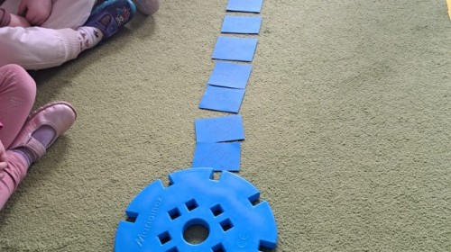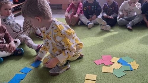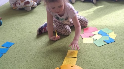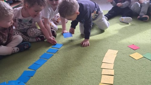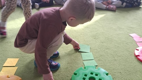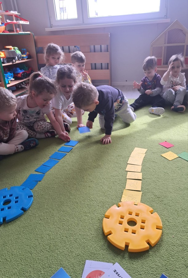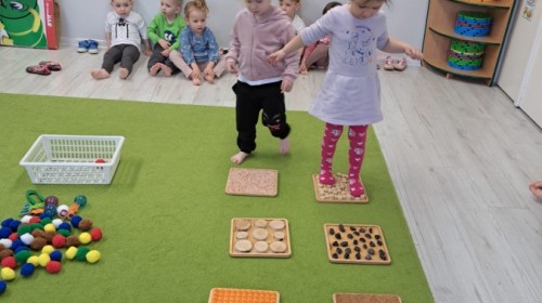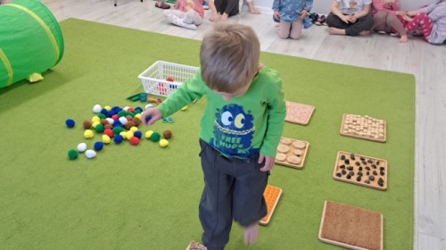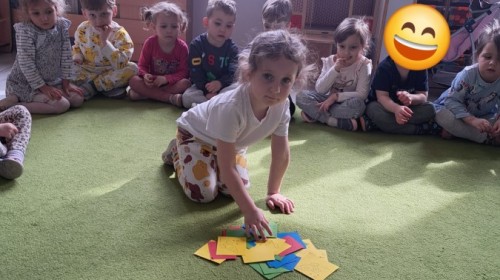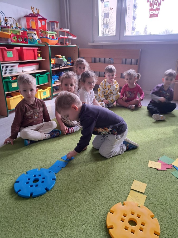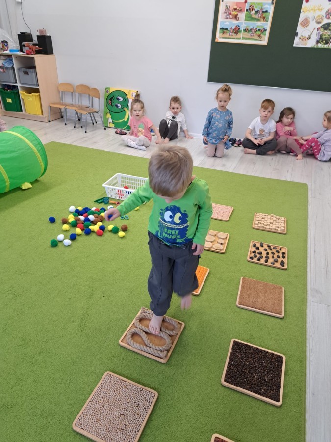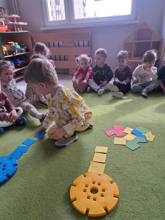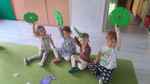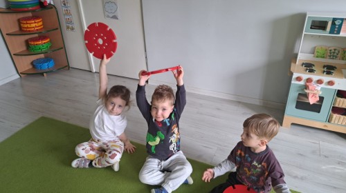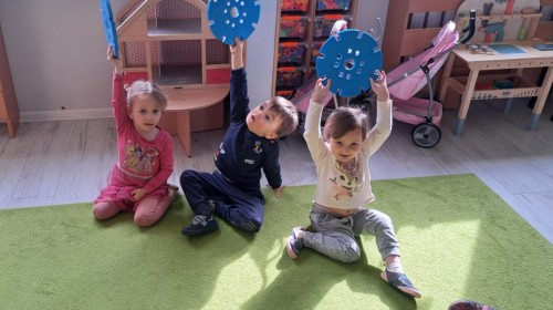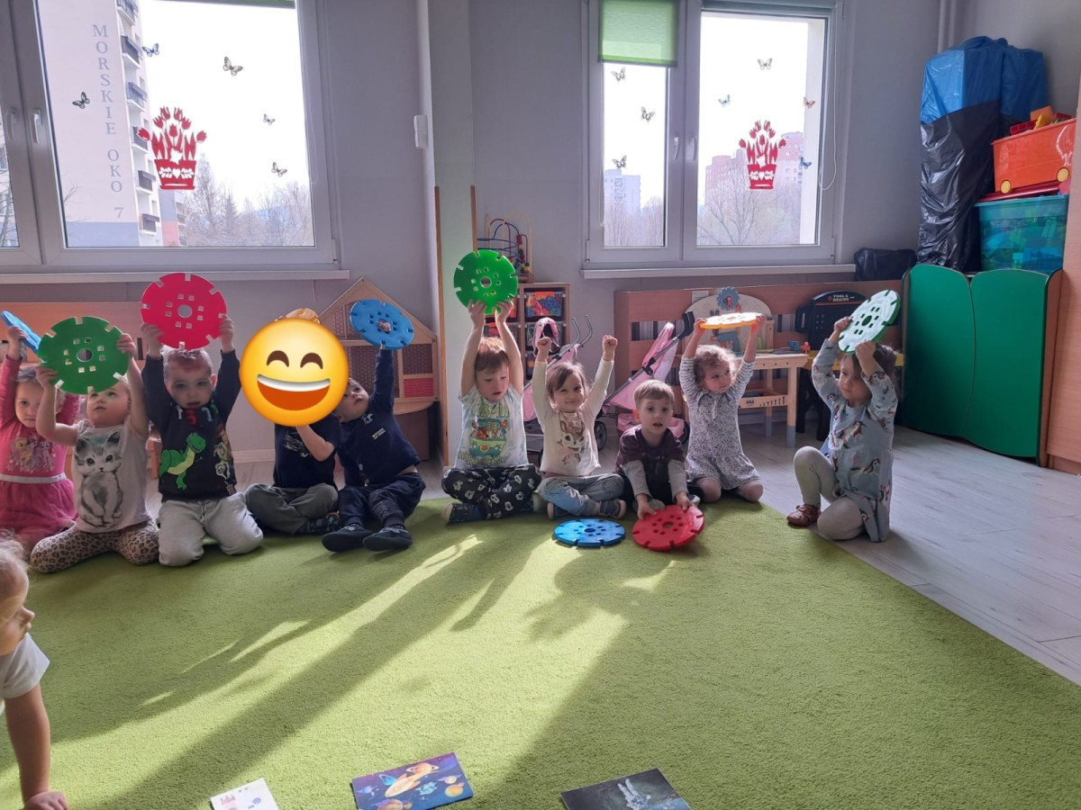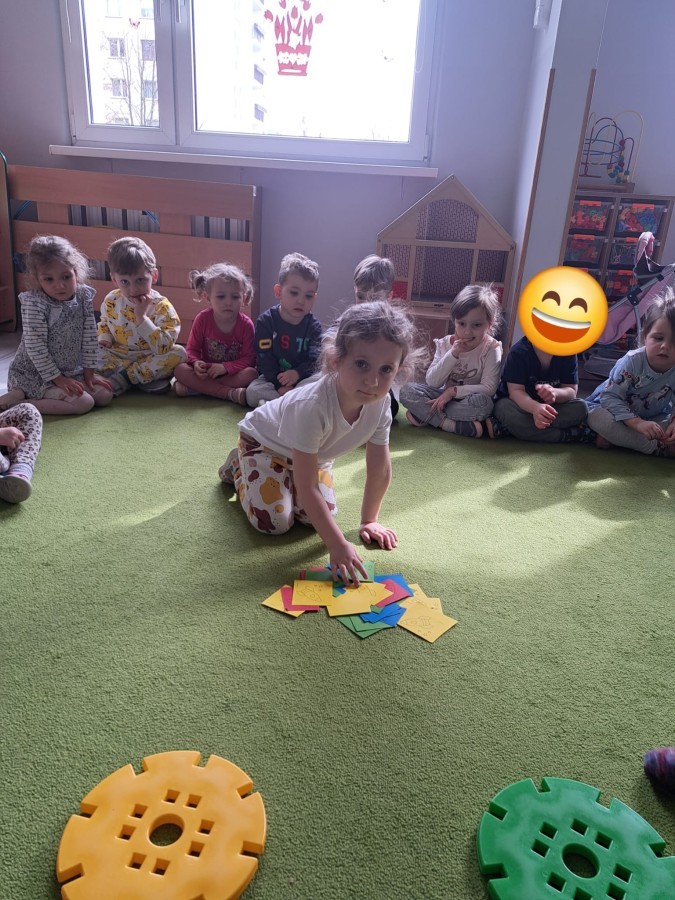 Grupa "Liski" podczas wspólnych zajęć poznawała planety, odsłuchaliśmy również dźwięki, jakie wydają poszczególne planety. Utrwalaliśmy kolory oraz przeliczaliśmy poszczególne kartoniki z kolorami porównując ich ilości. Nie zabrakło także aktywności ruchowej w formie toru przeszkód, który dostarczył dzieciom wiele radości i pozytywnej energii.