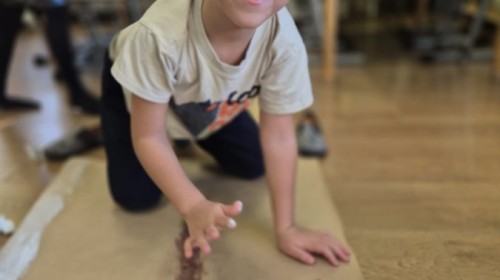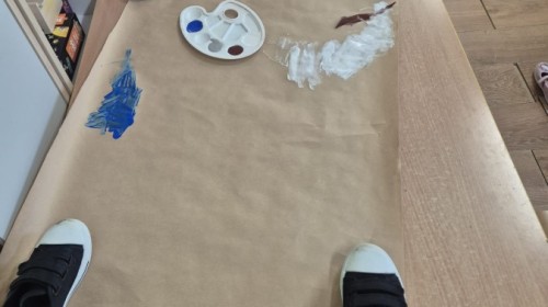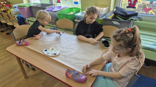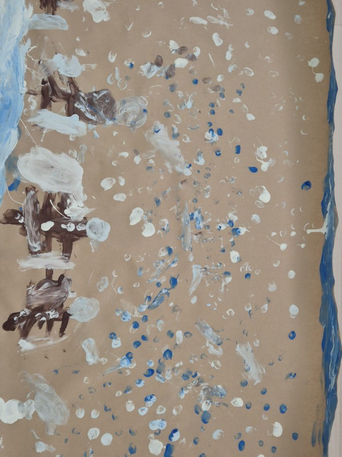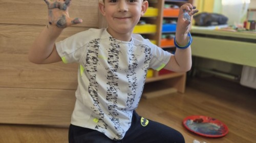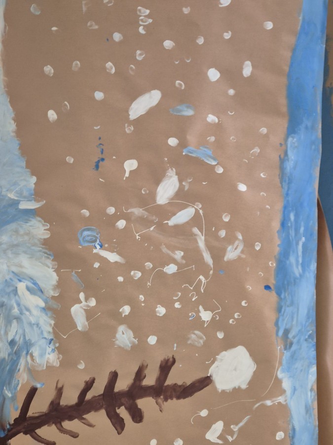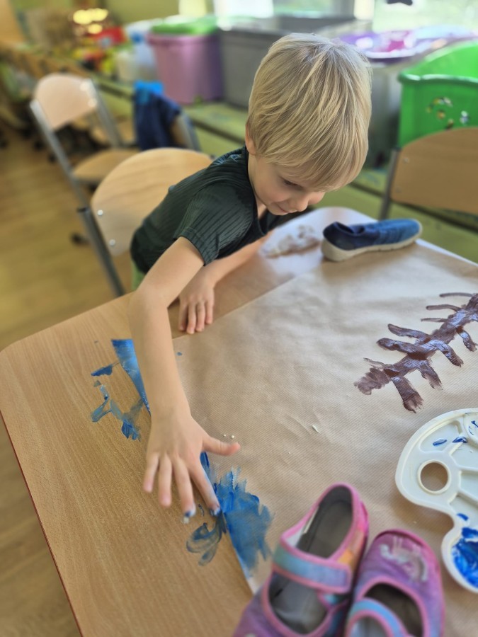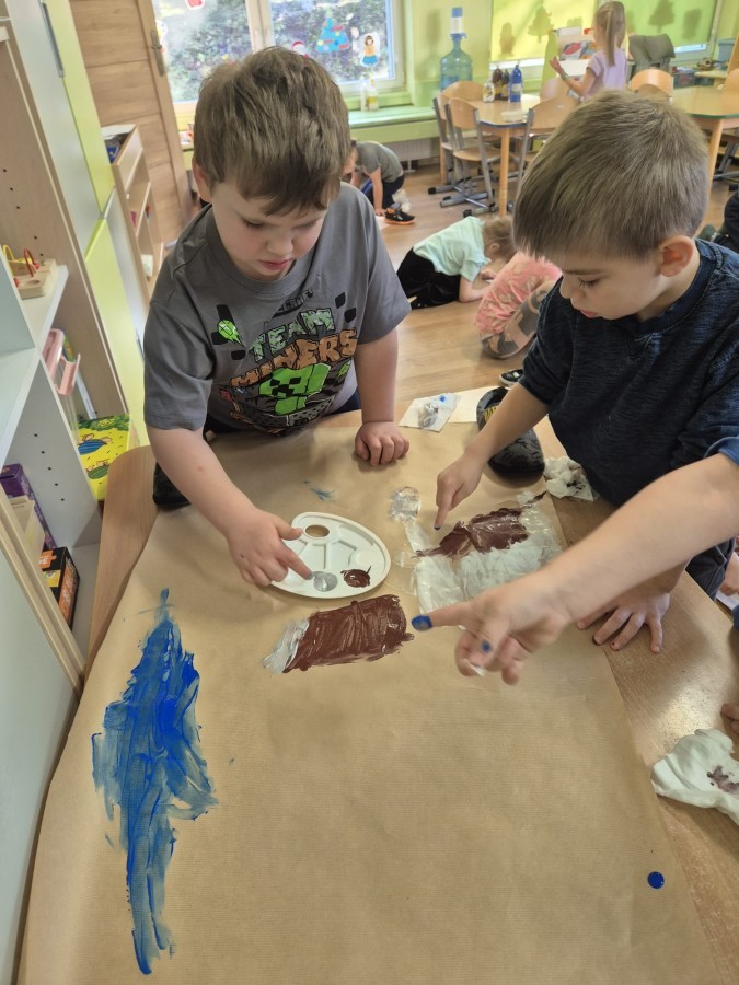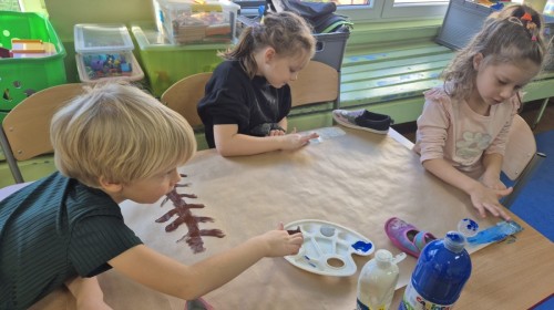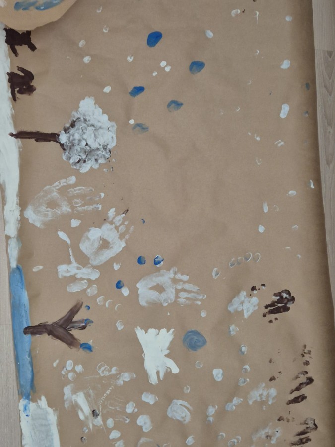 z nich malował do muzyki własną, zimową interpretację utworu „Zima” Vivaldiego. Powstały niezwykle różnorodne i kreatywne prace, pełne barw, ruchu i emocji. Zajęcia były doskonałą okazją do rozwijania wrażliwości artystycznej, kreatywności oraz umiejętności współpracy, a także do doświadczania sztuki wszystkimi zmysłami.