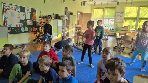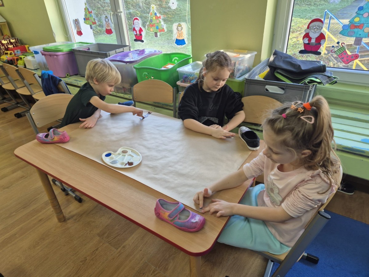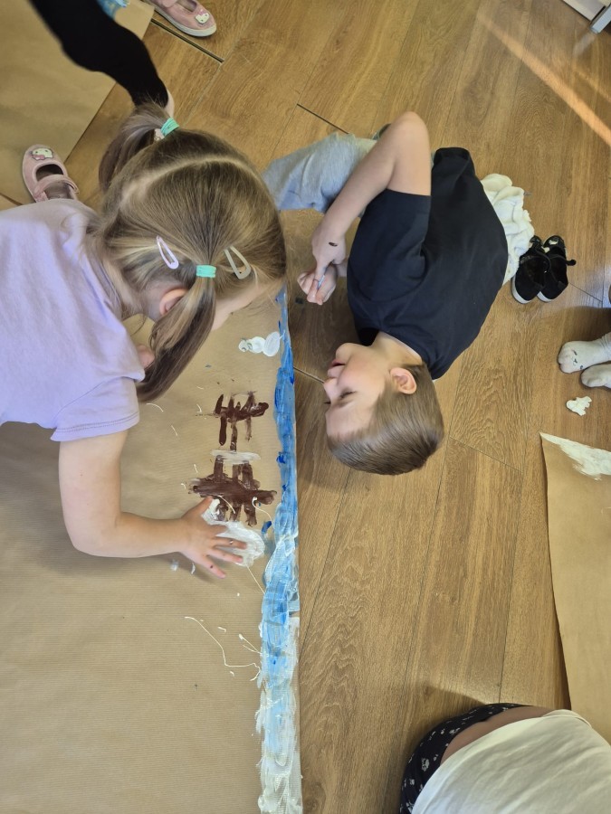 Nasza grupa wzięła udział w wyjątkowych zajęciach polisensorycznych inspirowanych muzyką klasyczną – utworem „Zima” Antonio Vivaldiego. Działania zostały zrealizowane w ramach udziału grupy w ogólnopolskim projekcie „Zabawa Sztuką”. Na początku dzieci słuchały utworu z zamkniętymi oczami, skupiając się na dźwiękach i własnych odczuciach. Następnie Wilki wyrażały muzykę ruchem, interpretując jej tempo, dynamikę i nastrój za pomocą gestów oraz swobodnego tańca. Kolejnym etapem było oglądanie zimowych obrazów, które pomogły dzieciom połączyć muzykę z obrazem i pobudziły wyobraźnię. Rozmawialiśmy o skojarzeniach, emocjach i elementach zimowego krajobrazu obecnych w muzyce. Na zakończenie dzieci zostały podzielone na zespoły, a każdy