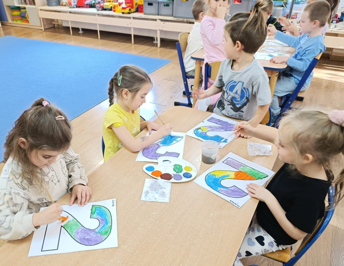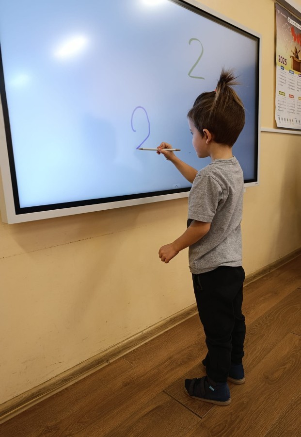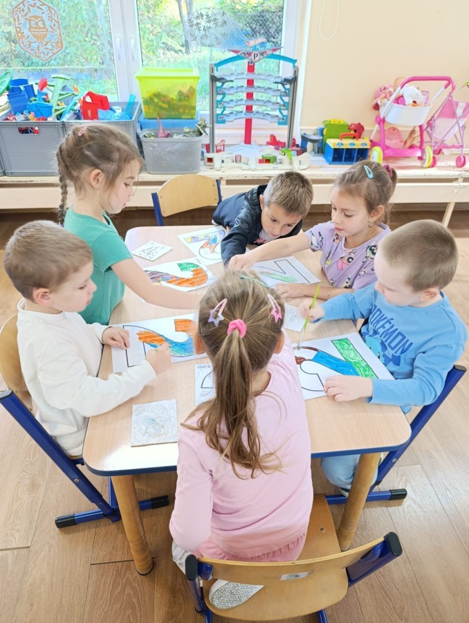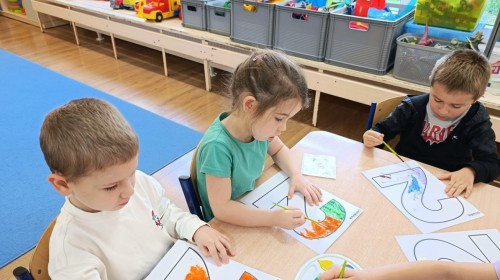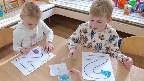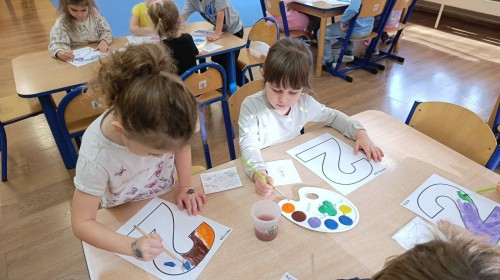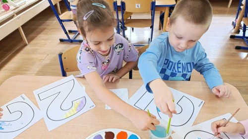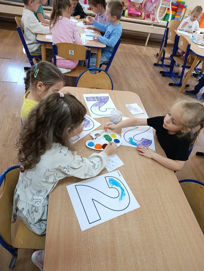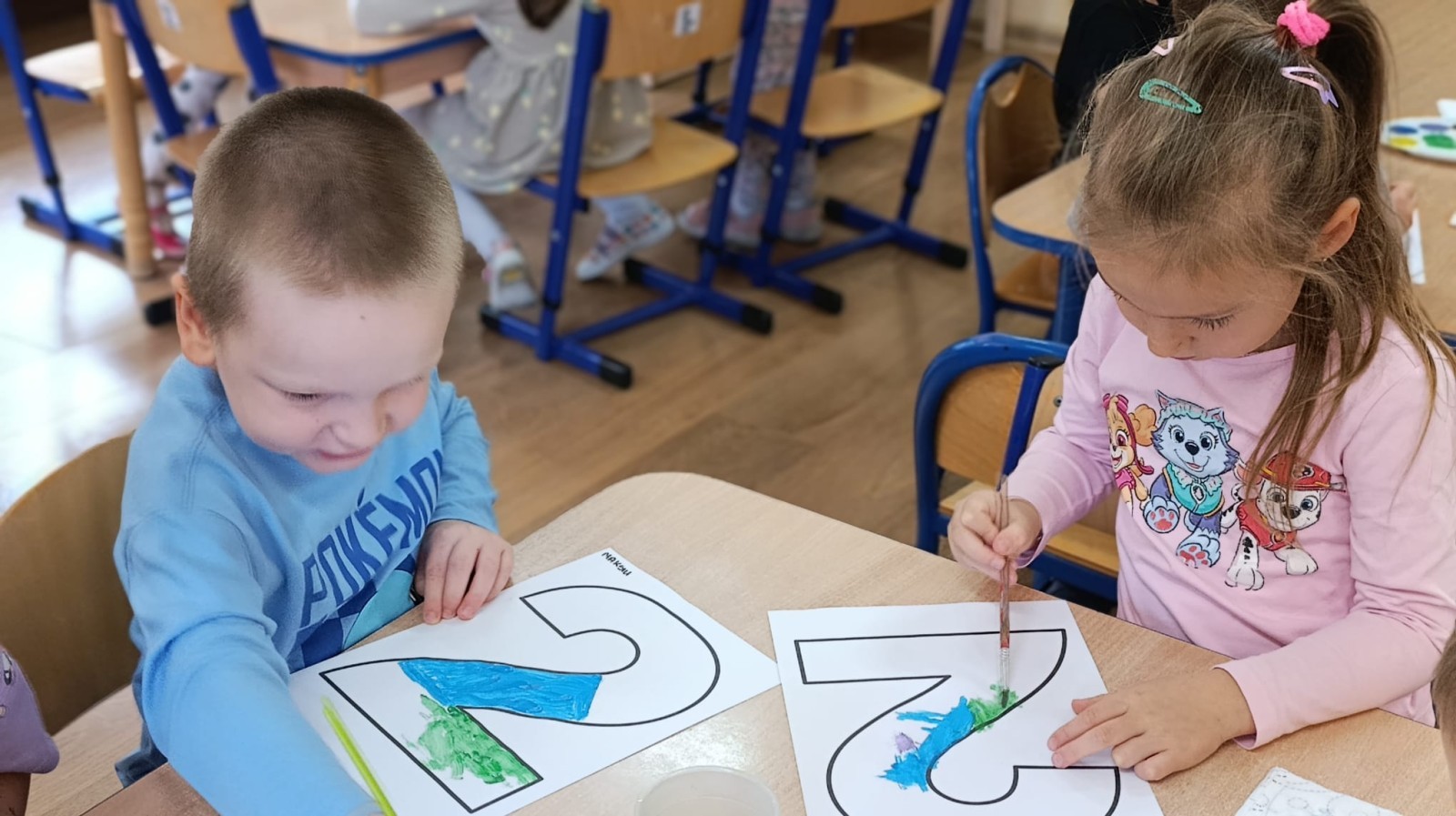 W trzecim tygodniu października w grupie "Jeżyków" poznawaliśmy cyfrę 2. Na początku wspólnie szukaliśmy przedmiotów w sali, które występują w parach – były to np. dwie ręce, dwa buty, dwie kredki czy dwa misie. Następnie "Jeżyki" ćwiczyły pisanie cyfry 2 na tablicy multimedialnej. Każde dziecko mogło spróbować własnych sił, rysując dwójkę specjalnym rysikiem. Dzieci wykonały również pracę plastyczną. Zajęcia przyniosły mnóstwo radości i satysfakcji.