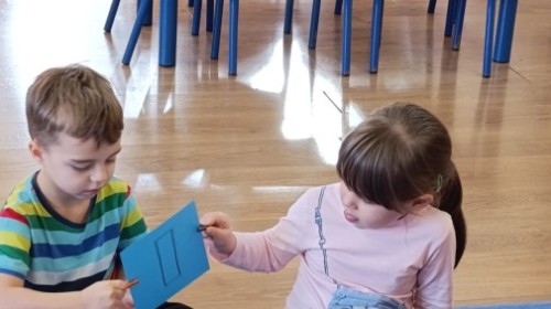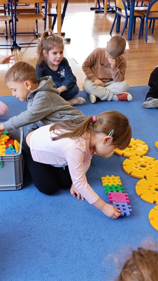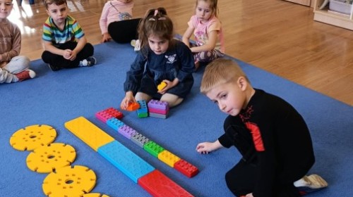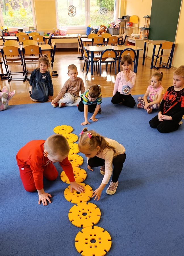 W drugim tygodniu listopada Jeżyki rozpoczęły swoją przygodę z nową literą – I. Dzieci poprzez zabawę i twórcze działania utrwalały jej kształt oraz dźwięk. Podczas zajęć "Jeżyki" układały literę I z klocków z zaangażowaniem tworząc różne warianty literki i ćwicząc przy tym spostrzegawczość oraz motorykę małą. Przekazywaliśmy kartonik z literą I za pomocą klamerek – ta zabawa dostarczyła dużo radości, a jednocześnie rozwijała precyzję ruchów oraz współpracę. Dzieci wycinały również obrazki rozpoczynające się na literę I, a następnie wyklejały nimi duży szablon literki I, tworząc pracę plastyczną. Dzięki takim aktywnościom "Jeżyki" w przyjemny