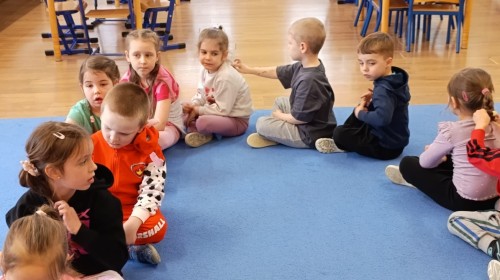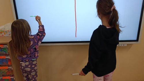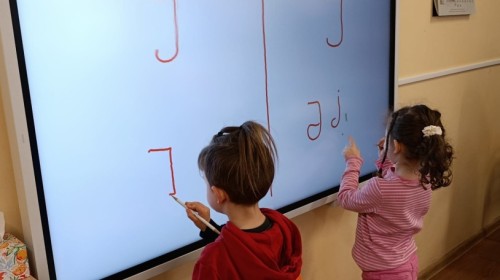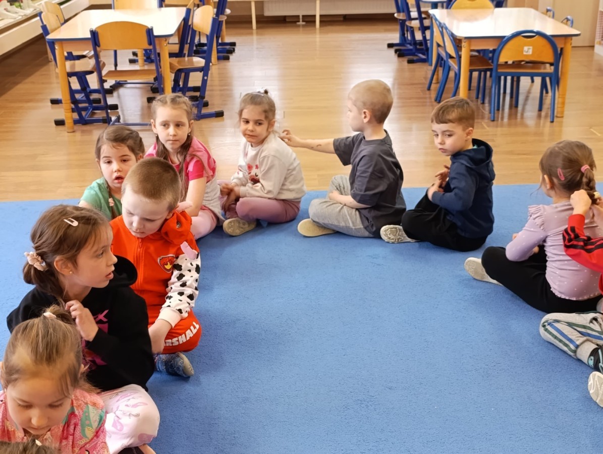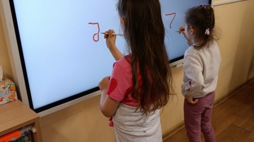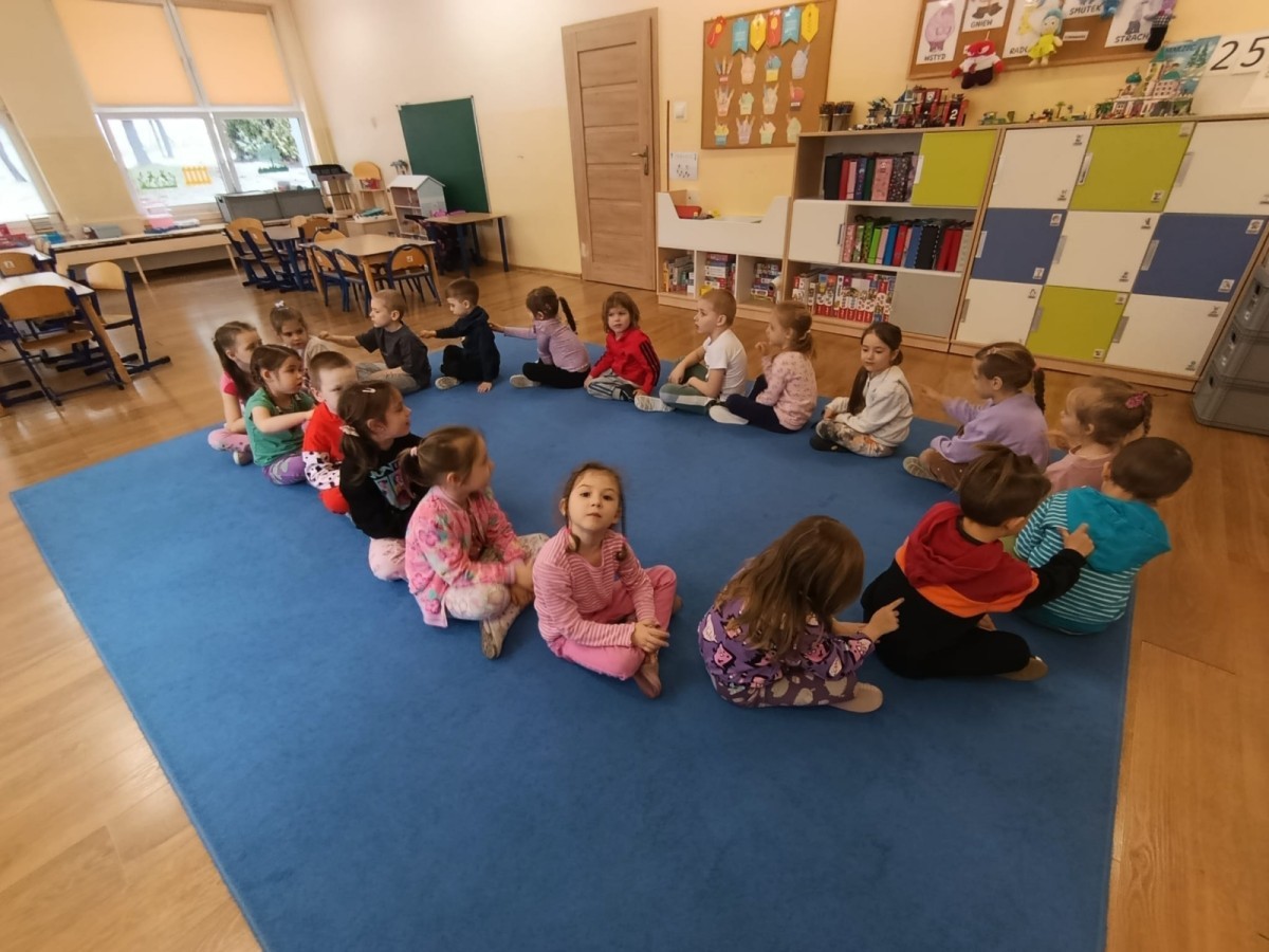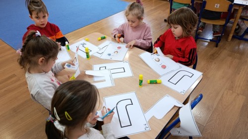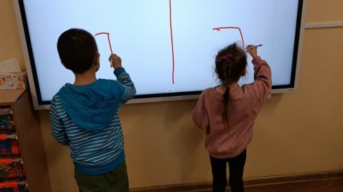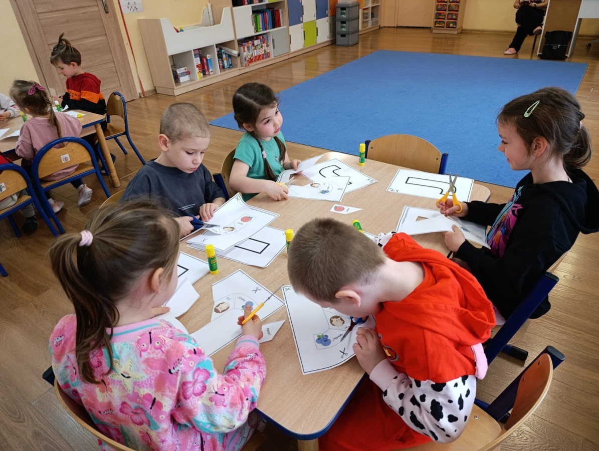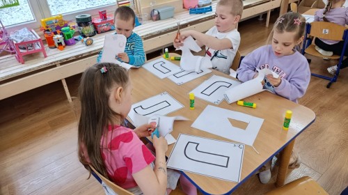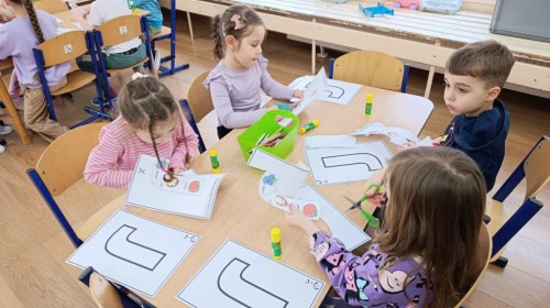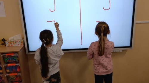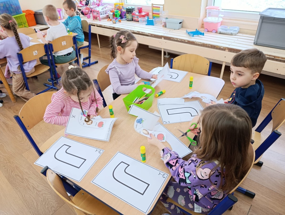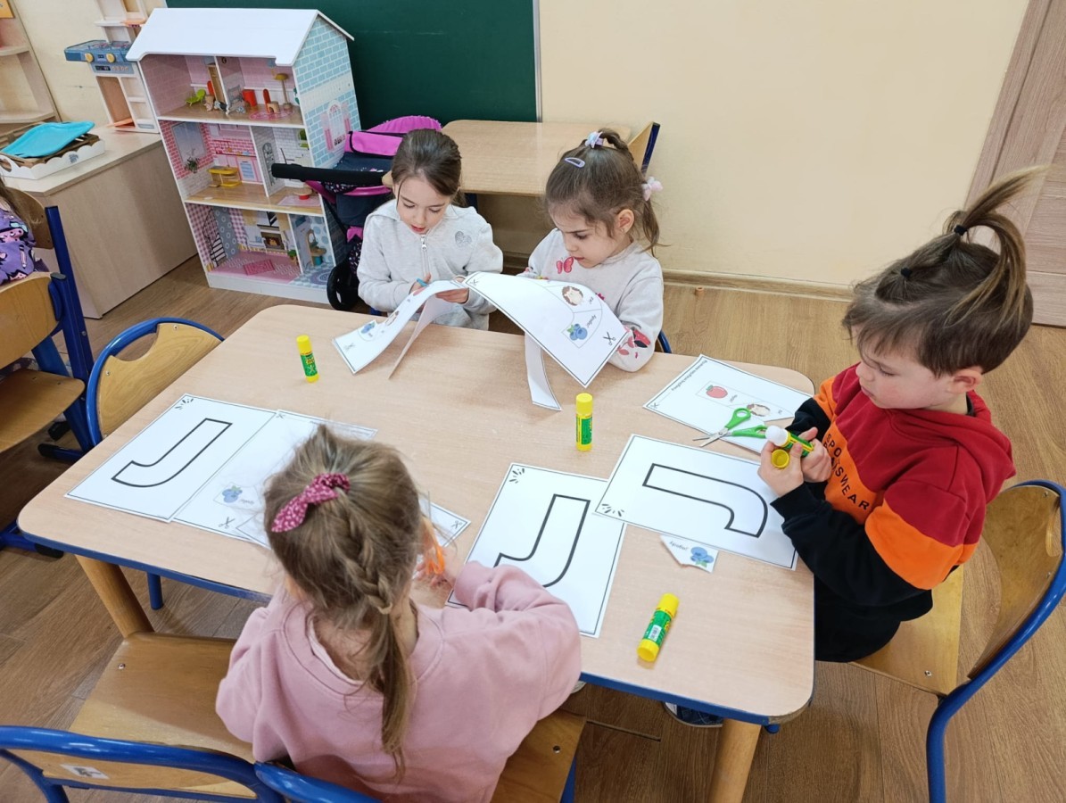 „Jeżyki” poznały nową literkę – „J”. Naszą przygodę rozpoczęliśmy od pisania literki w powietrzu, co sprawiło dzieciom wiele radości i pozwoliło oswoić się z jej kształtem. Następnie ćwiczyliśmy ją w nietypowy sposób – pisząc palcem na plecach kolegi lub koleżanki. Kolejnym krokiem było pisanie litery „J” na tablicy multimedialnej, gdzie dzieci mogły samodzielnie spróbować swoich sił. Wspólnie zastanawialiśmy się także nad wyrazami rozpoczynającymi się na tę literkę – pomysłów nie brakowało! Uczyliśmy się również poprawnego zapisu litery „J”, a na zakończenie zajęć wykonaliśmy pracę plastyczną – wyklejanie literki, które rozwijało kreatywność i sprawność manualną.To był dzień pełen nauki przez zabawę.