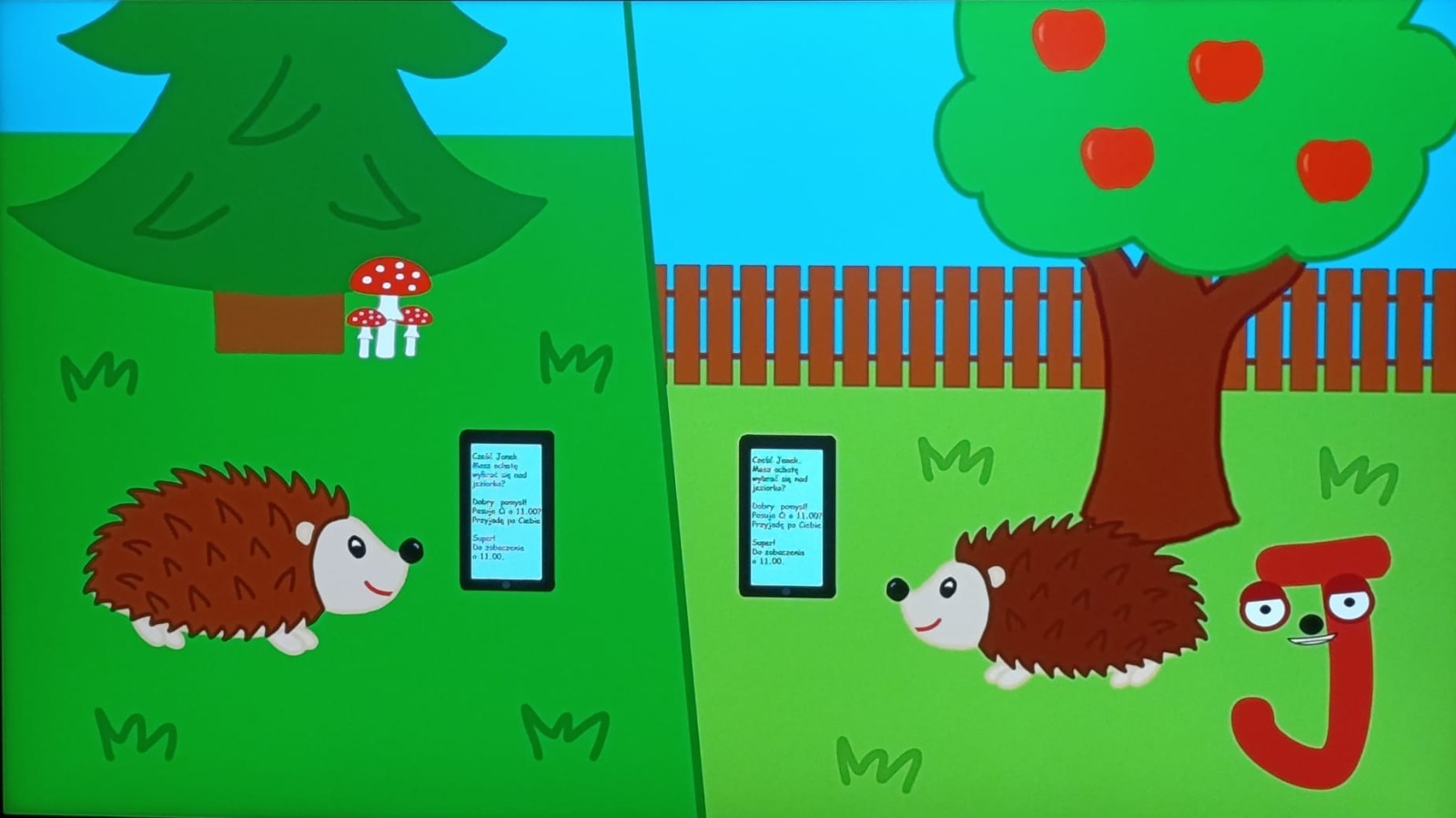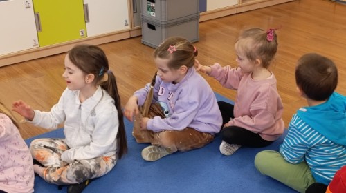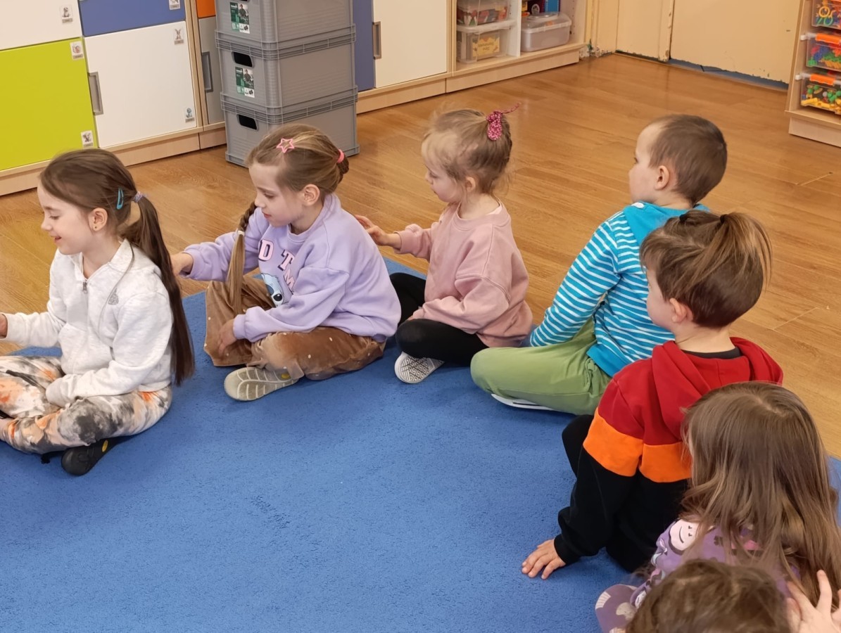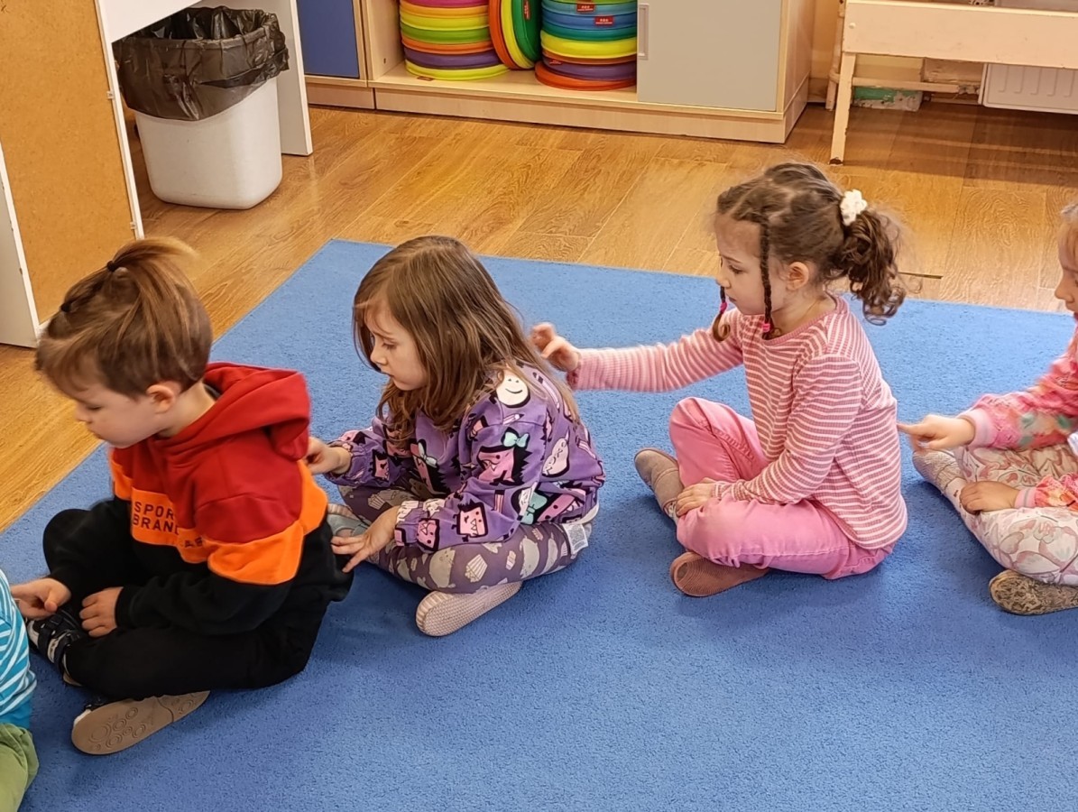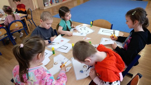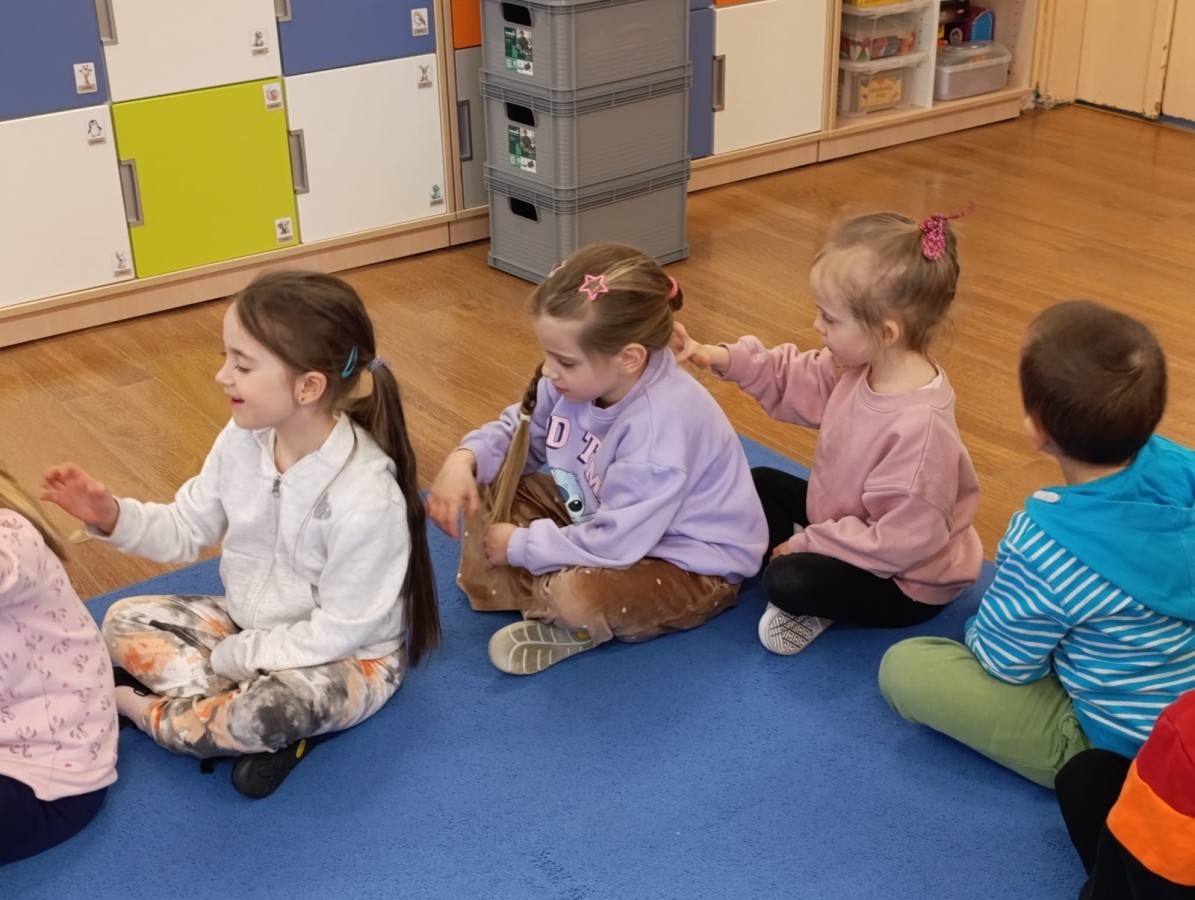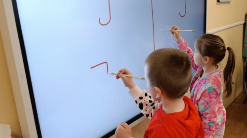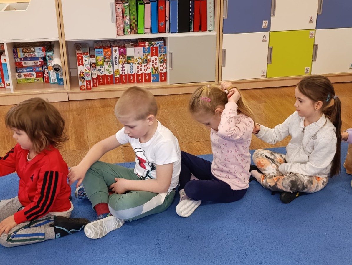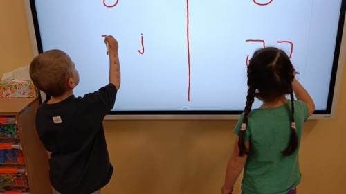 „Jeżyki” poznały nową literkę – „J”. Naszą przygodę rozpoczęliśmy od pisania literki w powietrzu, co sprawiło dzieciom wiele radości i pozwoliło oswoić się z jej kształtem. Następnie ćwiczyliśmy ją w nietypowy sposób – pisząc palcem na plecach kolegi lub koleżanki. Kolejnym krokiem było pisanie litery „J” na tablicy multimedialnej, gdzie dzieci mogły samodzielnie spróbować swoich sił. Wspólnie zastanawialiśmy się także nad wyrazami rozpoczynającymi się na tę literkę – pomysłów nie brakowało! Uczyliśmy się również poprawnego zapisu litery „J”, a na zakończenie zajęć wykonaliśmy pracę plastyczną – wyklejanie literki, które rozwijało kreatywność i sprawność manualną.To był dzień pełen nauki przez zabawę.
