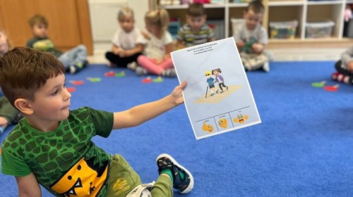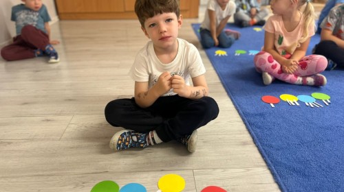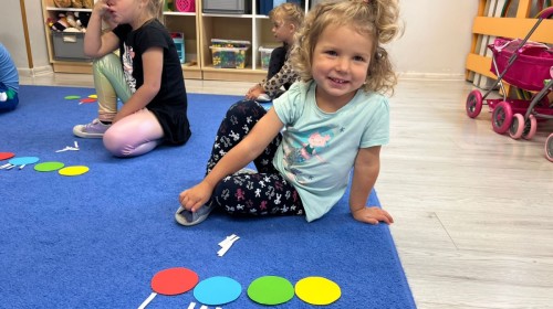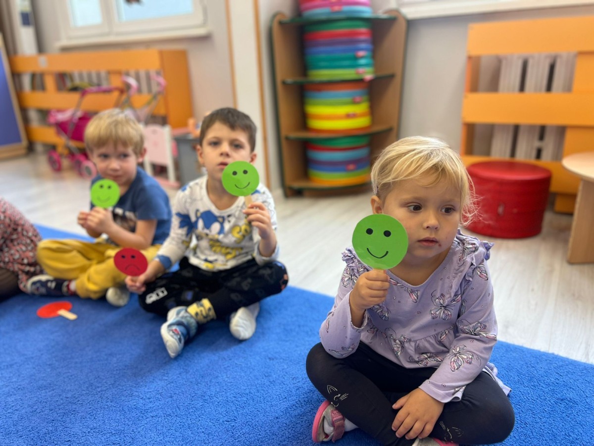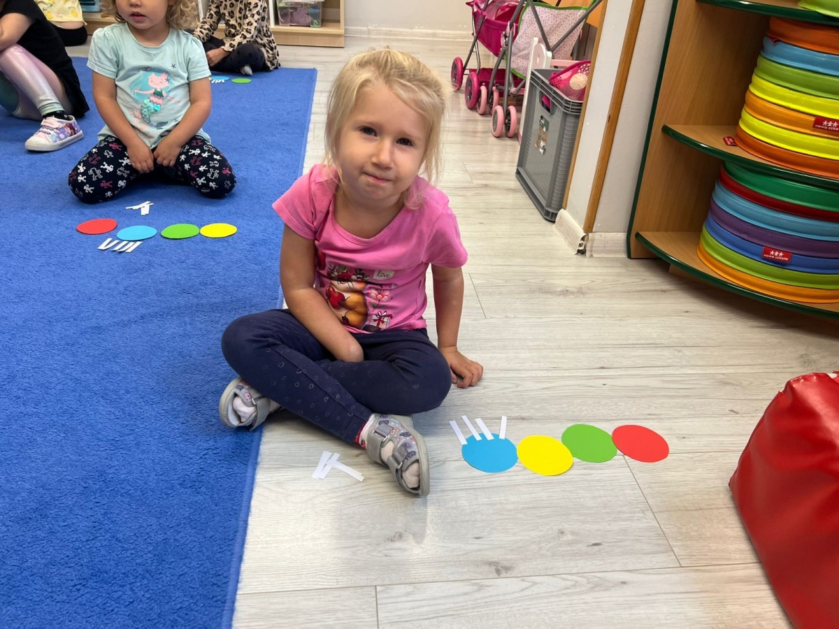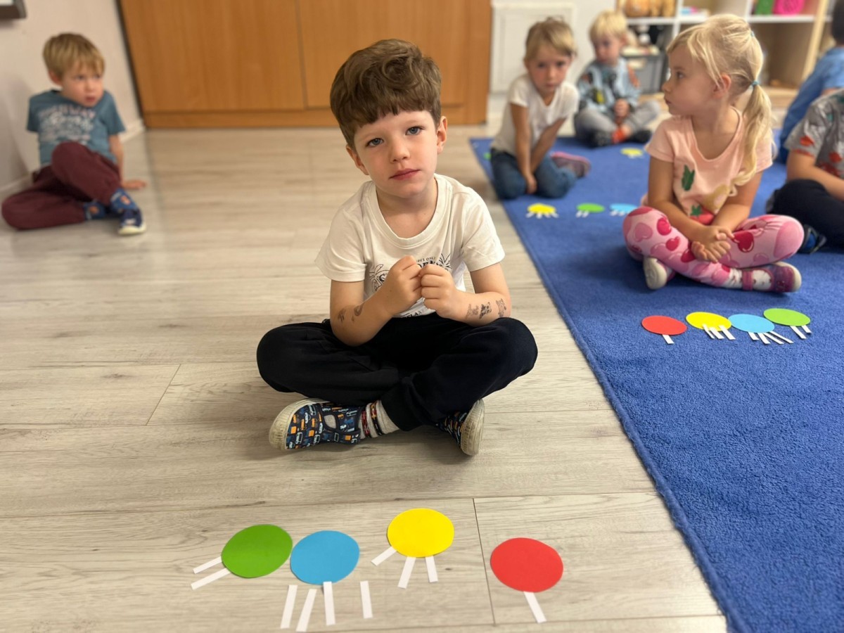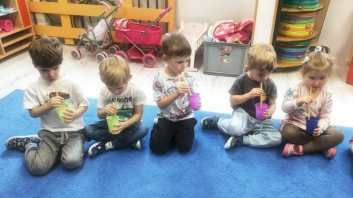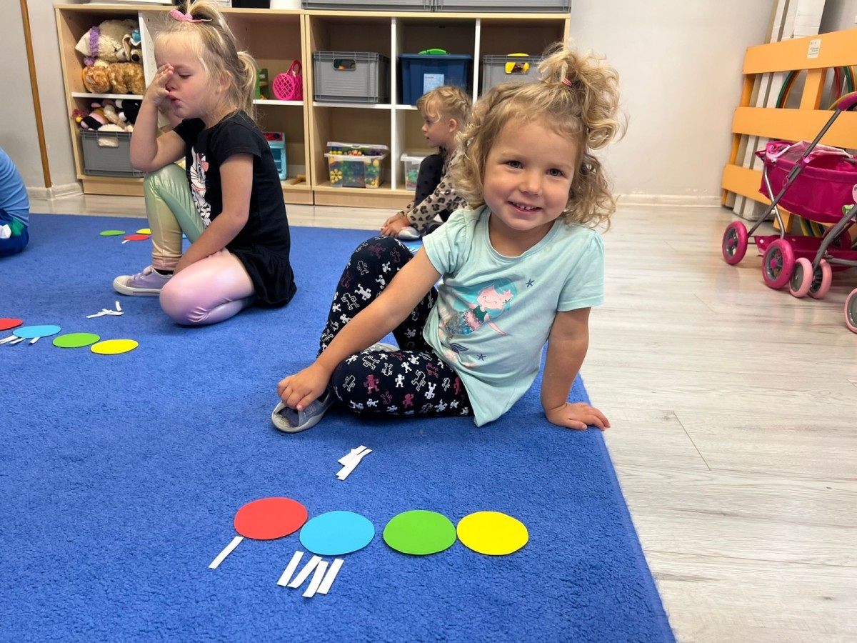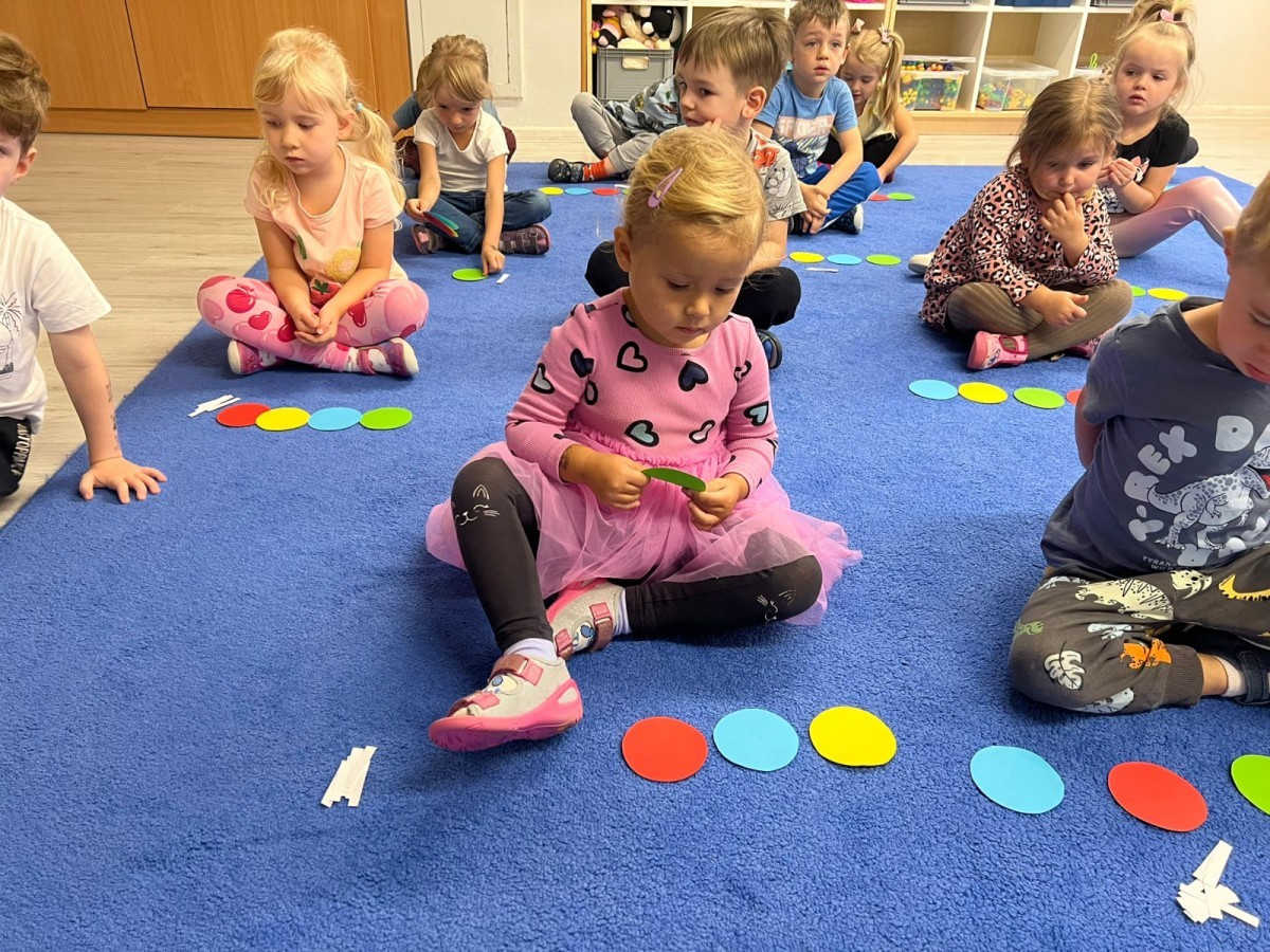W tym tygodniu dzieci wykonywały różne eksperymenty z wodą, obserwując zachowania poszczególnych przedmiotów w wodzie, robiły wodną orkiestrę z wykorzystaniem kubeczka z wodą i słomki oraz poznawały jej właściwości. Dzieci miały też okazję malować na wodnym arkuszu i obserwować zachowanie rozchodzących się barw oraz ich mieszanie i powstawanie kolorów pochodnych. Utrwaliły również kształty i kolory podczas zajęć z przeliczania na konkretach (torty i świeczki)do 4 oraz przy tworzeniu pracy plastycznej z figur geometrycznych. Pod koniec tygodnia miały miejsce również rozmowy na temat dobrych i złych zachowań, akceptowalnych i nieakceptowalnych w danej sytuacji oraz na temat emocji im towarzyszących. Rozważaliśmy z dziećmi, w jakich sytuacjach czujemy strach, złość, smutek, radość i dumę. Szukaliśmy sposobów, jak sobie radzić ze smutkiem, ale też zauważyliśmy, że czasem każdy z nas czuje potrzebę posmucić się i to jest ok.