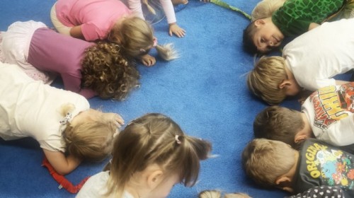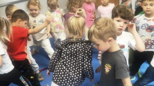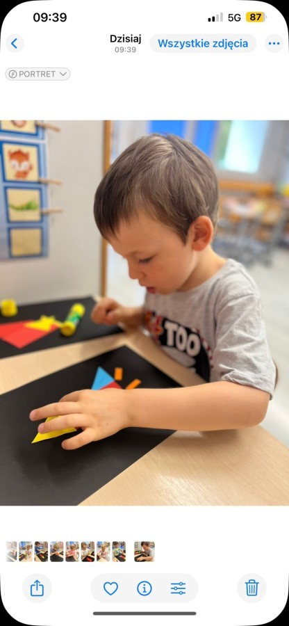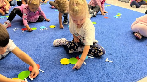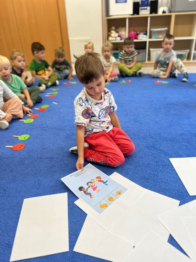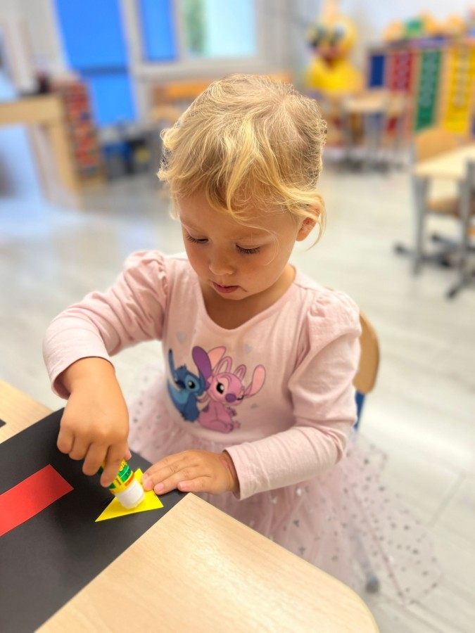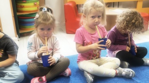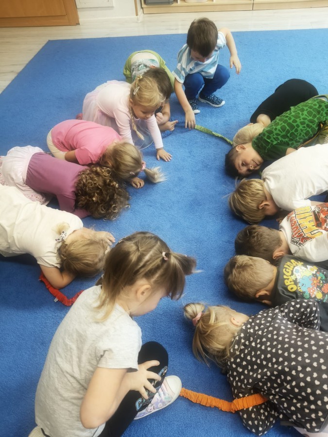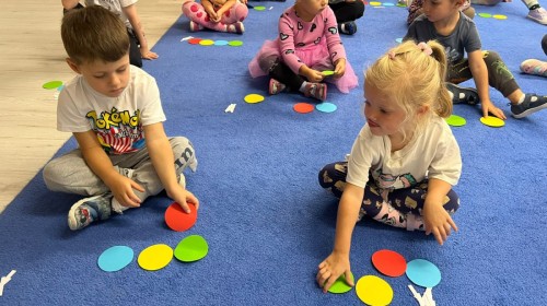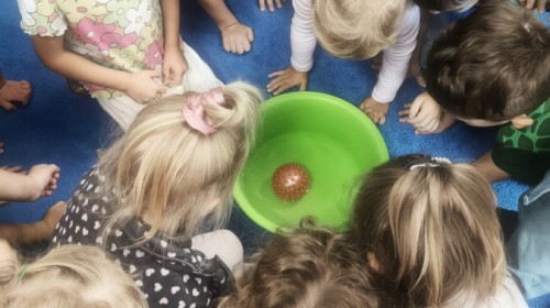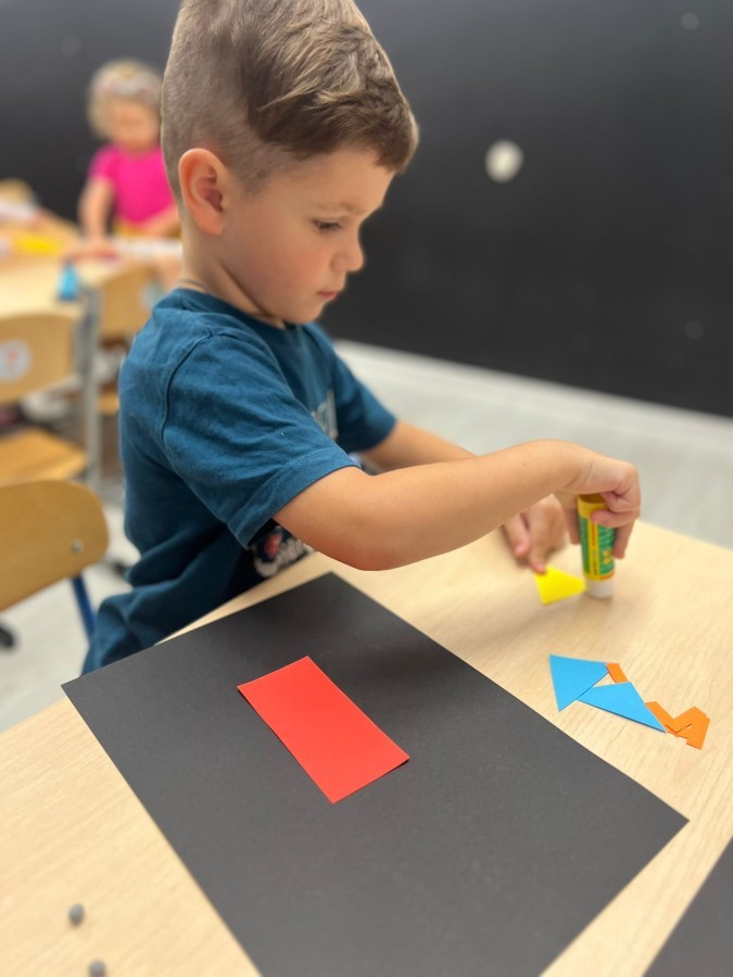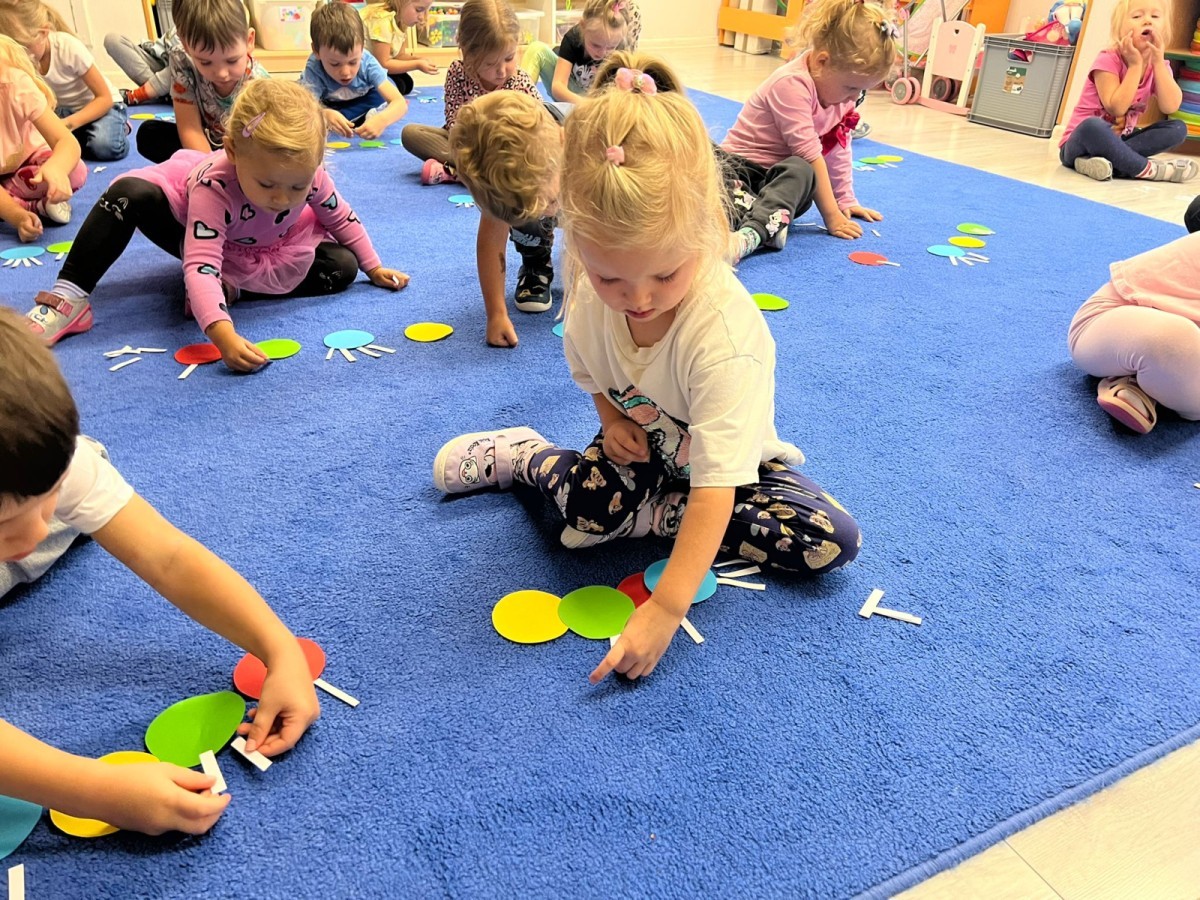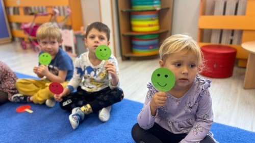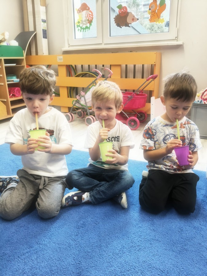 W tym tygodniu dzieci wykonywały różne eksperymenty z wodą, obserwując zachowania poszczególnych przedmiotów w wodzie, robiły wodną orkiestrę z wykorzystaniem kubeczka z wodą i słomki oraz poznawały jej właściwości. Dzieci miały też okazję malować na wodnym arkuszu i obserwować zachowanie rozchodzących się barw oraz ich mieszanie i powstawanie kolorów pochodnych. Utrwaliły również kształty i kolory podczas zajęć z przeliczania na konkretach (torty i świeczki)do 4 oraz przy tworzeniu pracy plastycznej z figur geometrycznych. Pod koniec tygodnia miały miejsce również rozmowy na temat dobrych i złych zachowań, akceptowalnych i nieakceptowalnych w danej sytuacji oraz na temat emocji im towarzyszących. Rozważaliśmy z dziećmi, w jakich sytuacjach czujemy strach, złość, smutek, radość i dumę. Szukaliśmy sposobów, jak sobie radzić ze smutkiem, ale też zauważyliśmy, że czasem każdy z nas czuje potrzebę posmucić się i to jest ok.