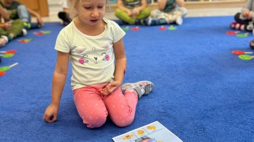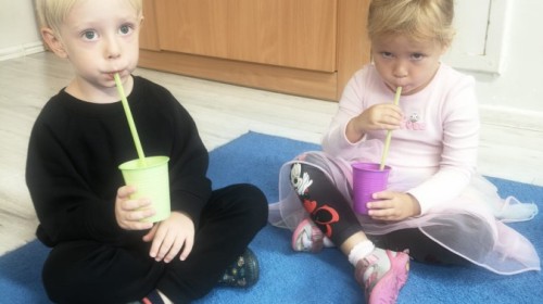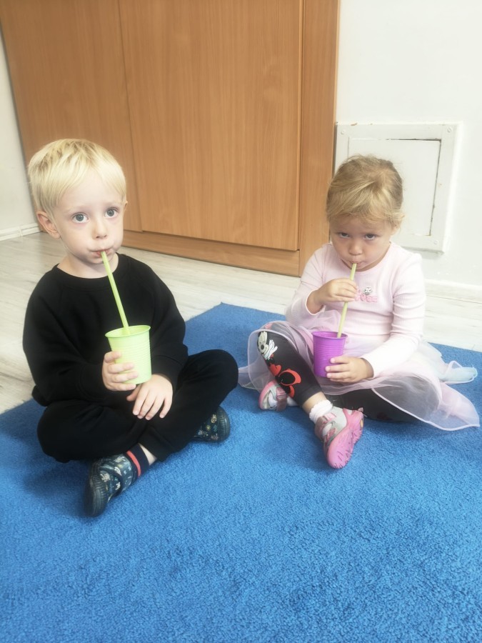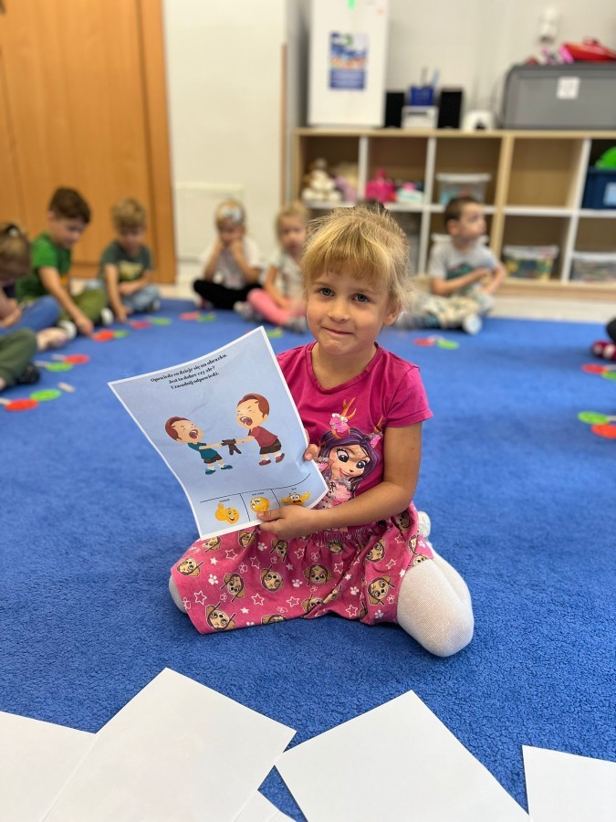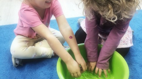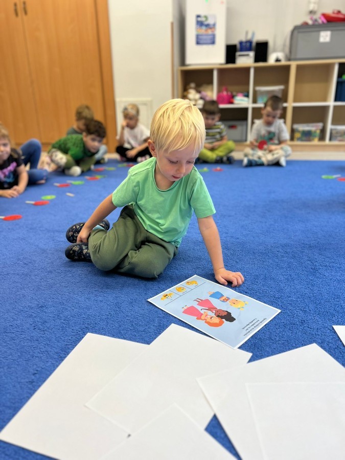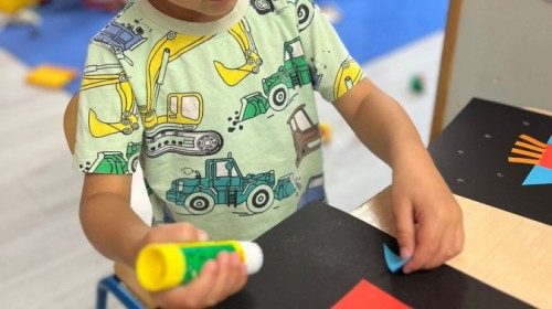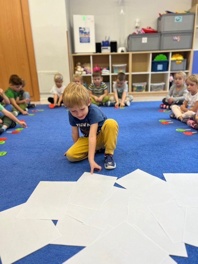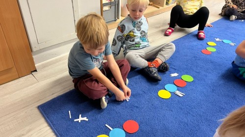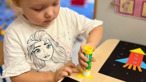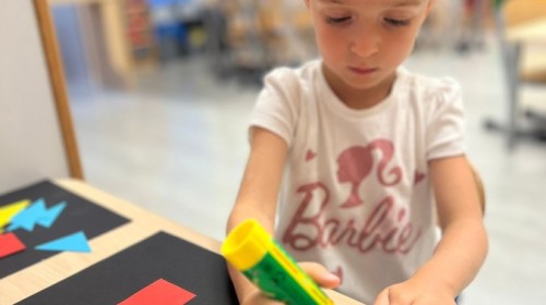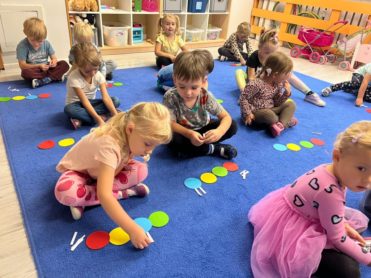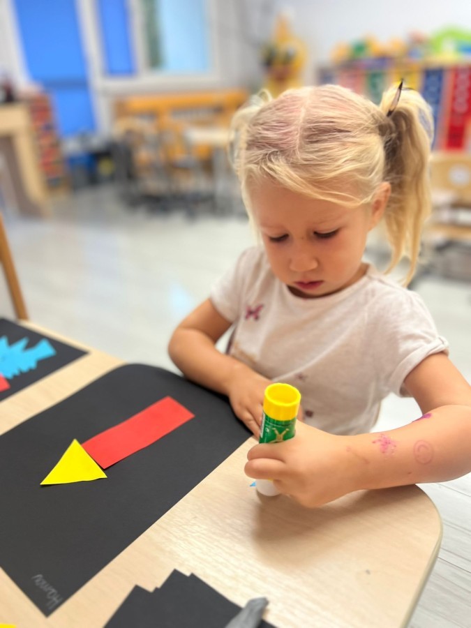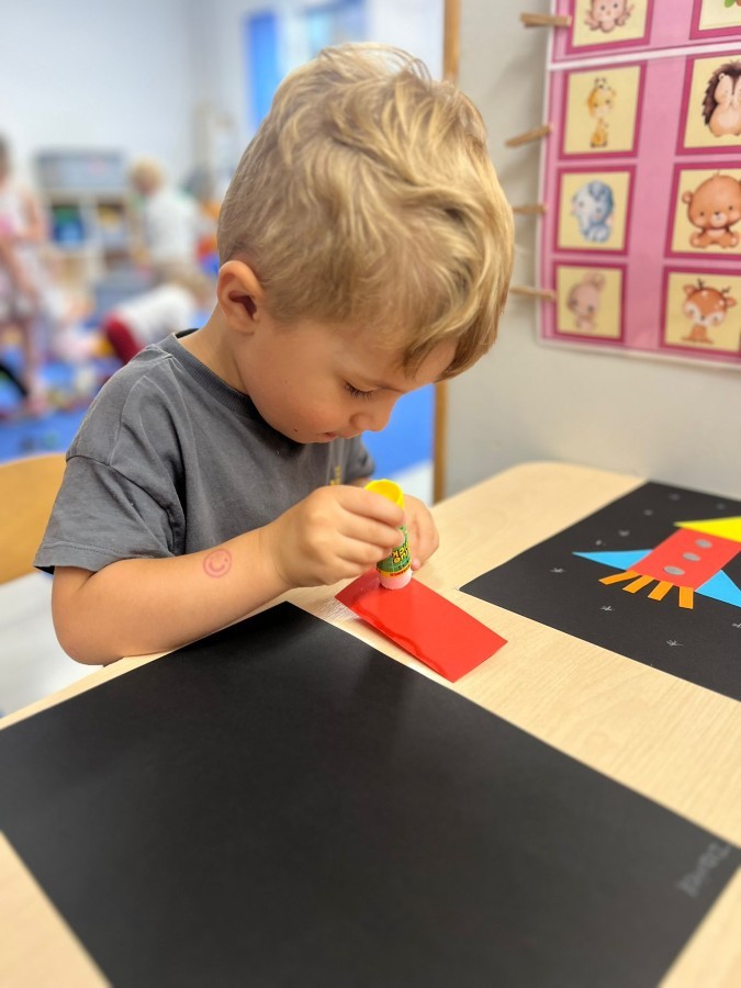 W tym tygodniu dzieci wykonywały różne eksperymenty z wodą, obserwując zachowania poszczególnych przedmiotów w wodzie, robiły wodną orkiestrę z wykorzystaniem kubeczka z wodą i słomki oraz poznawały jej właściwości. Dzieci miały też okazję malować na wodnym arkuszu i obserwować zachowanie rozchodzących się barw oraz ich mieszanie i powstawanie kolorów pochodnych. Utrwaliły również kształty i kolory podczas zajęć z przeliczania na konkretach (torty i świeczki)do 4 oraz przy tworzeniu pracy plastycznej z figur geometrycznych. Pod koniec tygodnia miały miejsce również rozmowy na temat dobrych i złych zachowań, akceptowalnych i nieakceptowalnych w danej sytuacji oraz na temat emocji im towarzyszących. Rozważaliśmy z dziećmi, w jakich sytuacjach czujemy strach, złość, smutek, radość i dumę. Szukaliśmy sposobów, jak sobie radzić ze smutkiem, ale też zauważyliśmy, że czasem każdy z nas czuje potrzebę posmucić się i to jest ok.