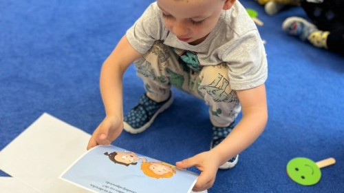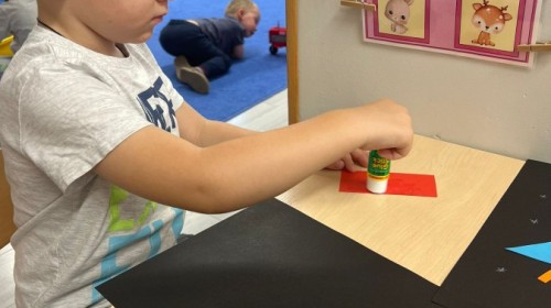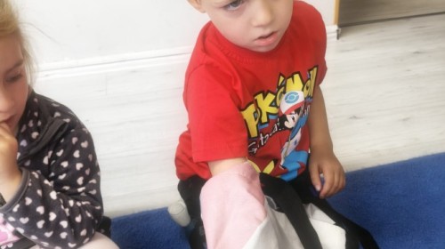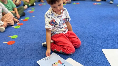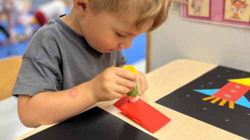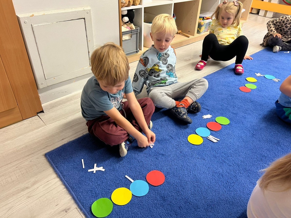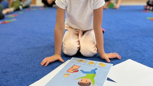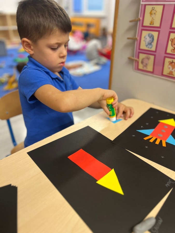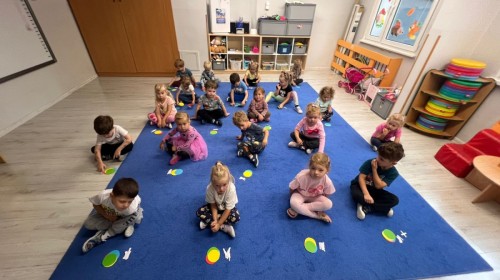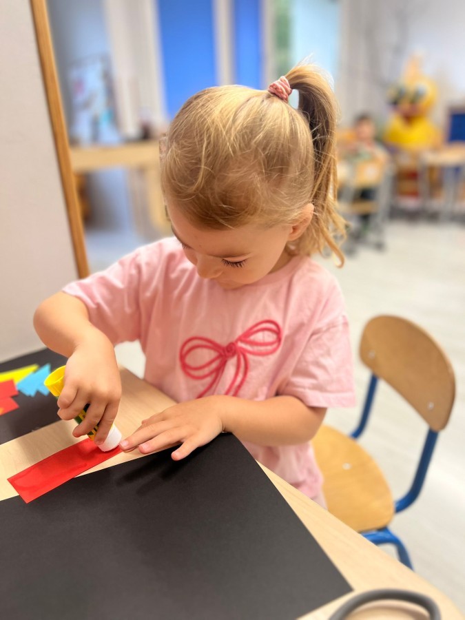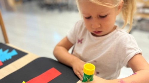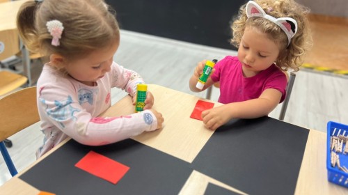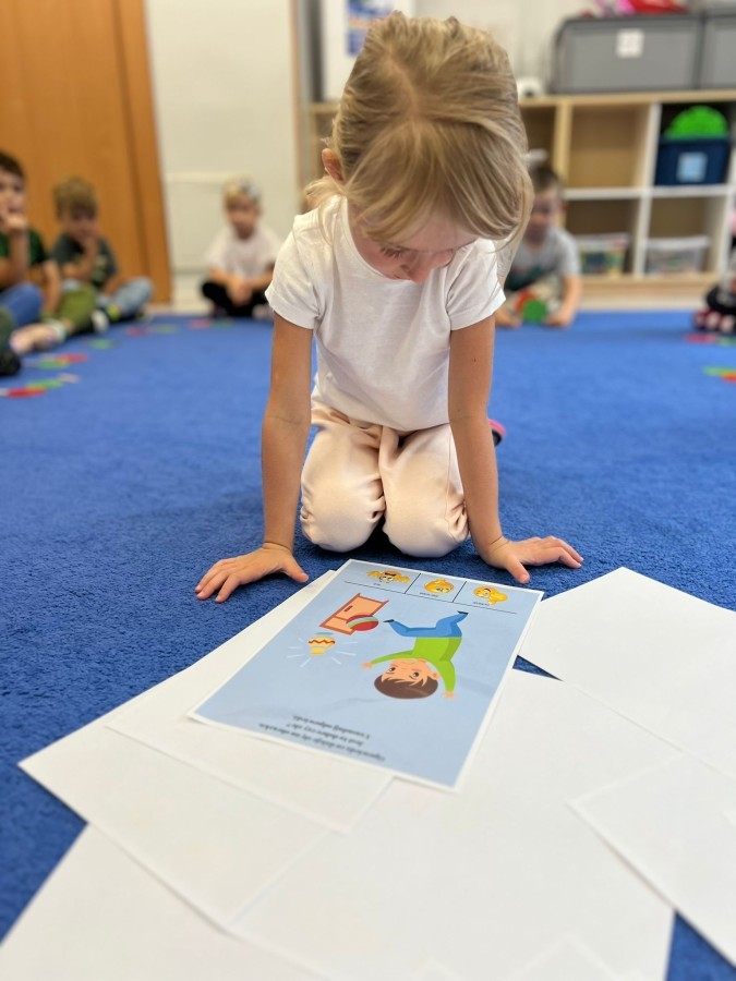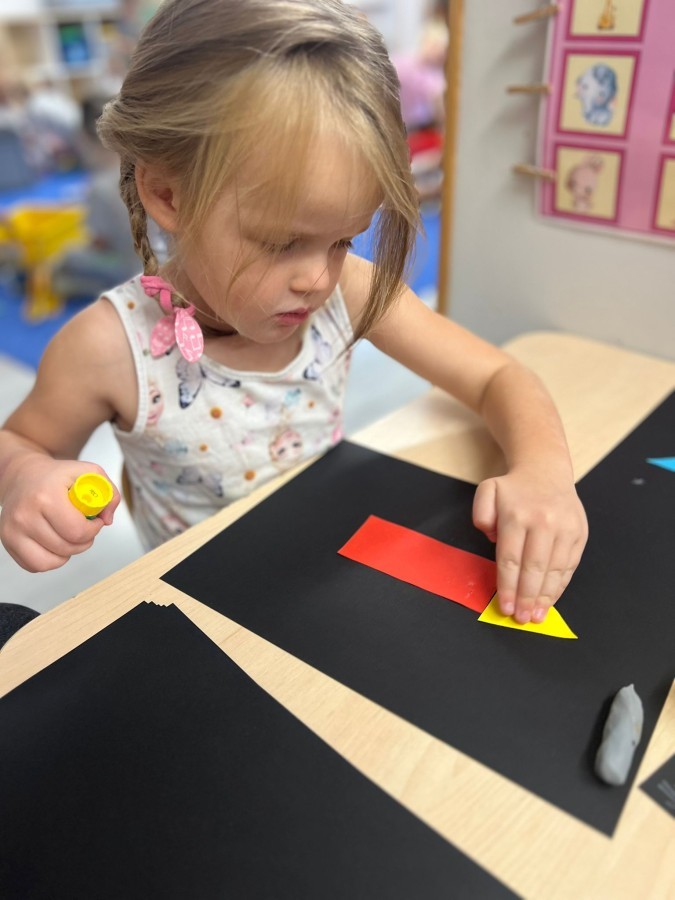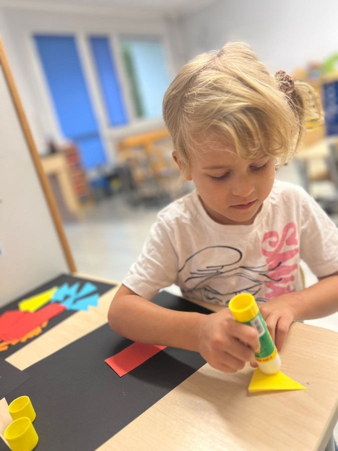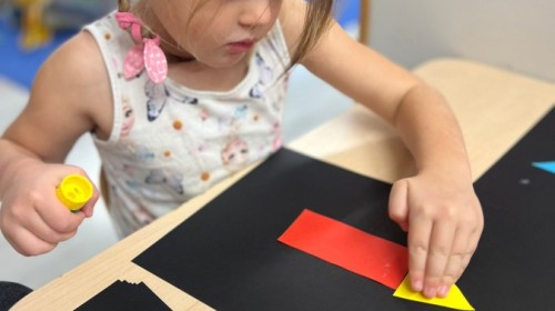 W tym tygodniu dzieci wykonywały różne eksperymenty z wodą, obserwując zachowania poszczególnych przedmiotów w wodzie, robiły wodną orkiestrę z wykorzystaniem kubeczka z wodą i słomki oraz poznawały jej właściwości. Dzieci miały też okazję malować na wodnym arkuszu i obserwować zachowanie rozchodzących się barw oraz ich mieszanie i powstawanie kolorów pochodnych. Utrwaliły również kształty i kolory podczas zajęć z przeliczania na konkretach (torty i świeczki)do 4 oraz przy tworzeniu pracy plastycznej z figur geometrycznych. Pod koniec tygodnia miały miejsce również rozmowy na temat dobrych i złych zachowań, akceptowalnych i nieakceptowalnych w danej sytuacji oraz na temat emocji im towarzyszących. Rozważaliśmy z dziećmi, w jakich sytuacjach czujemy strach, złość, smutek, radość i dumę. Szukaliśmy sposobów, jak sobie radzić ze smutkiem, ale też zauważyliśmy, że czasem każdy z nas czuje potrzebę posmucić się i to jest ok.