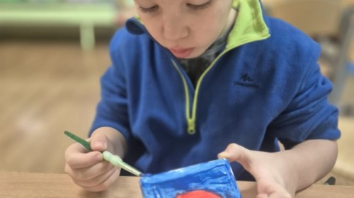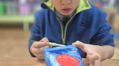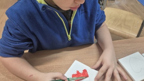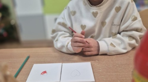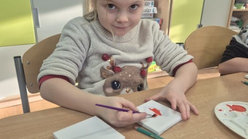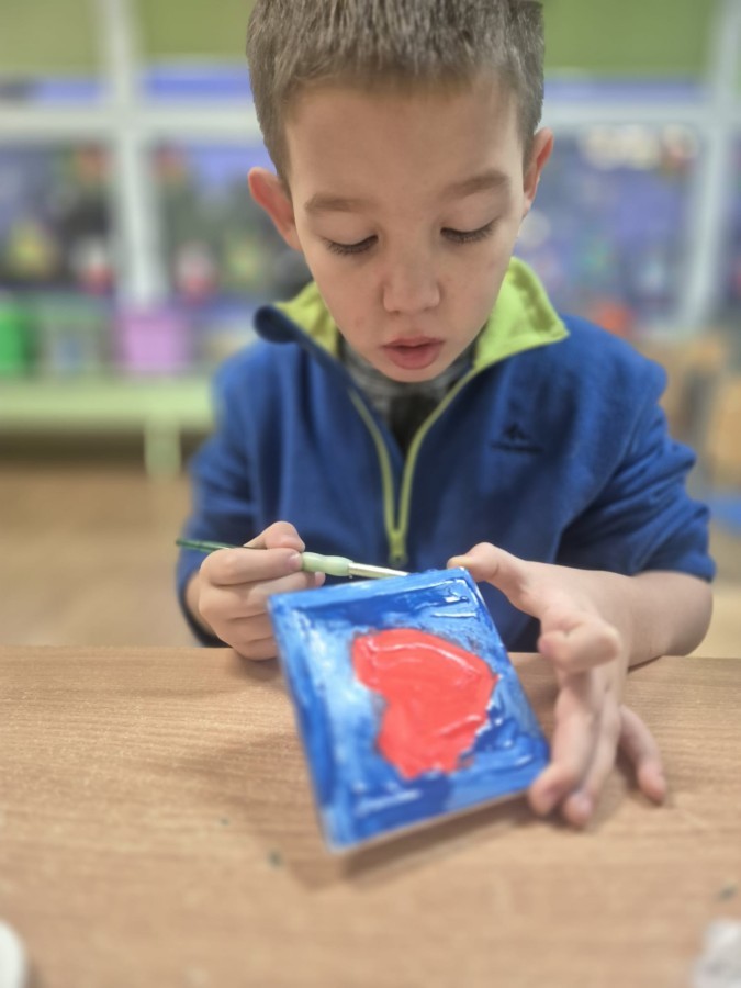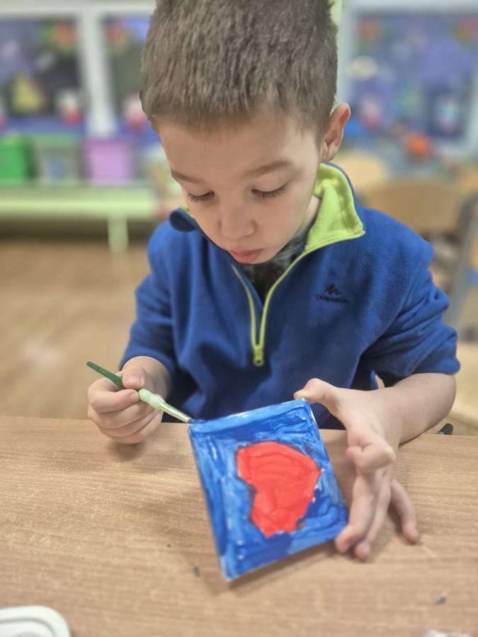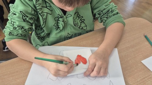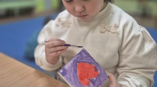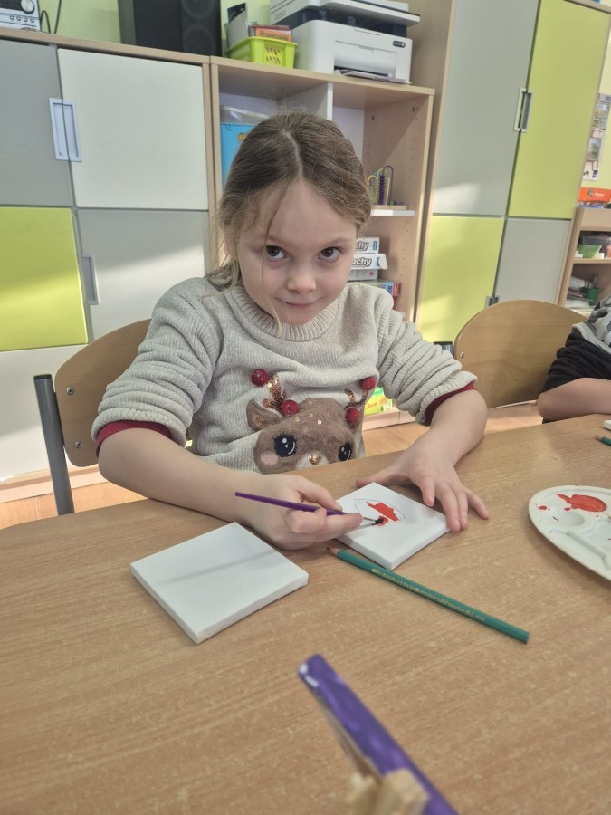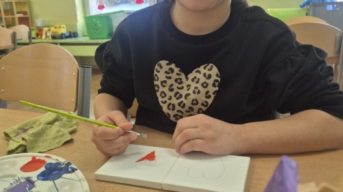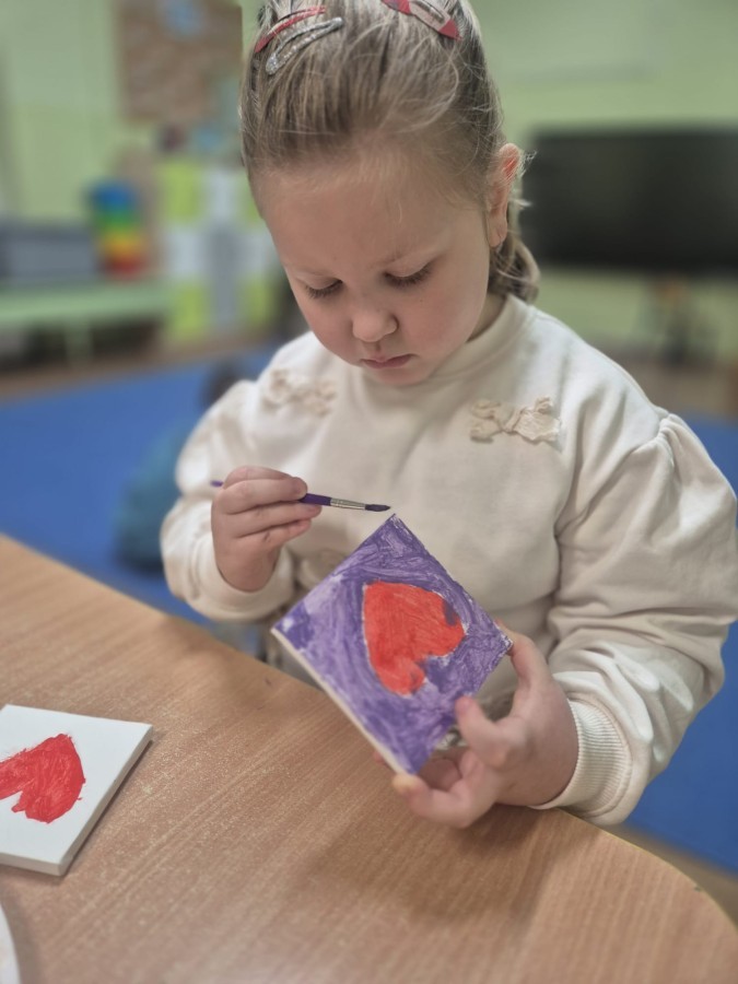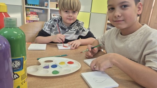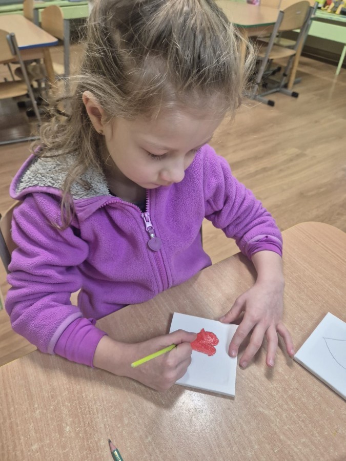 Z okazji zbliżającego się Dnia Babci i Dziadka dzieci z grupy Wilki z wielkim zaangażowaniem tworzyły wyjątkowe prezenty dla swoich bliskich. Najpierw dzieci szkicowały serca na małych podobraziach, ćwicząc precyzję i sprawność manualną. Następnie dobierały kolory farb, kierując się własną wyobraźnią i pomysłami, po czym malowały pędzlem swoje prace, wkładając w nie wiele serca i ciepłych uczuć. Każdy obrazek był niepowtarzalny i pełen emocji, a tworzeniu towarzyszyła radość oraz rozmowy o babciach