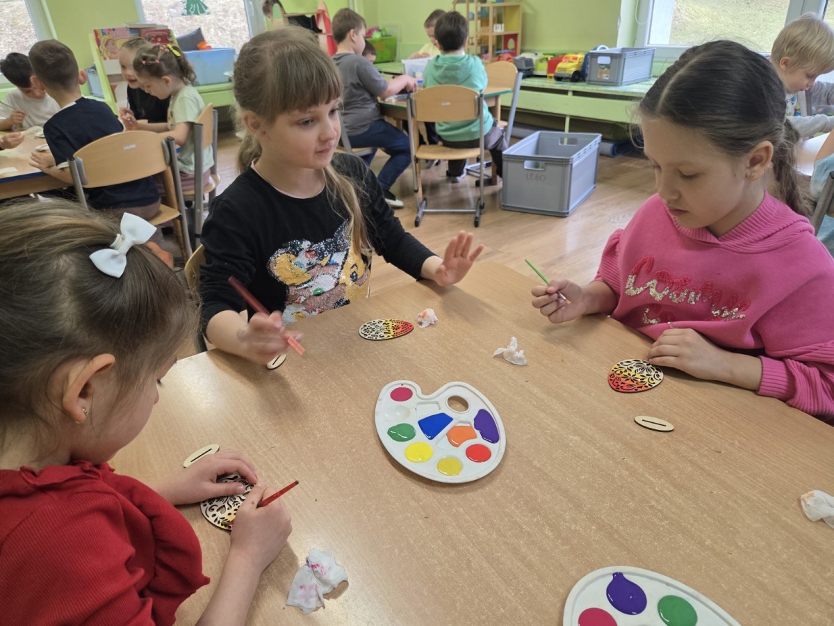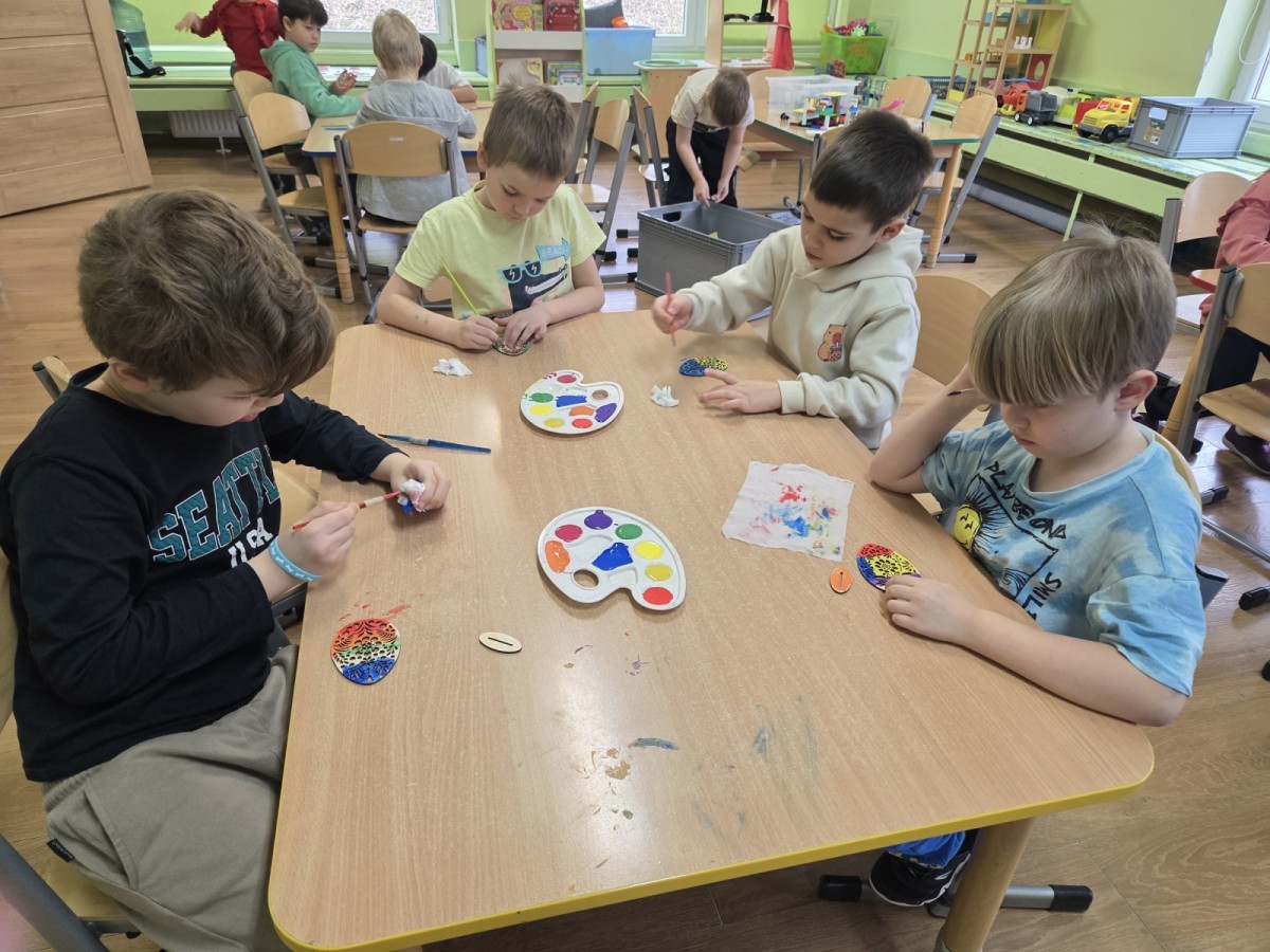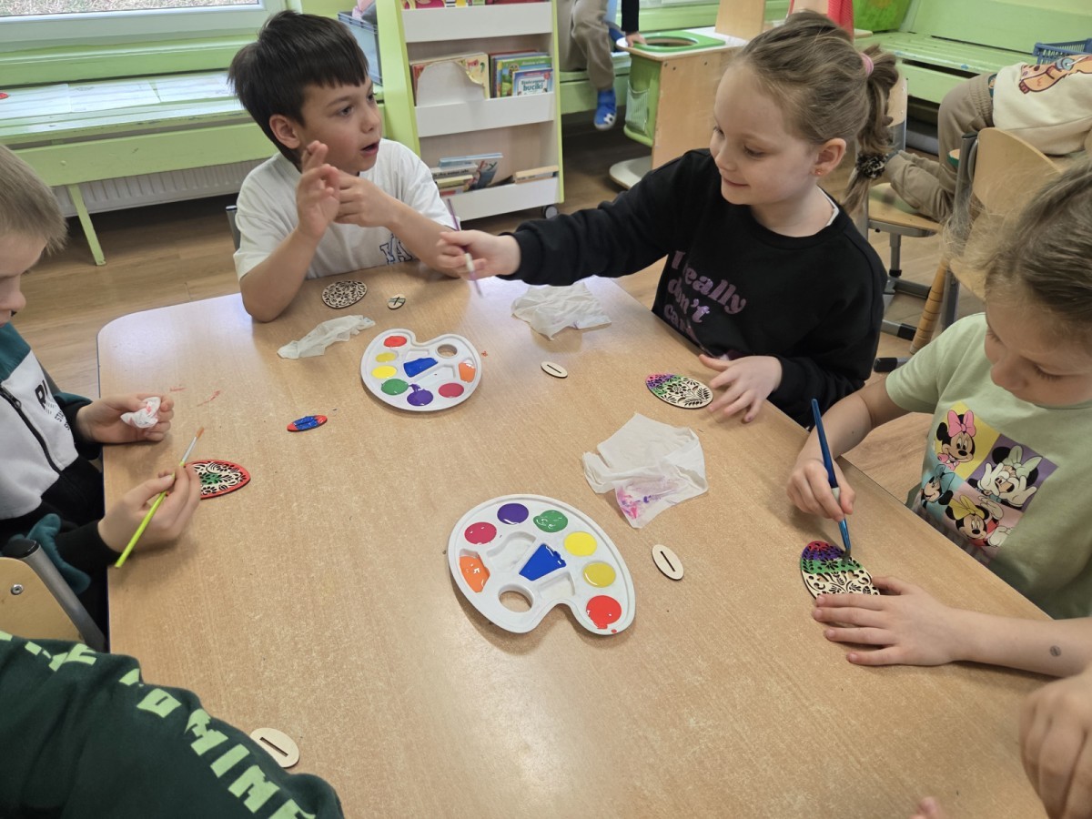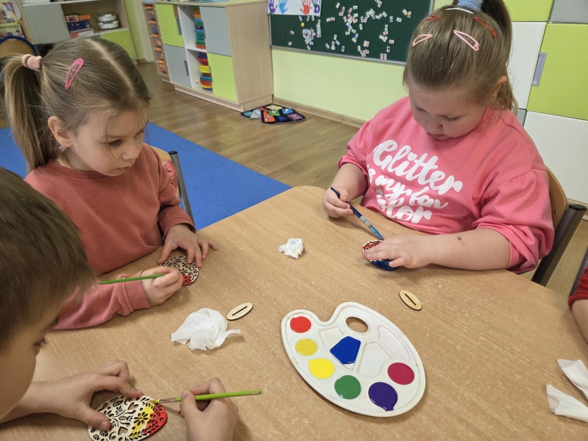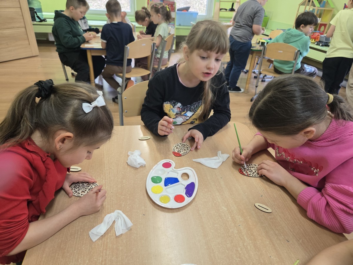 W tym tygodniu dzieci z ogromnym zaangażowaniem i radością przystąpiły do malowania drewnianych jajek wielkanocnych.